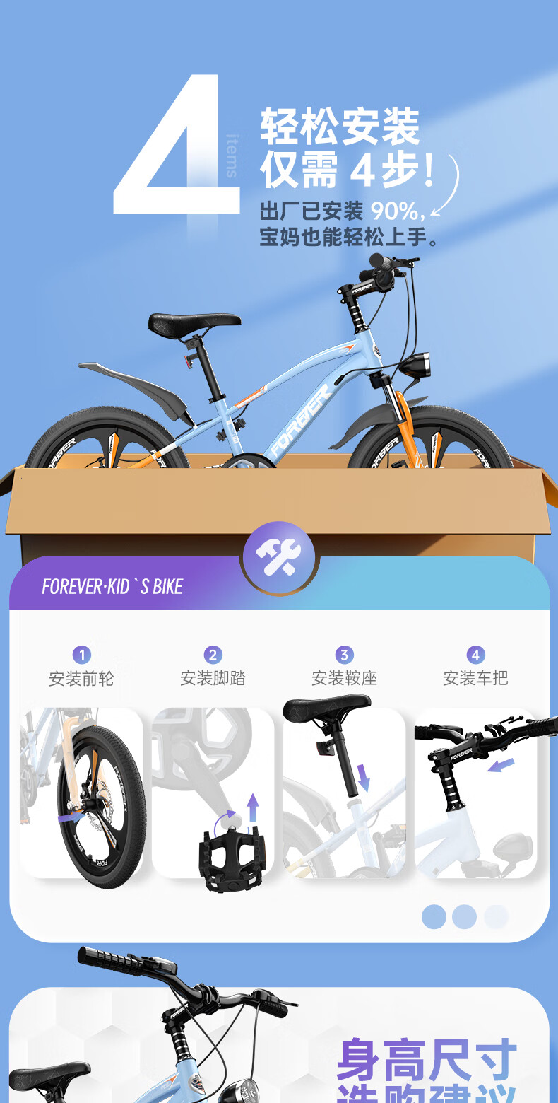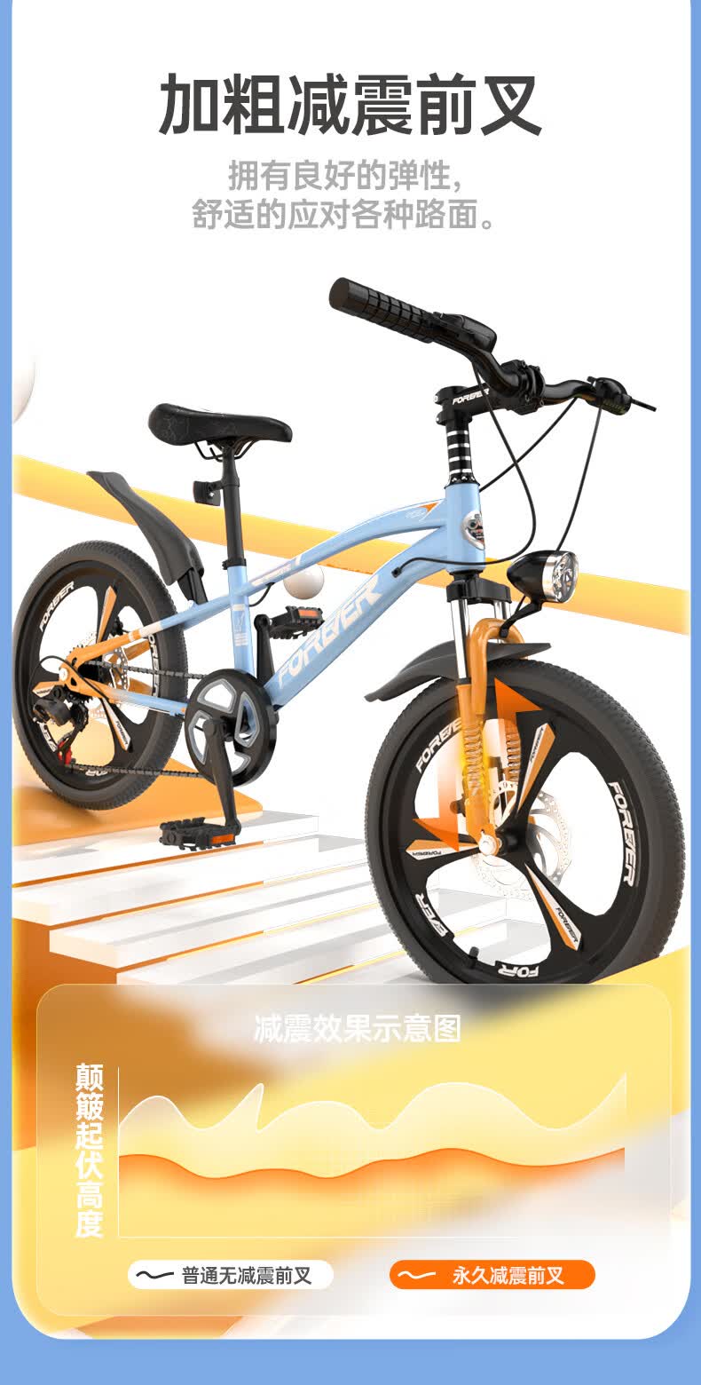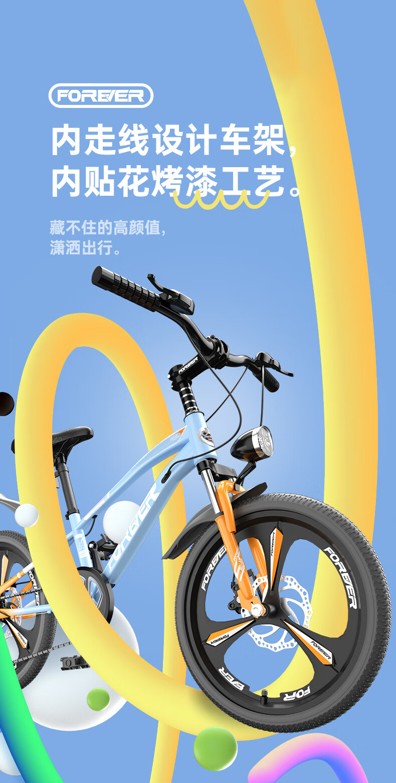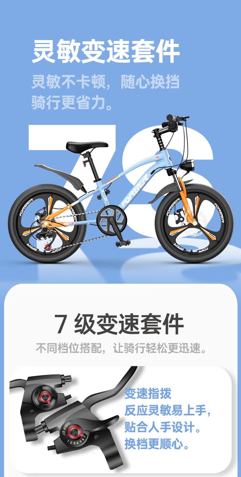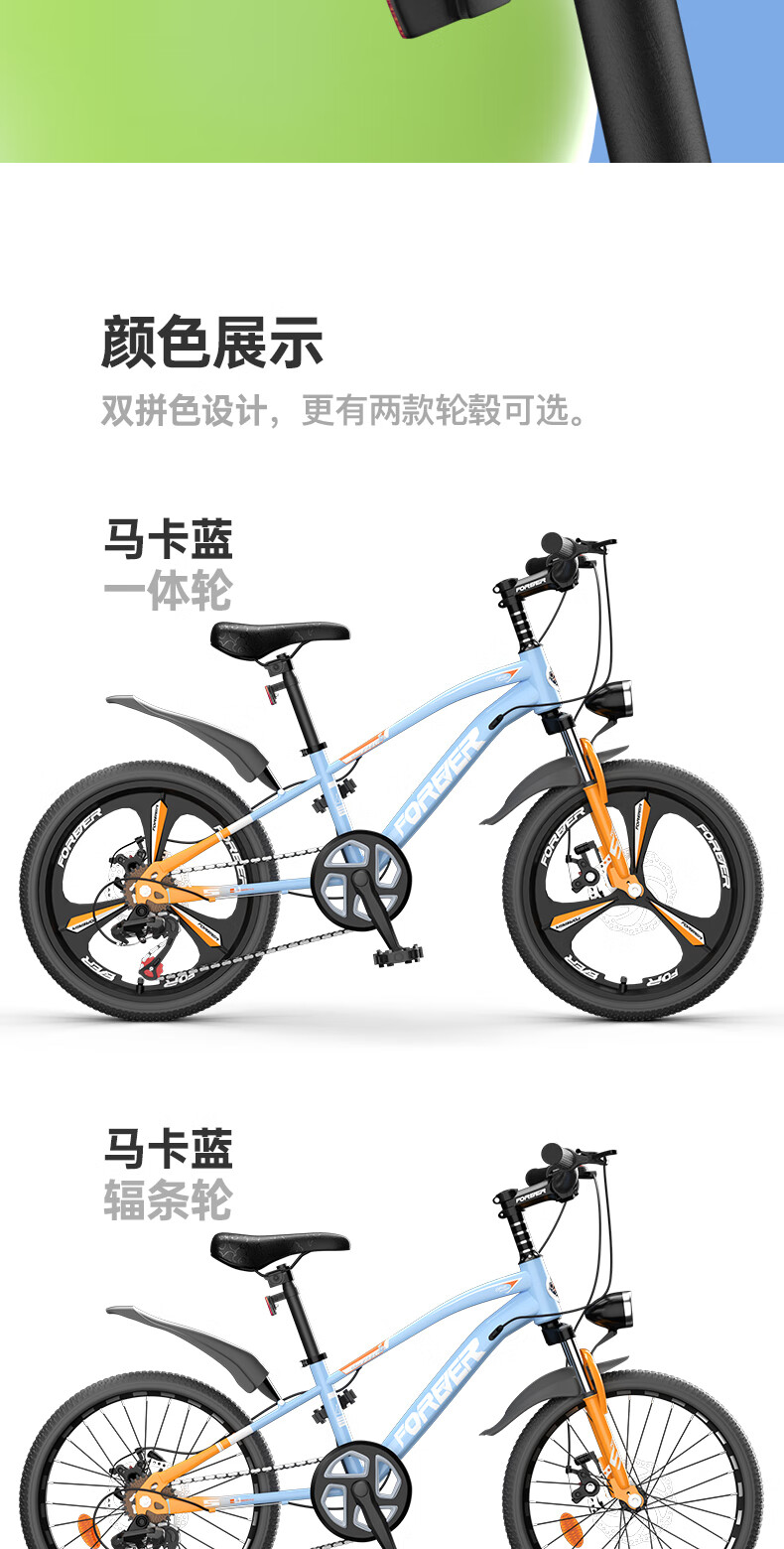 永久(FOREVER)儿童自行车6-10-15岁青少年山地单车马卡篮20寸适合身高130-150cm