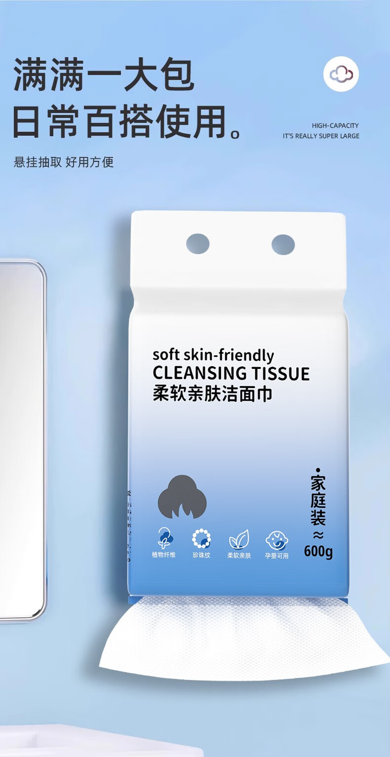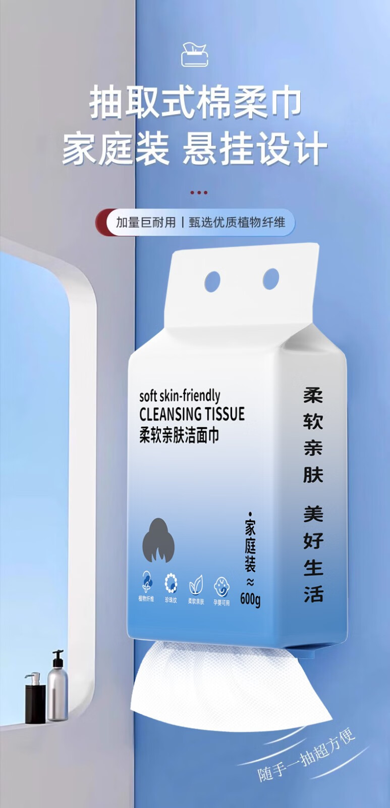 皓佳【600g美容院版】一次性洗脸巾底部抽式加大加厚棉柔巾擦脸洁面巾 蓝色悬挂600克【加厚】 170抽*8提