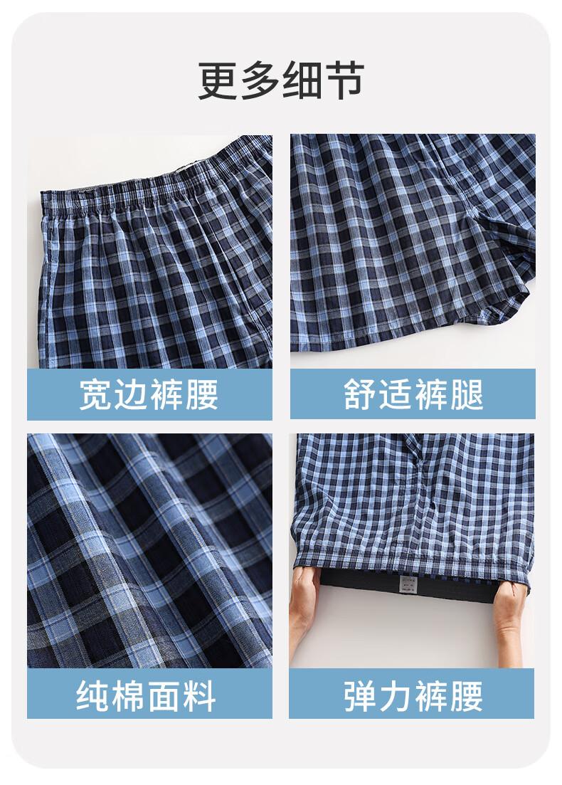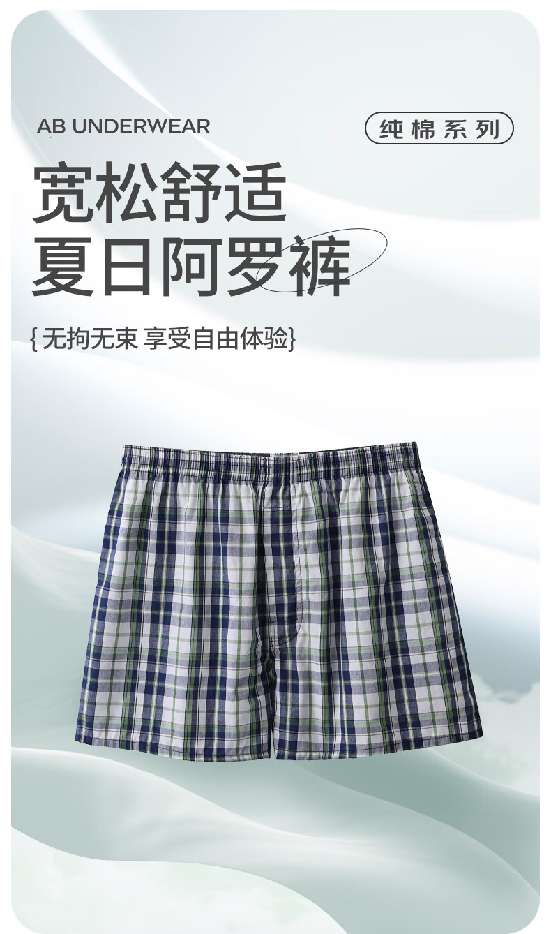 AB男士【3条】纯棉宽松透气简约格子短裤沙滩裤舒适男家居裤阿罗裤 混色【3条】 XL