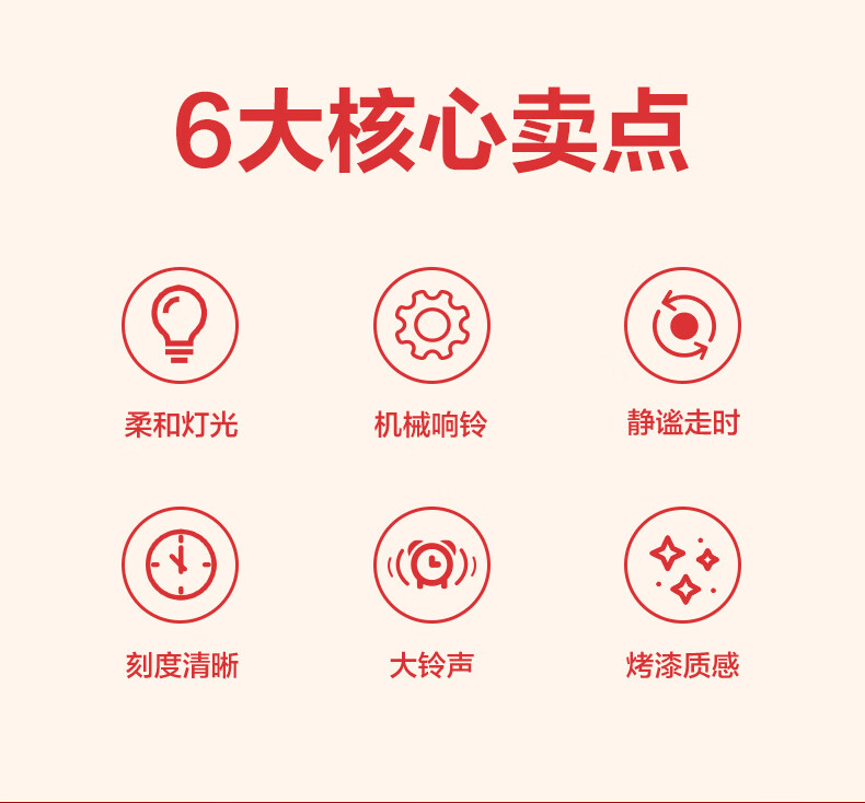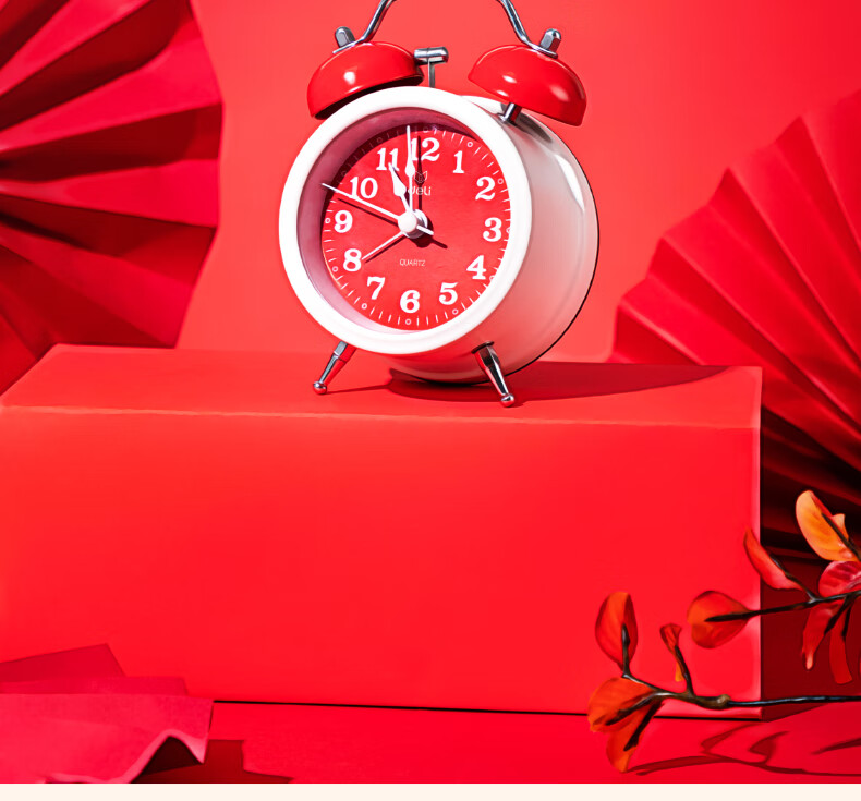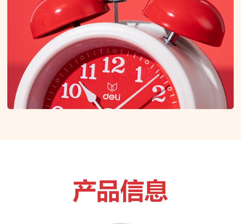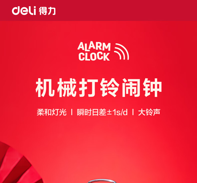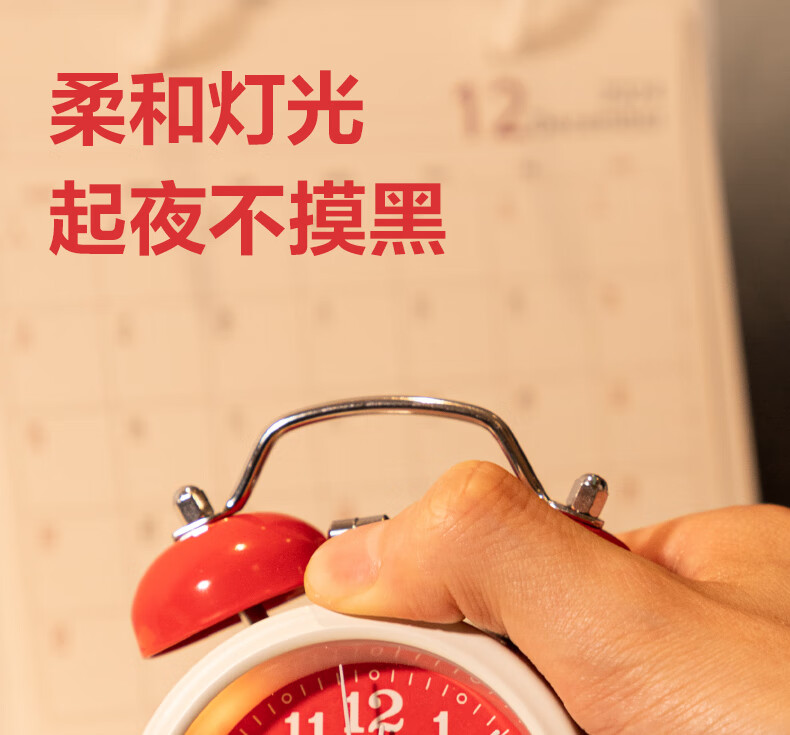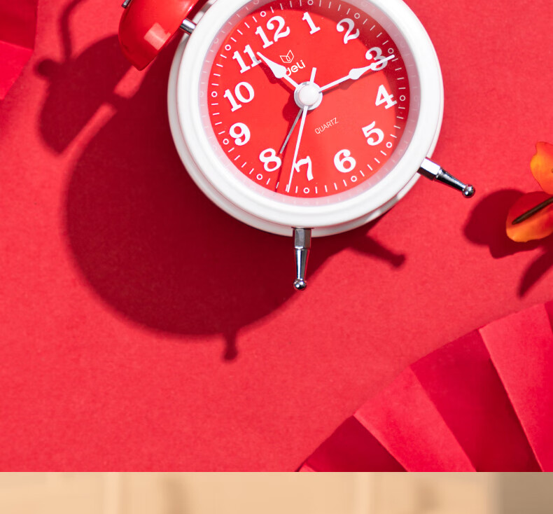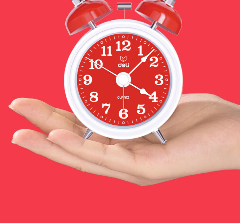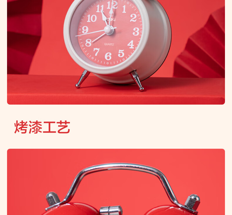 得力(deli)儿童节迷你夜光闹钟家庭卧室床头钟儿童学生专用起床神器 年庆款红色开学开学季新年礼物