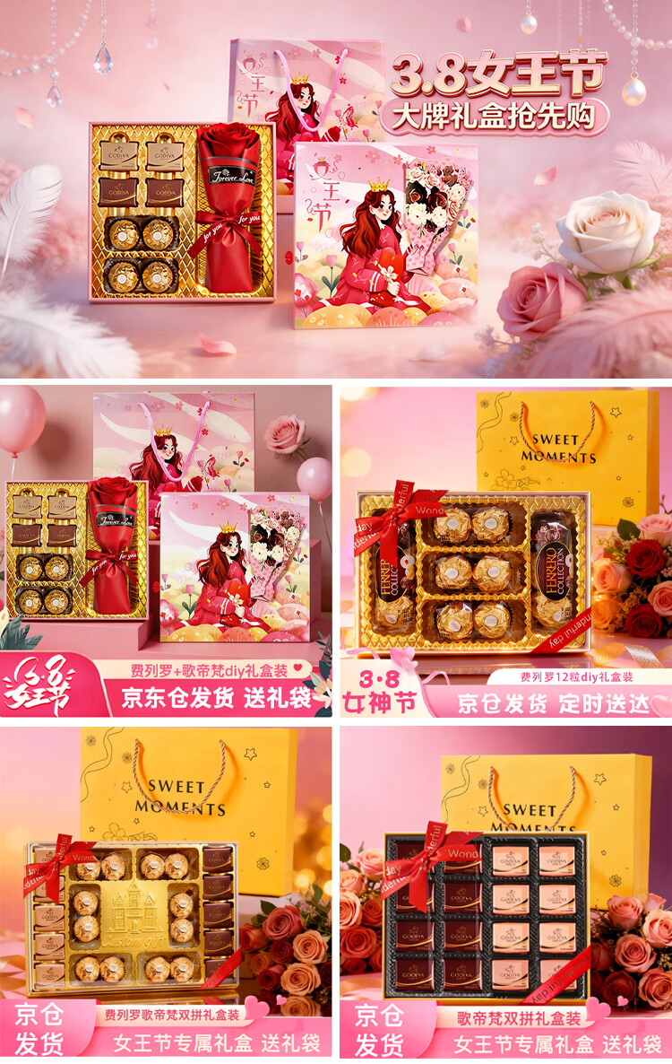 费列罗巧克力礼盒 三八女神女王节礼物礼盒 生日礼物送女朋友老婆生日 费列罗28粒礼盒装329.6g送礼袋