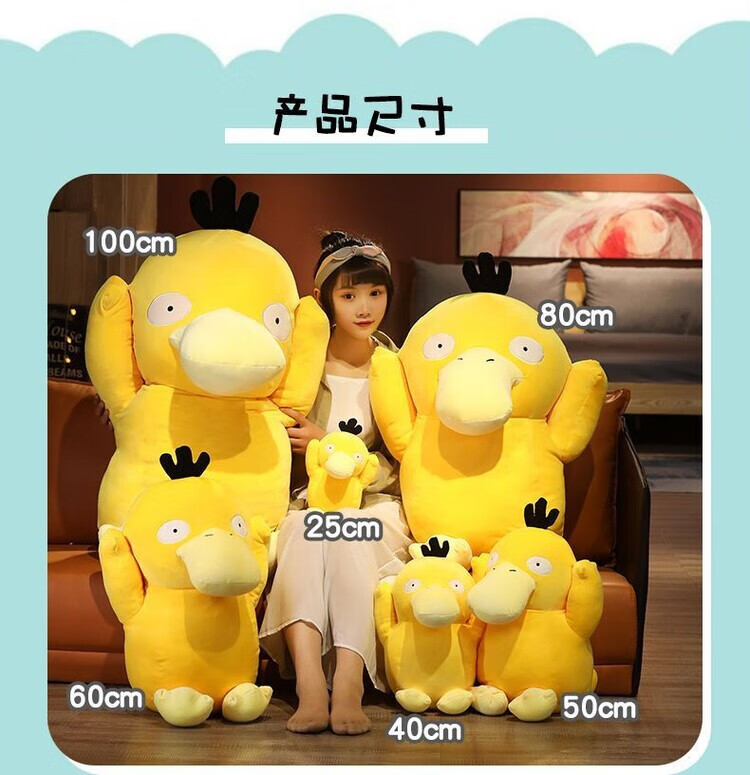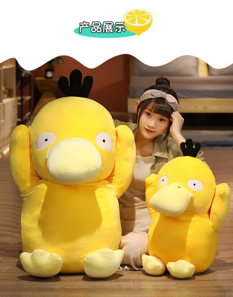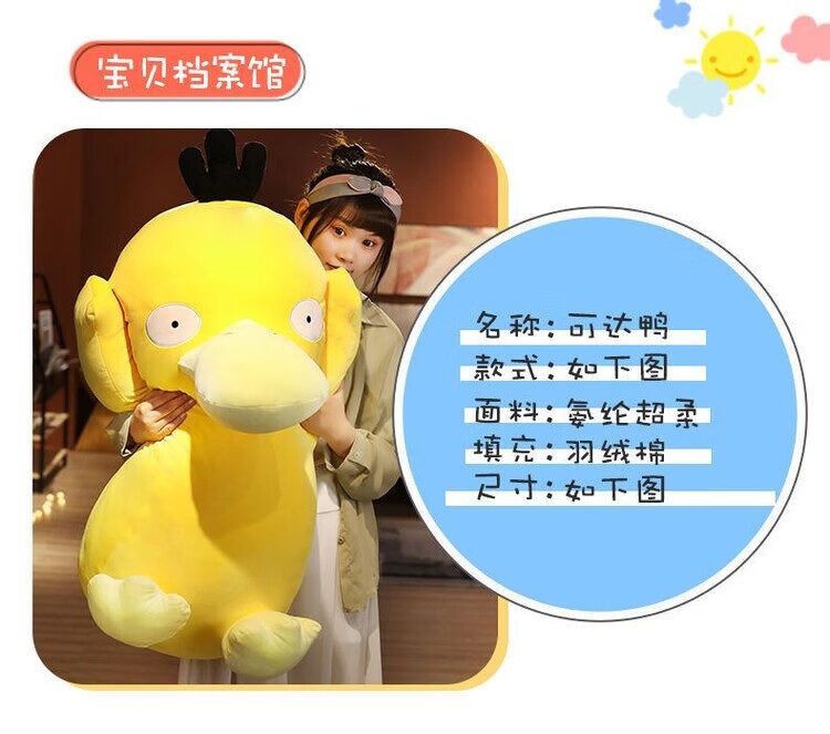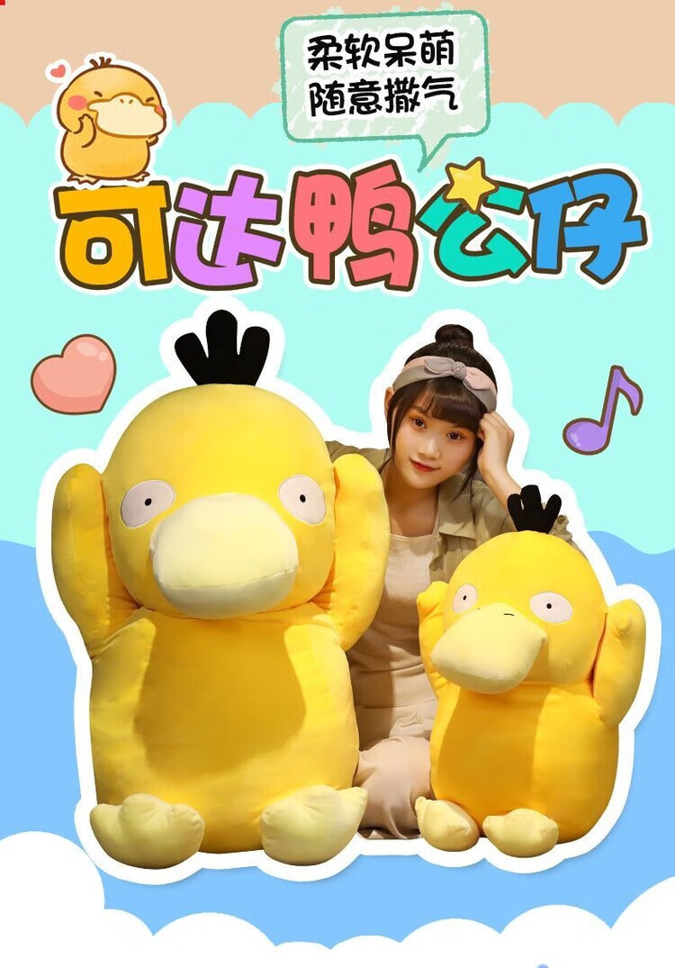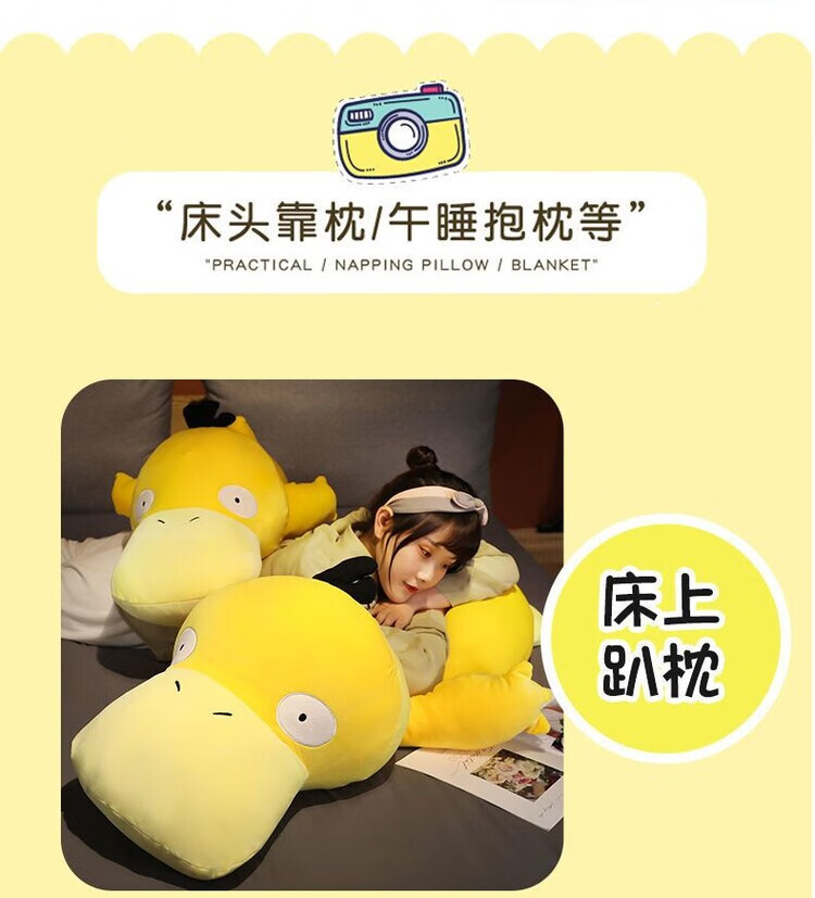 乐英奇可达鸭玩偶超大睡觉抱枕超软可爱宝可梦毛绒玩具神奇宝贝网红公仔 站姿可达鸭抱枕【羽绒棉填充】 #120厘米*