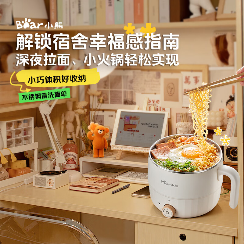 小熊(Bear)不锈钢电煮锅 宿舍小锅 小电锅 学生寝室一体泡面火锅 多功能电热锅 0涂层小型1-2人用F12H2配蒸笼
