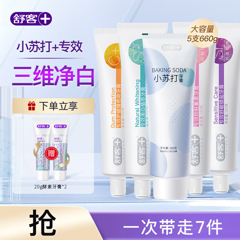 舒客防蛀固齿清新口气含氟防蛀套装美白多支装开学 家庭 囤货装 多功效爆款酵素牙膏组合