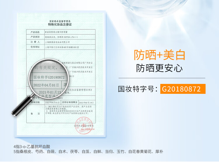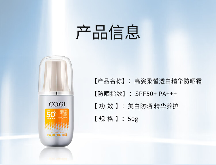 高姿柔皙透白精华防晒霜50g美白防晒防晒乳SPF50+PA+++军训户外便携