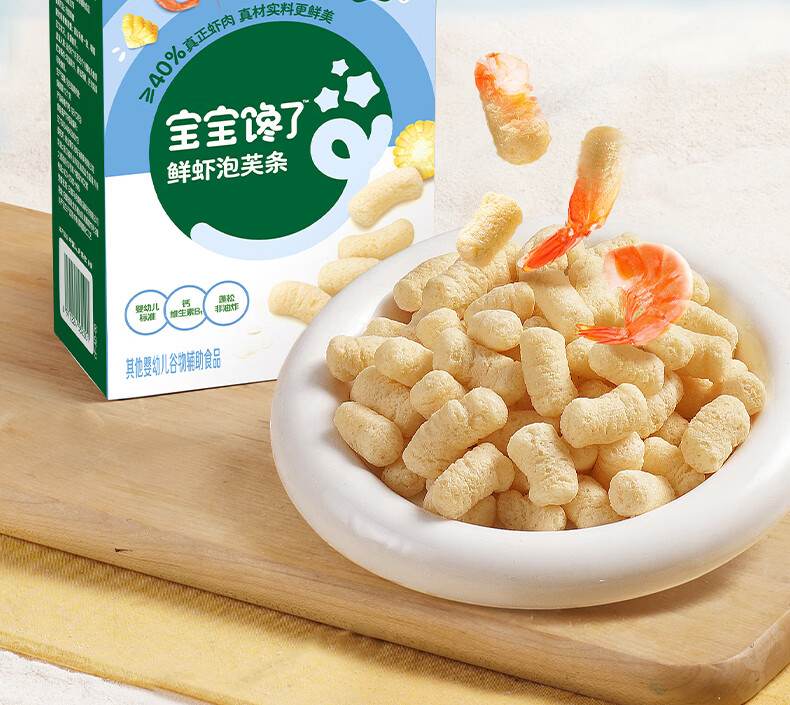 宝宝馋了婴幼儿手指泡芙鲜虾味 婴儿宝宝零食泡芙条儿童辅食无添加36g