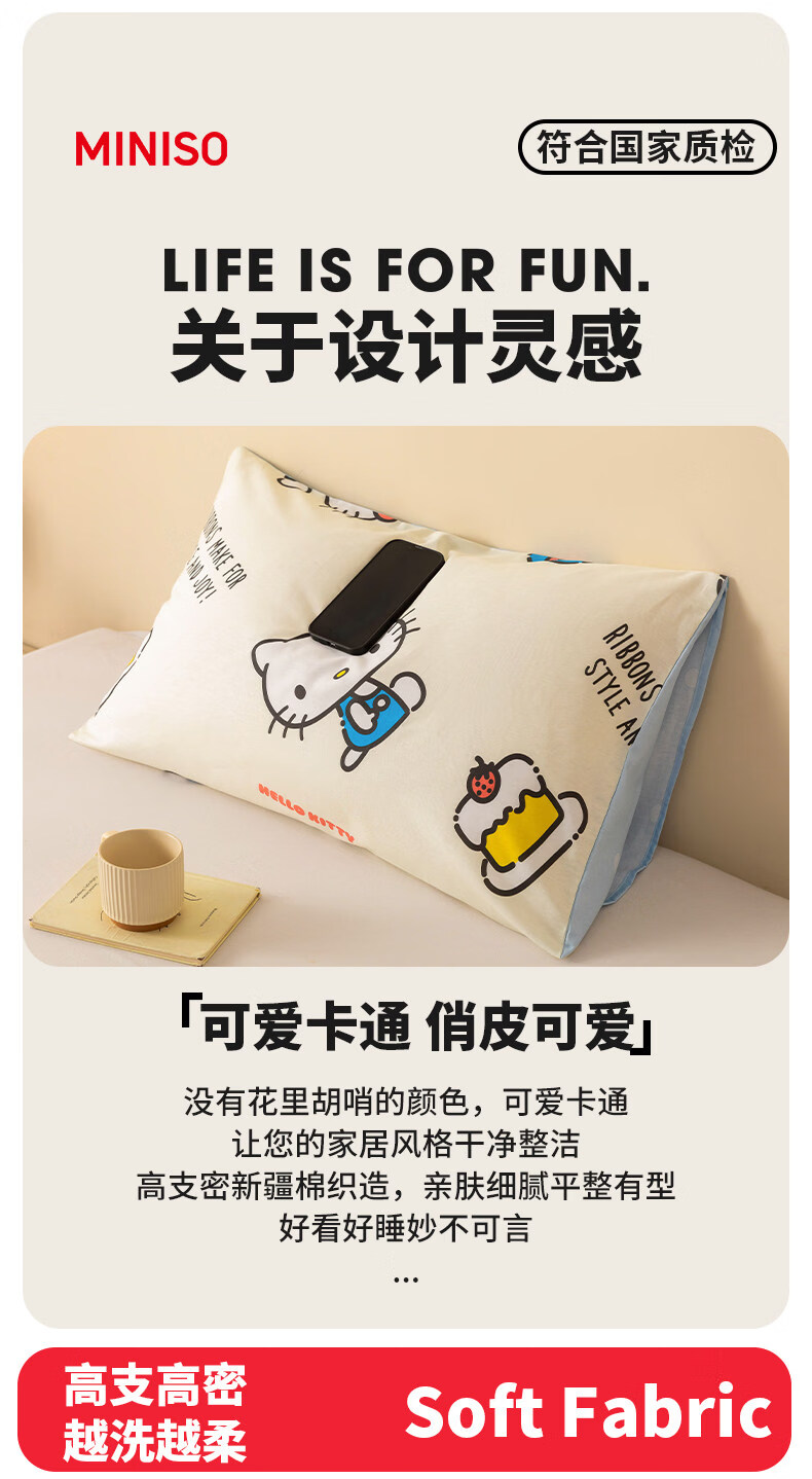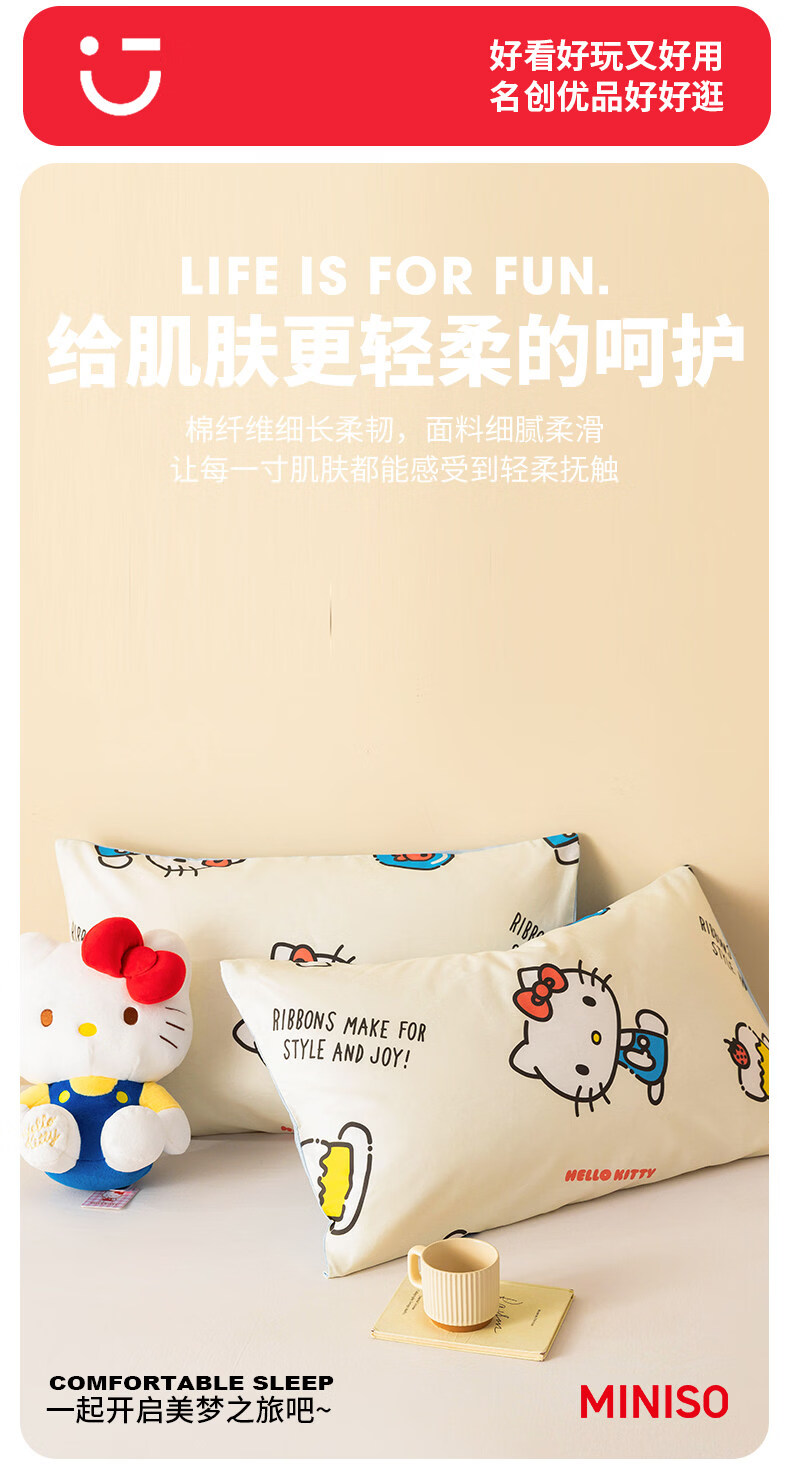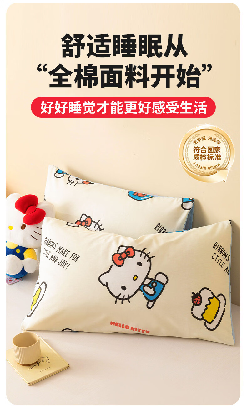 名创优品(MINISO)三丽鸥纯棉枕套一对装 单双人全棉卡通库洛米枕芯套内胆套 一对装-MINISO-嗨皮KT 48cmX74cm