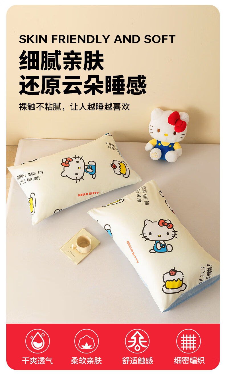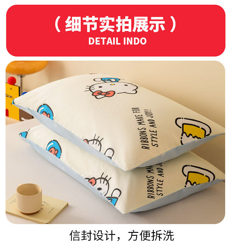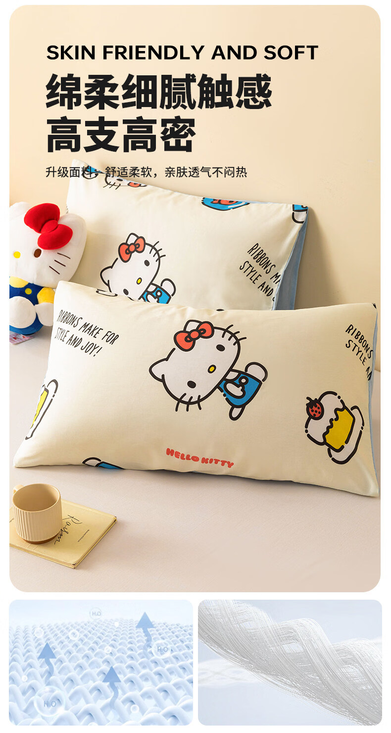 名创优品(MINISO)三丽鸥纯棉枕套一对装 单双人全棉卡通库洛米枕芯套内胆套 一对装-MINISO-嗨皮KT 48cmX74cm