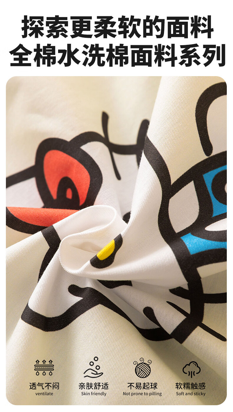 无印良品100%全棉床上四件套纯棉2026新款卡通狗狗被套床单床笠款床品套件 黑白西高地【100%全棉亲肤柔软】 床单款 1.8m四件套-被套200x230cm