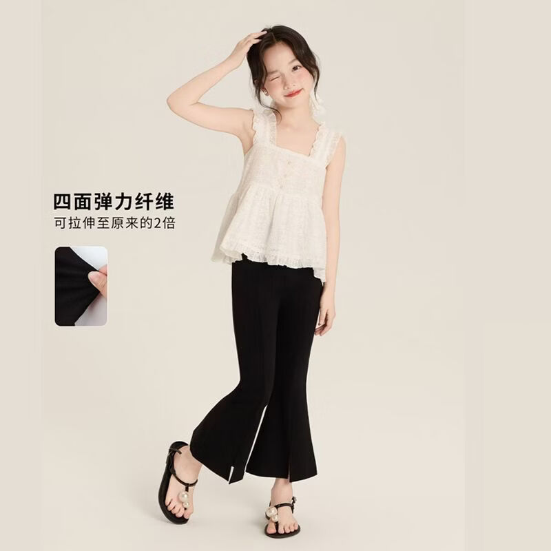 小马宝莉(MY LITTLE PONY)女童喇叭裤夏季2026新款九分裤透气中大儿童女孩洋气裤子 黑色 140