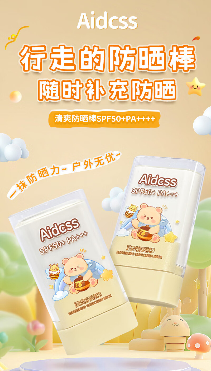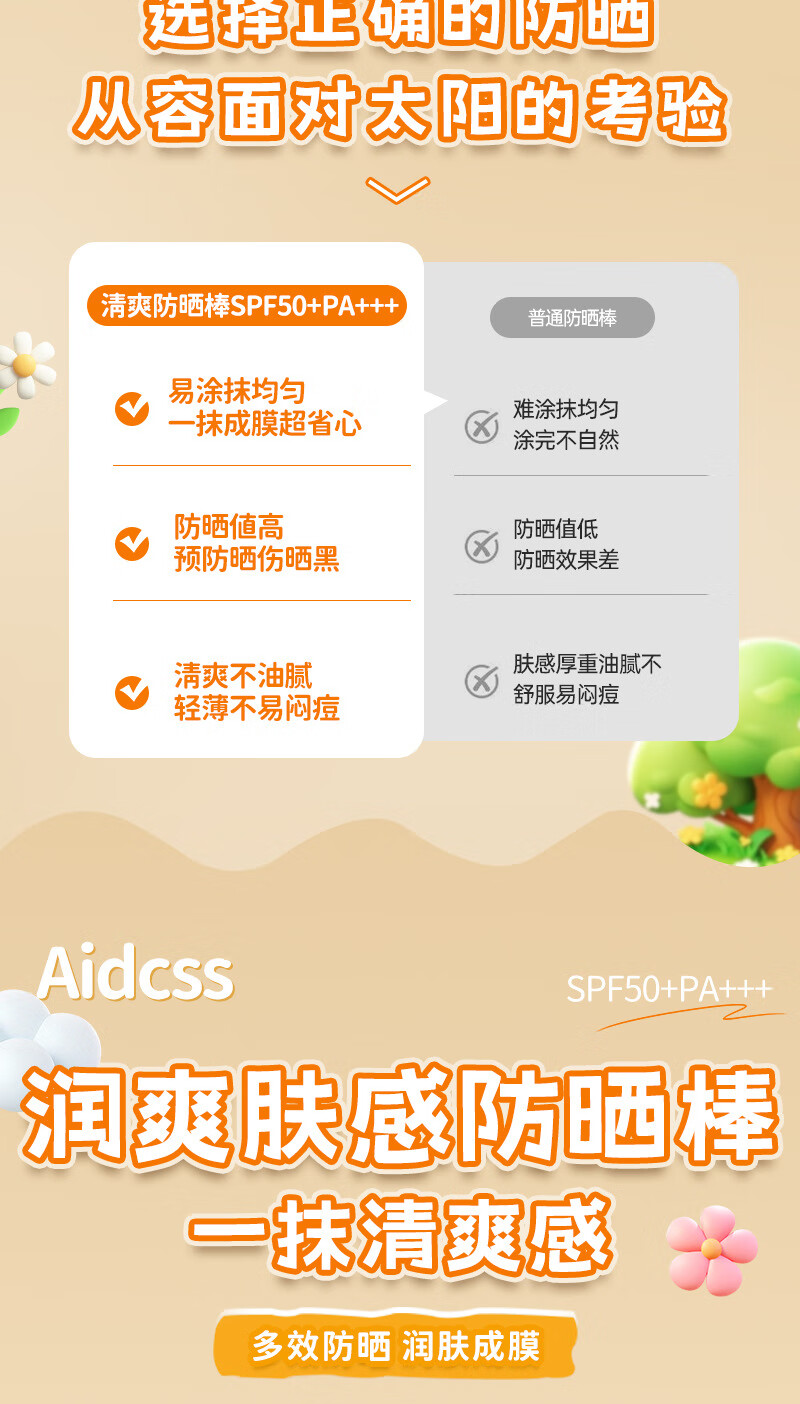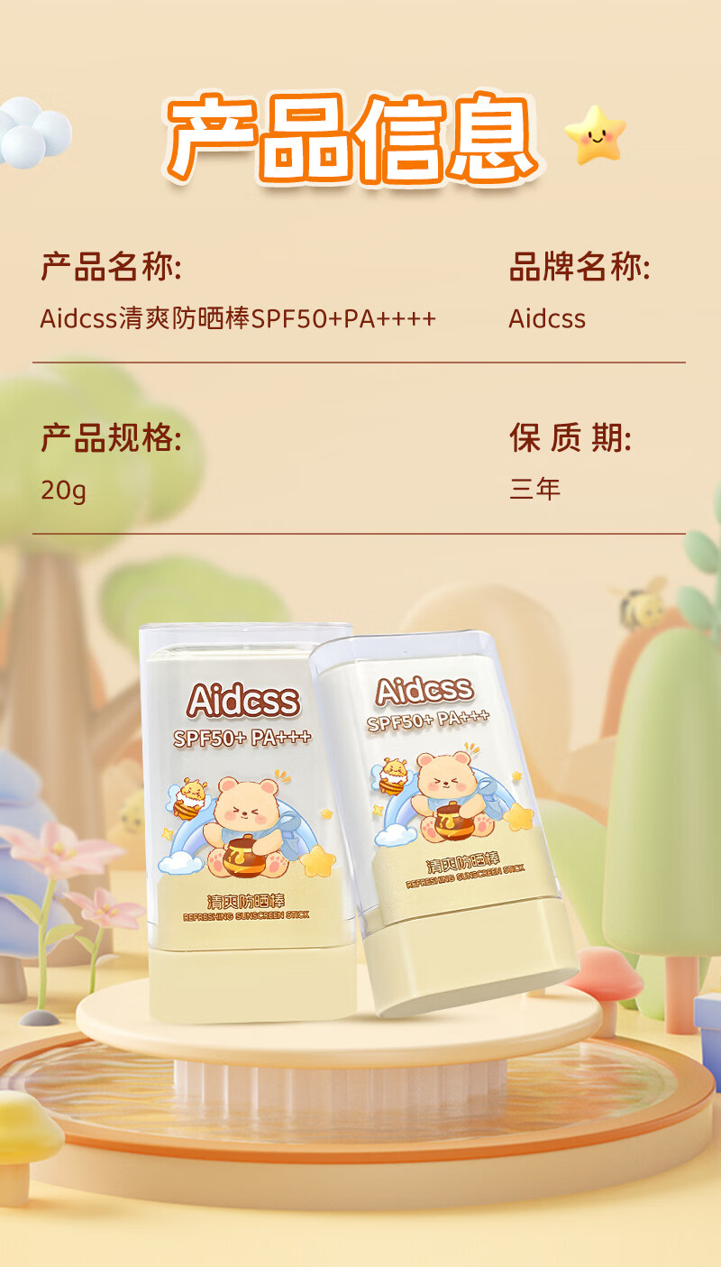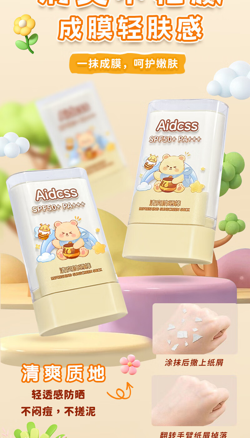 aidcssAidcss清爽防晒棒质地轻薄防水防汗清爽不粘腻温和防紫外线 清爽防晒棒 20g