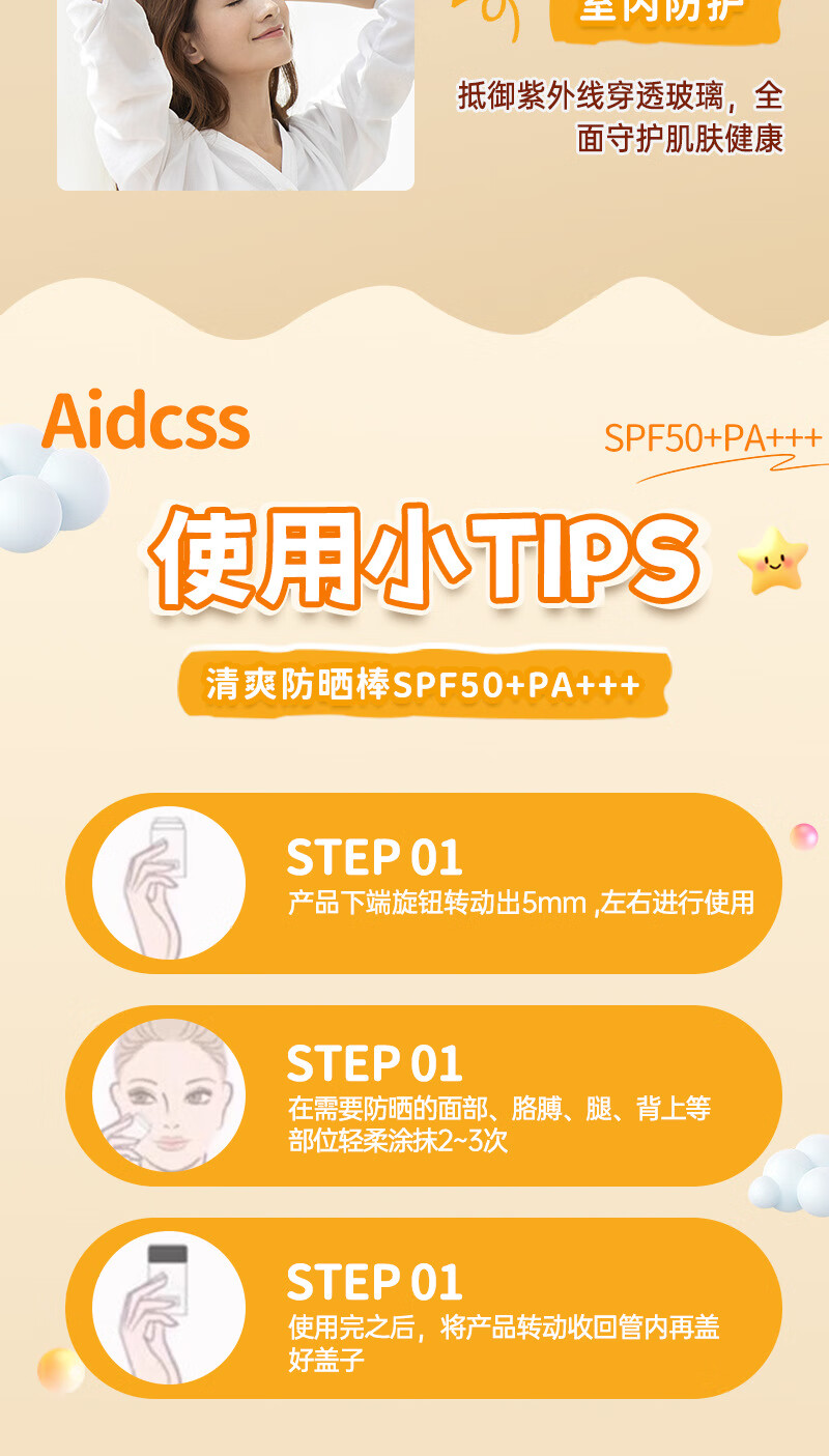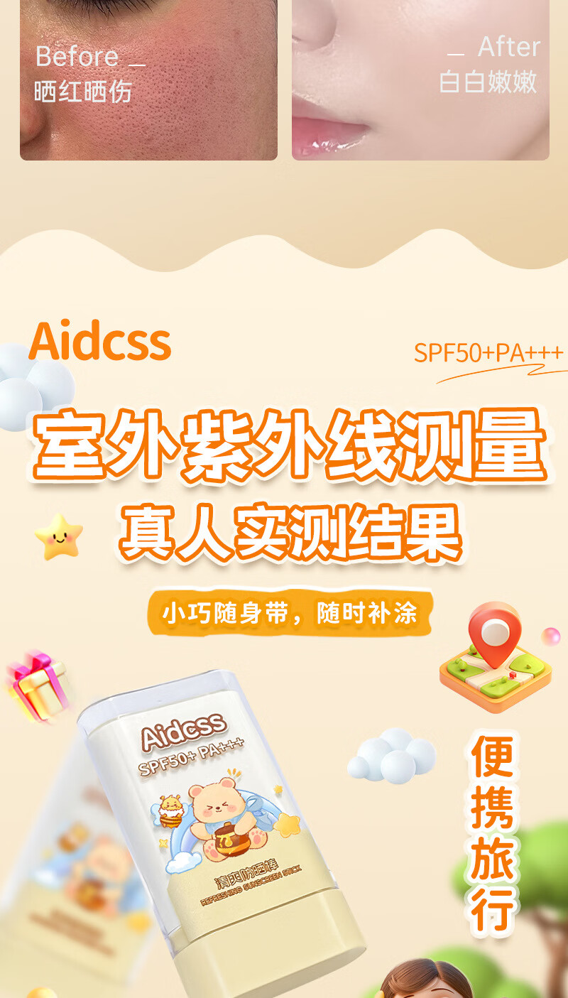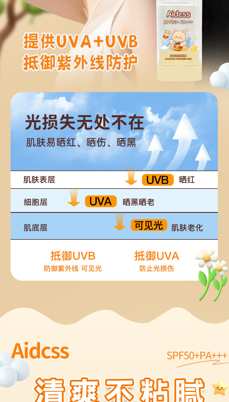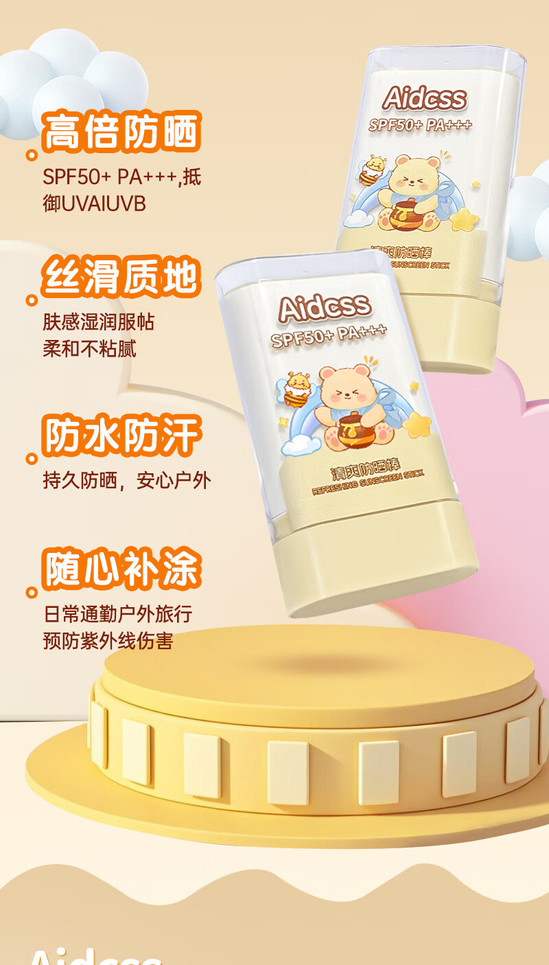 aidcssAidcss清爽防晒棒质地轻薄防水防汗清爽不粘腻温和防紫外线 清爽防晒棒 20g