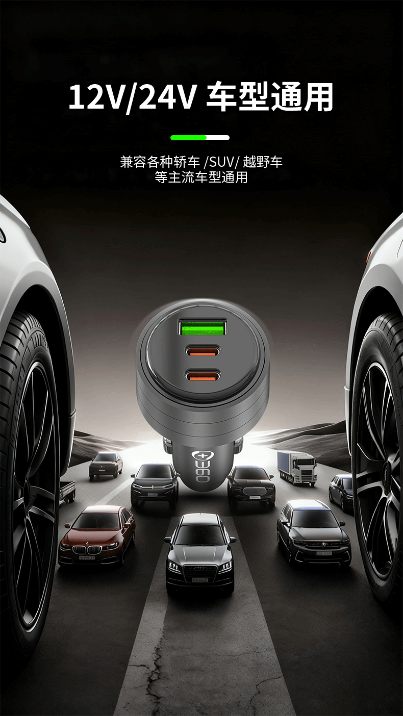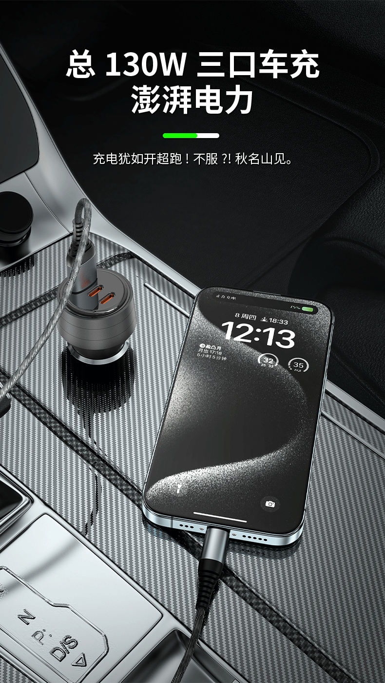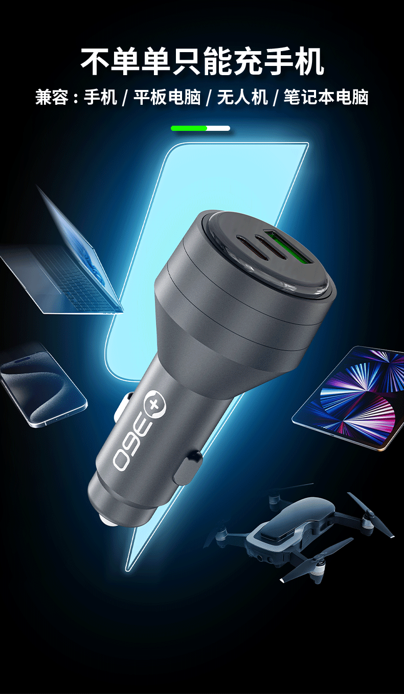 360车载充电器双路100W+30W大功率超级快充三口快充手机电脑通用 总130W大功率三口双路超级快充+双TC快充线