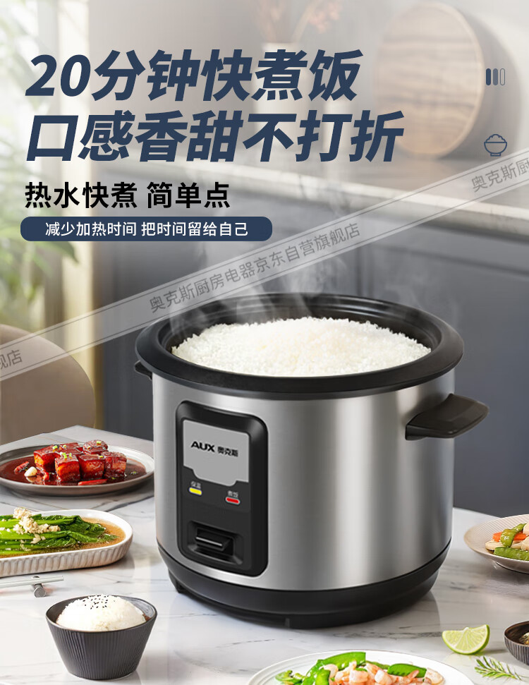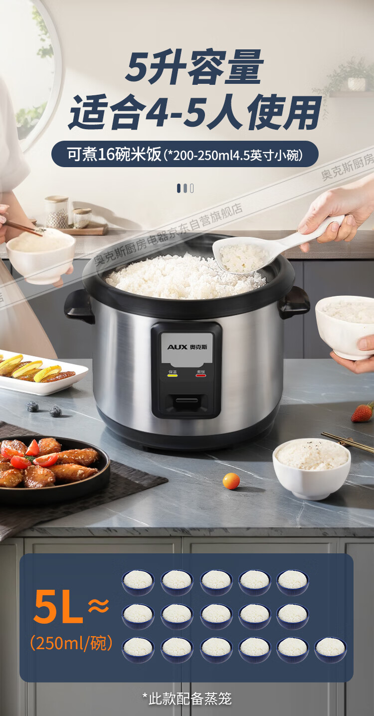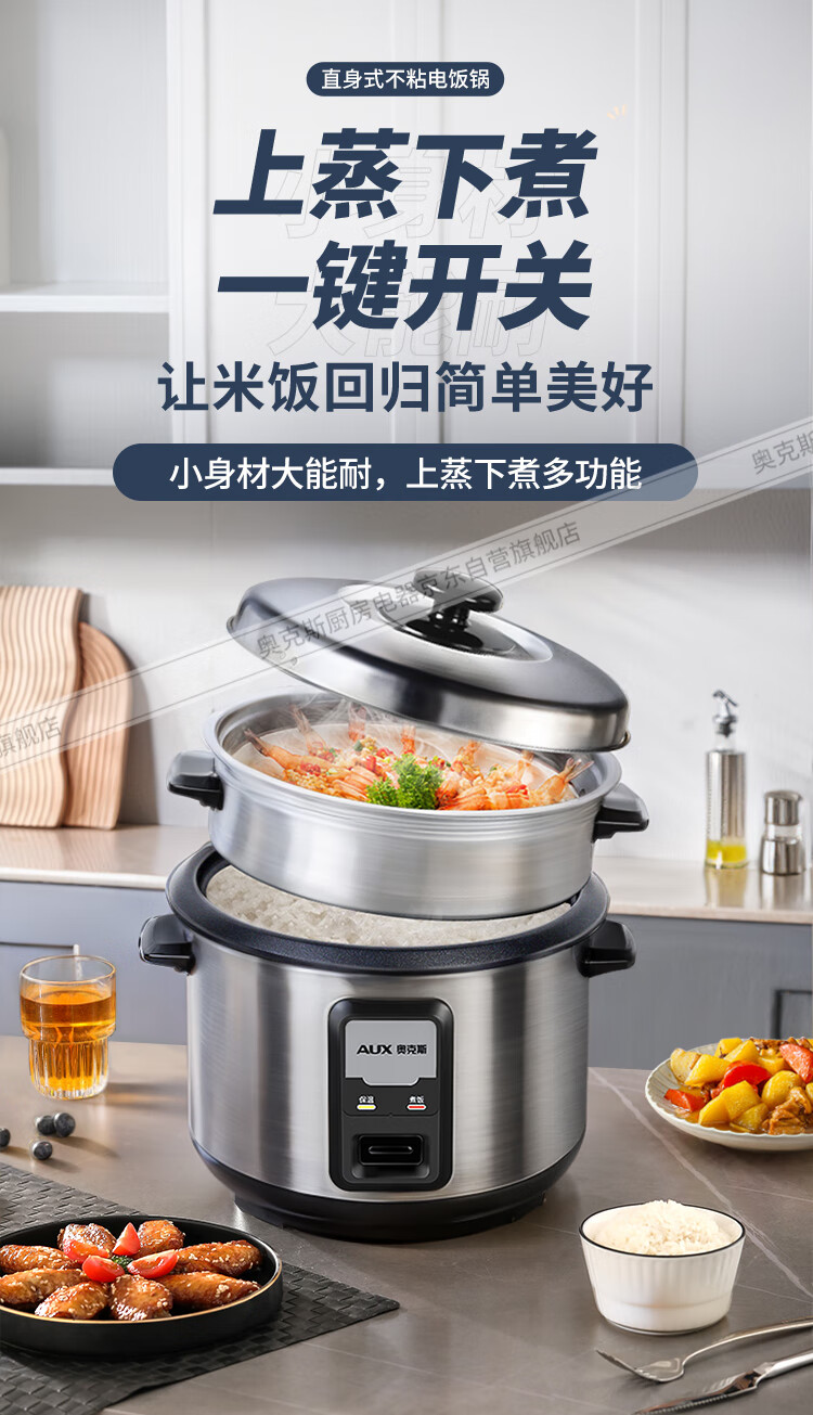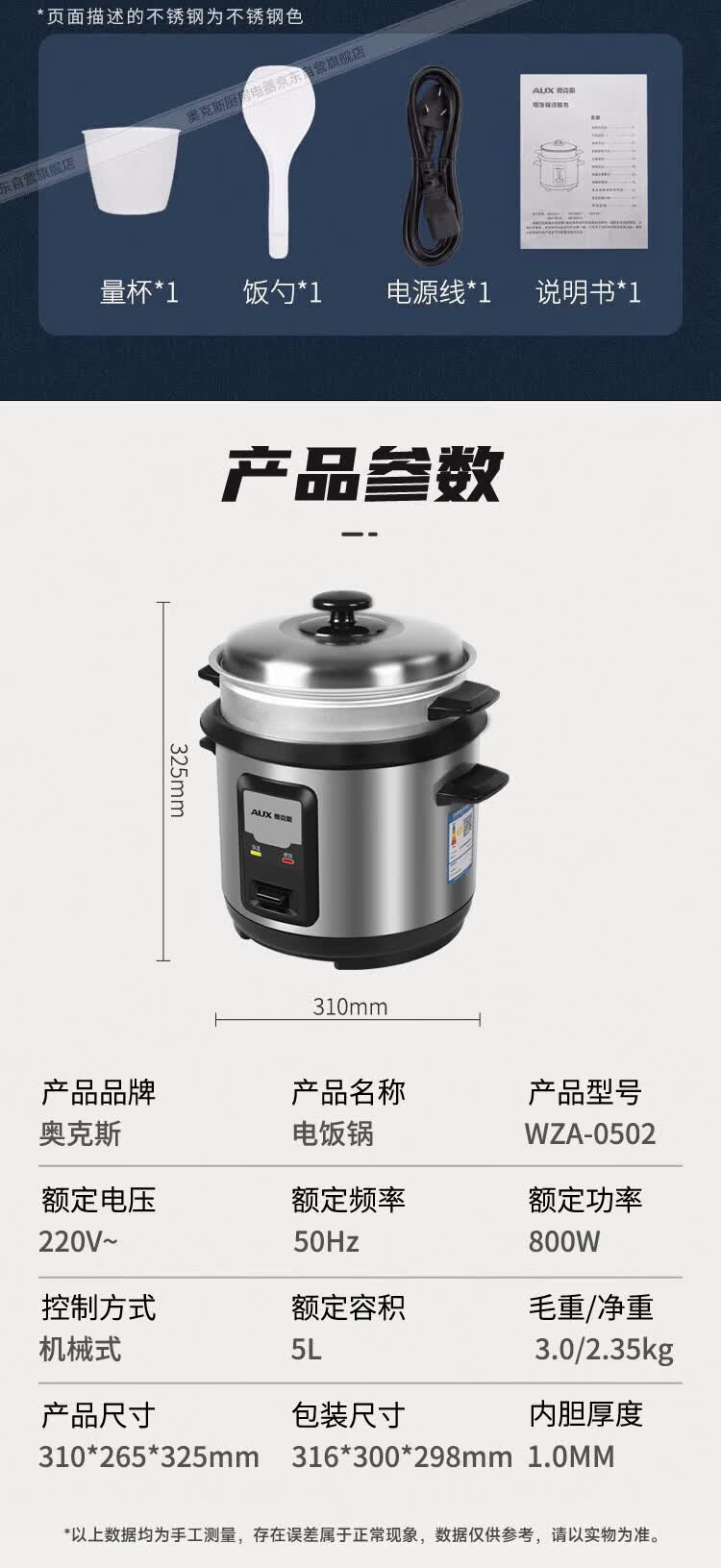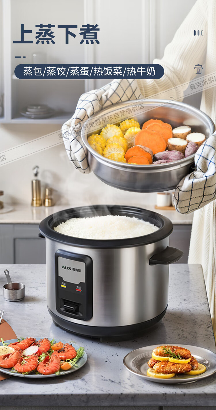 奥克斯(AUX)微压电饭煲 电饭锅老式直身宿舍蒸米饭5L米饭锅大容量煮饭锅带蒸笼4-5人用 WZA-0502