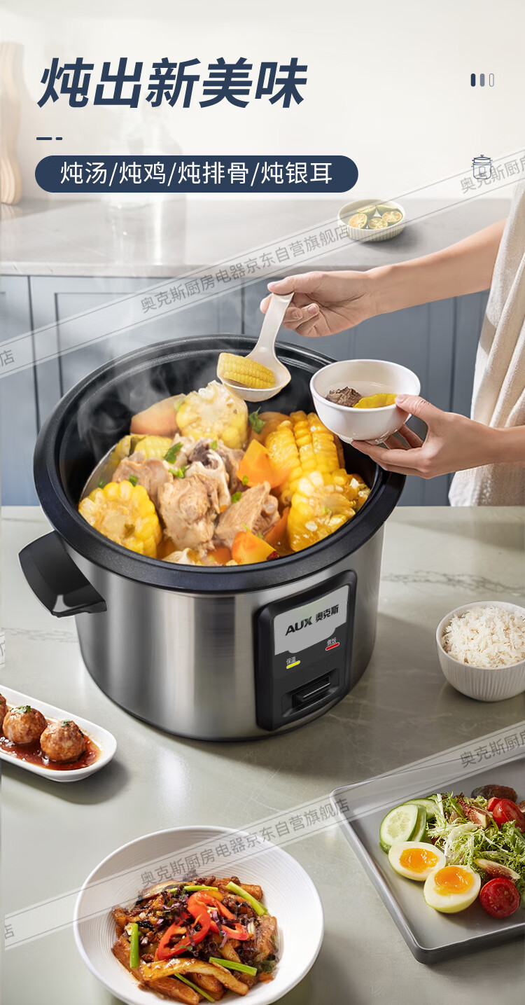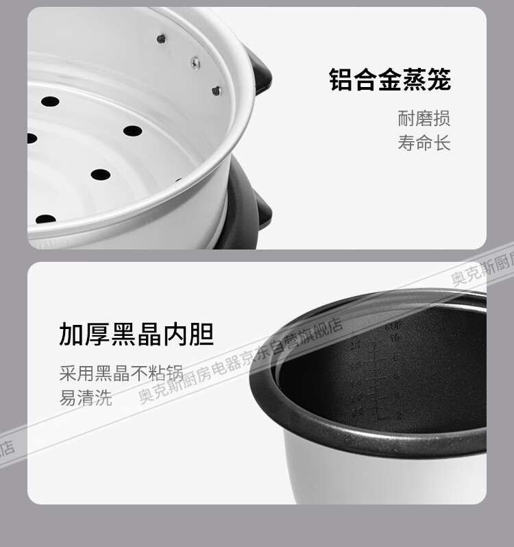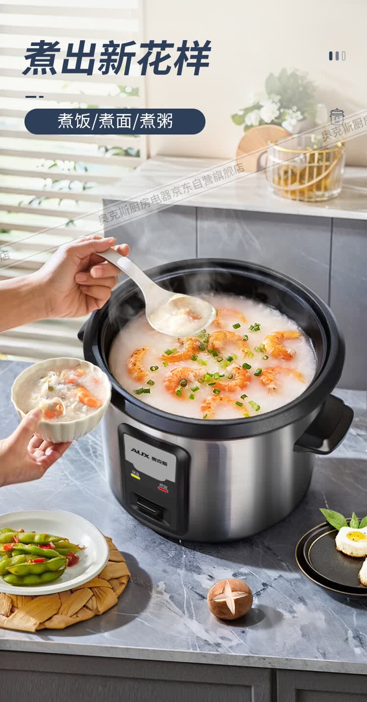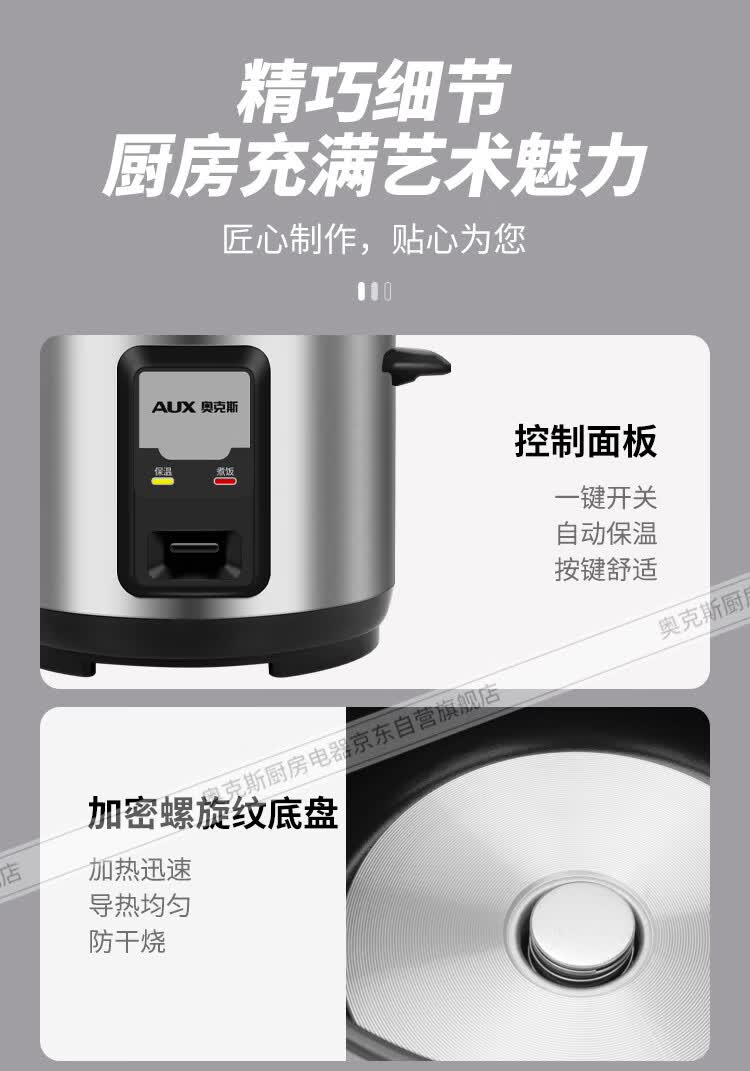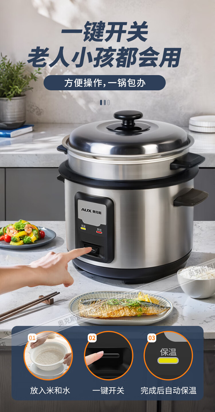奥克斯(AUX)微压电饭煲 电饭锅老式直身宿舍蒸米饭5L米饭锅大容量煮饭锅带蒸笼4-5人用 WZA-0502