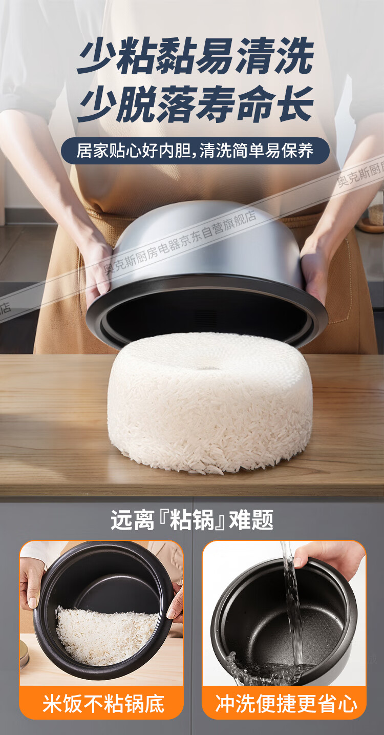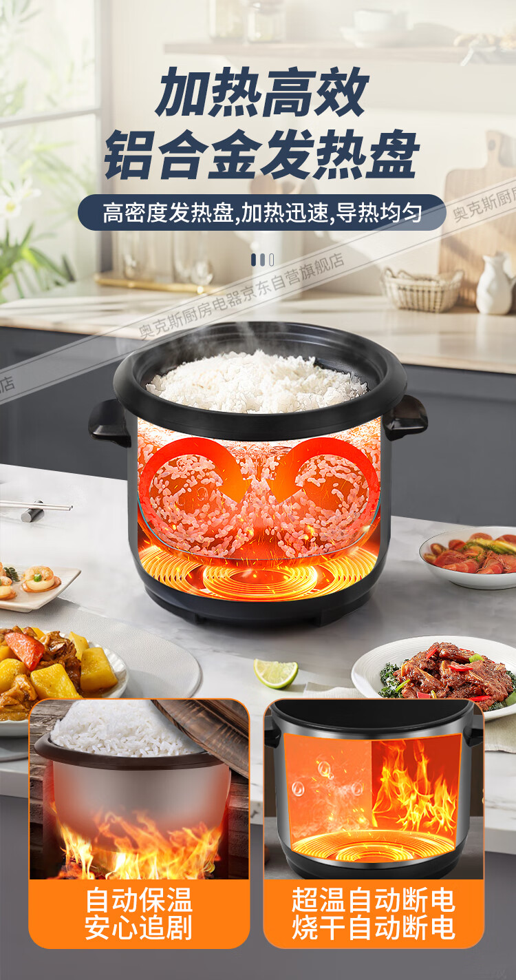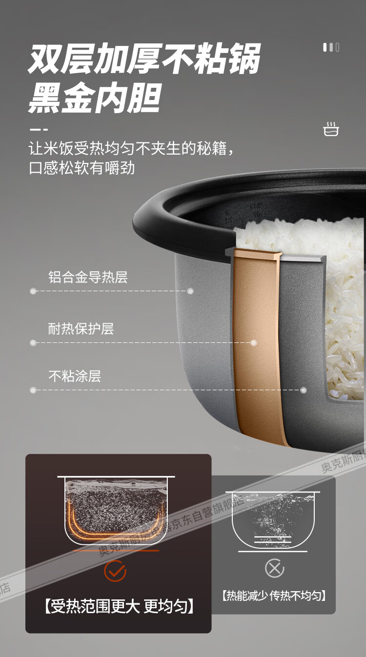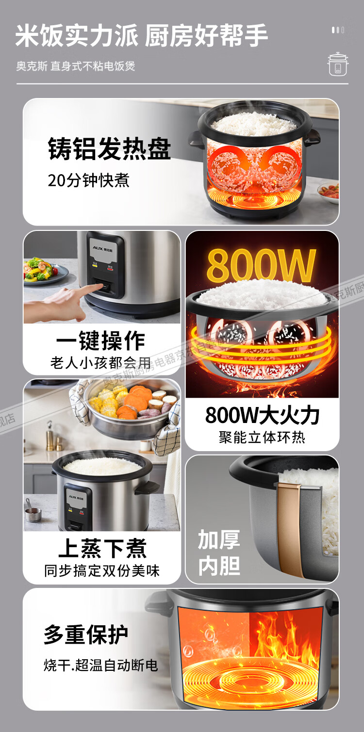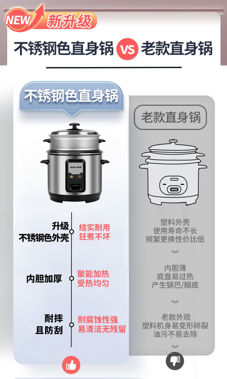 奥克斯(AUX)微压电饭煲 电饭锅老式直身宿舍蒸米饭5L米饭锅大容量煮饭锅带蒸笼4-5人用 WZA-0502