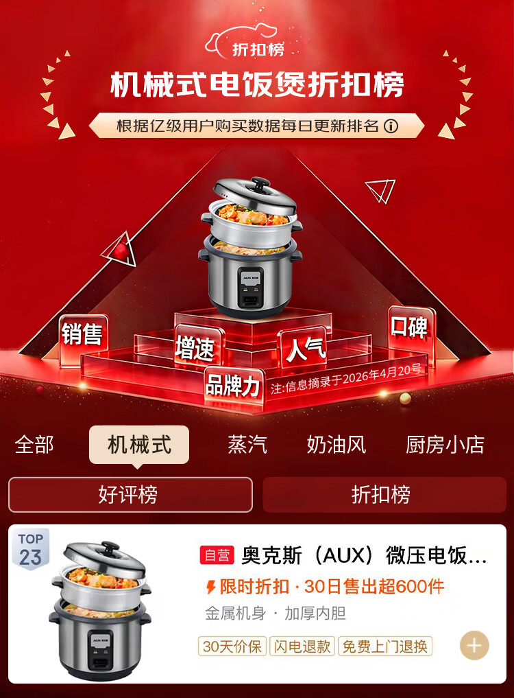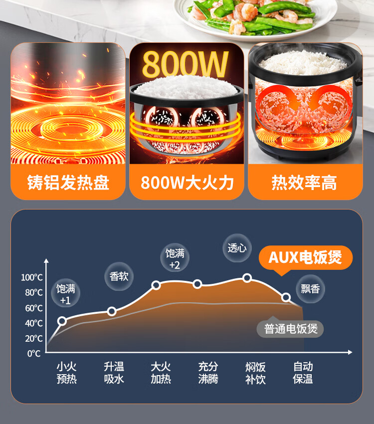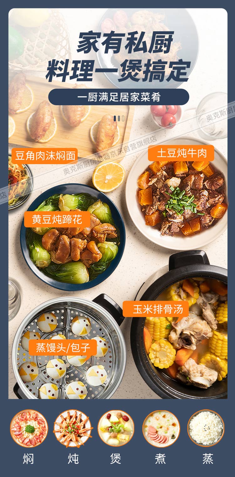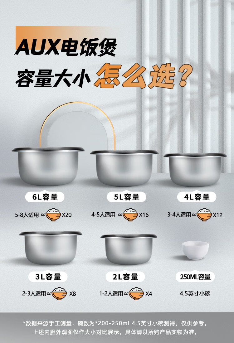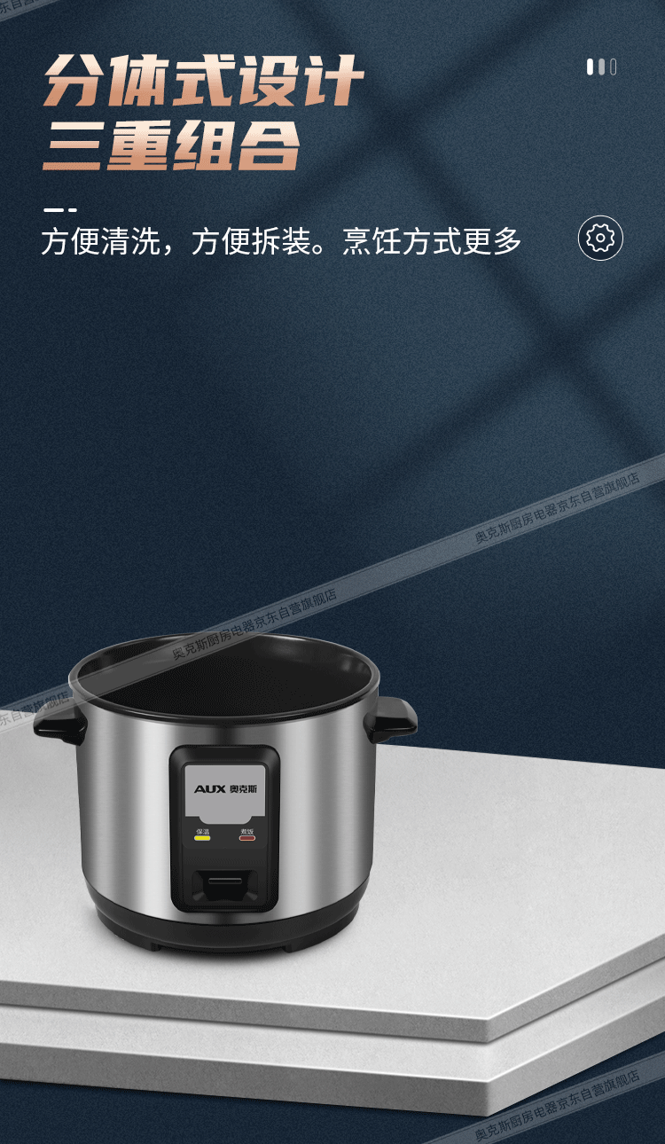 奥克斯(AUX)微压电饭煲 电饭锅老式直身宿舍蒸米饭5L米饭锅大容量煮饭锅带蒸笼4-5人用 WZA-0502