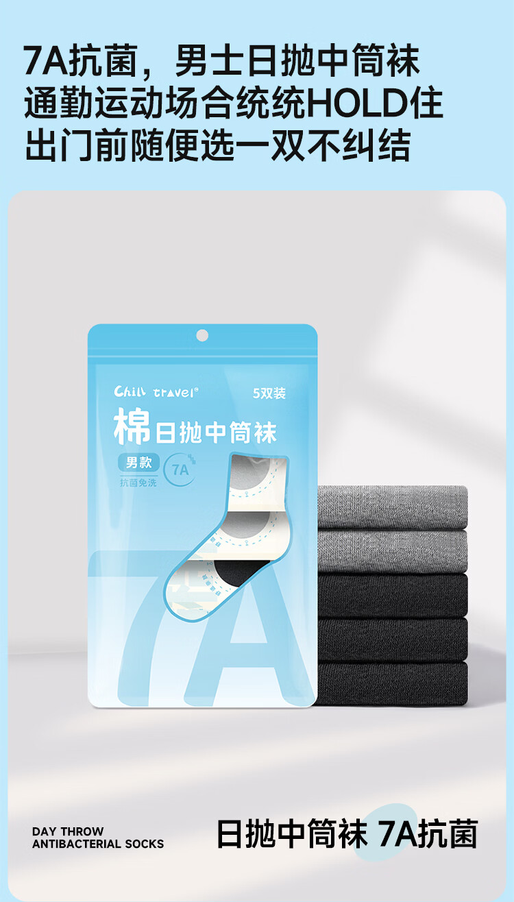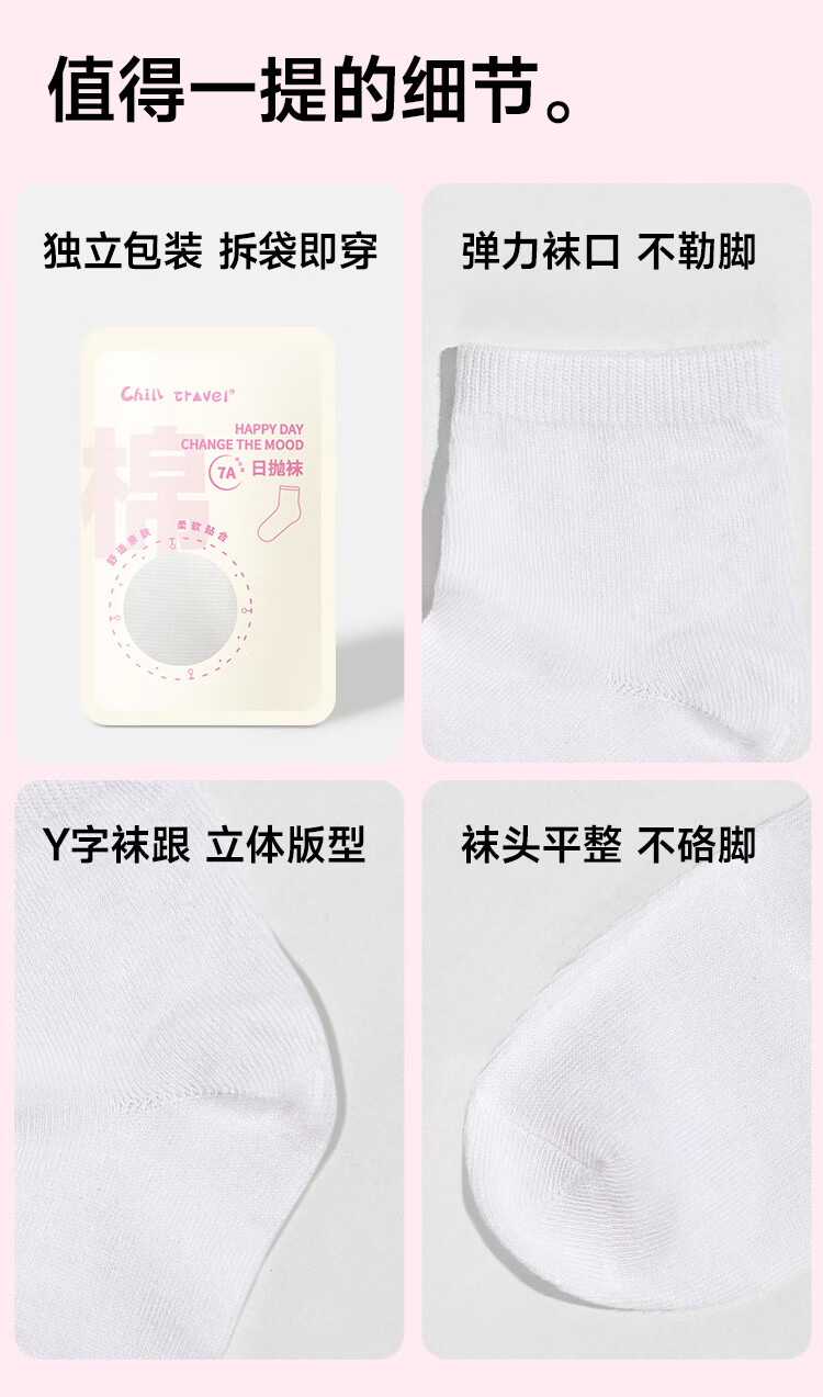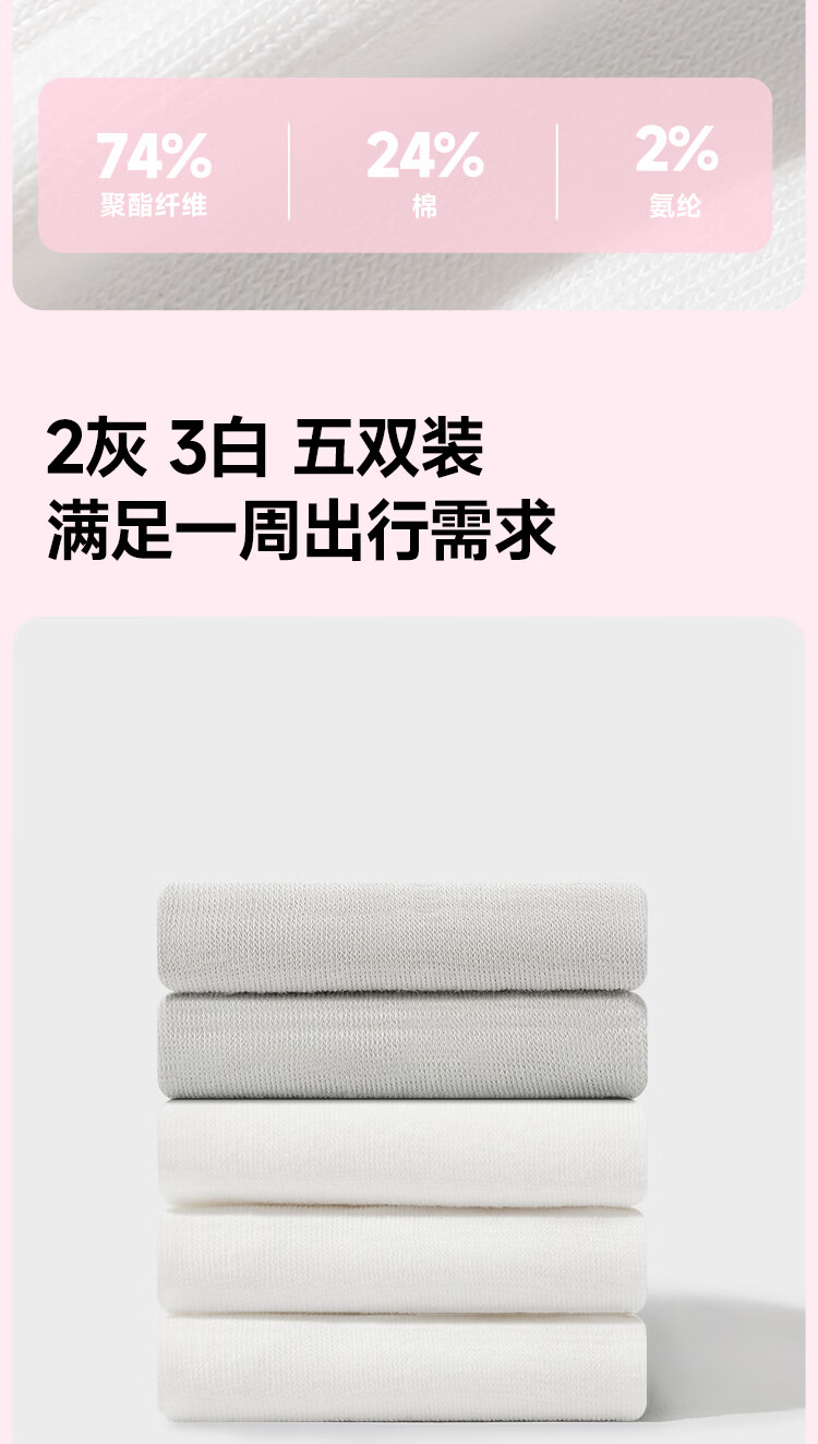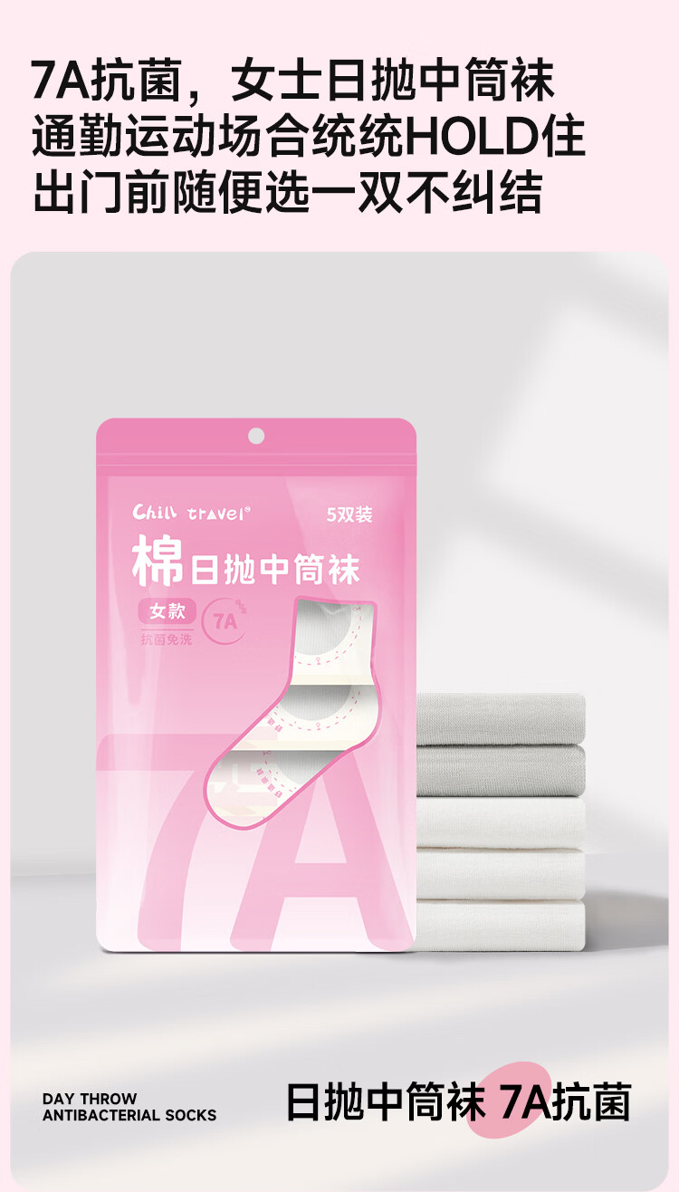 屈臣氏ChillTravel日抛中筒袜 女士5双装 10片 1包