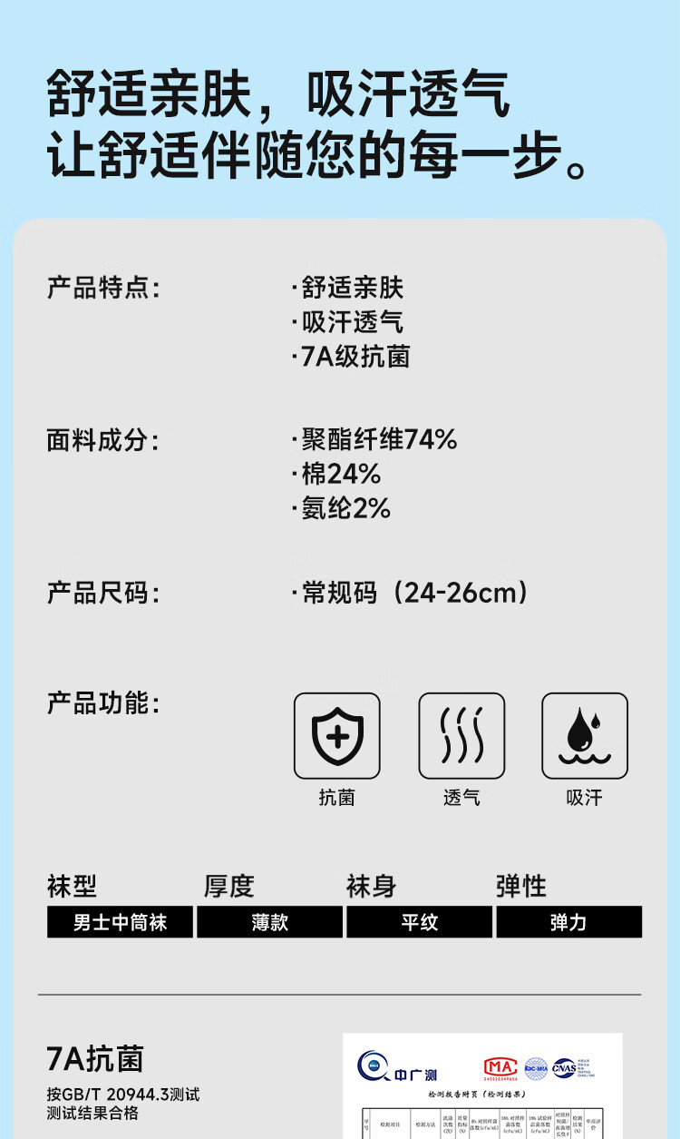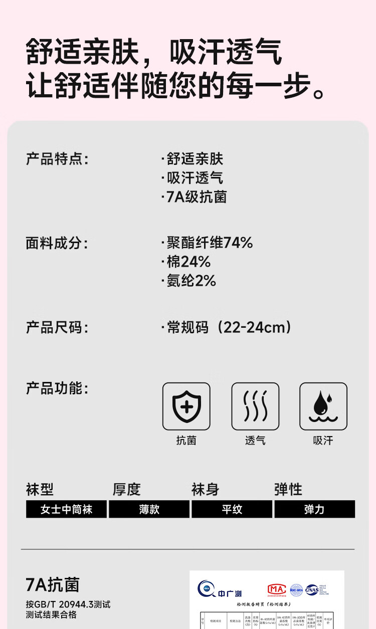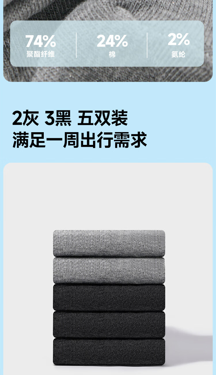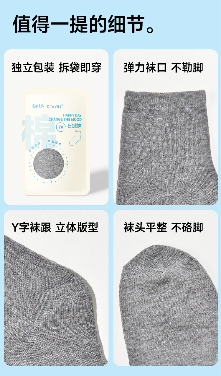 屈臣氏ChillTravel日抛中筒袜 女士5双装 10片 1包