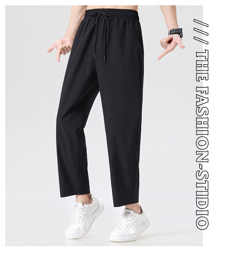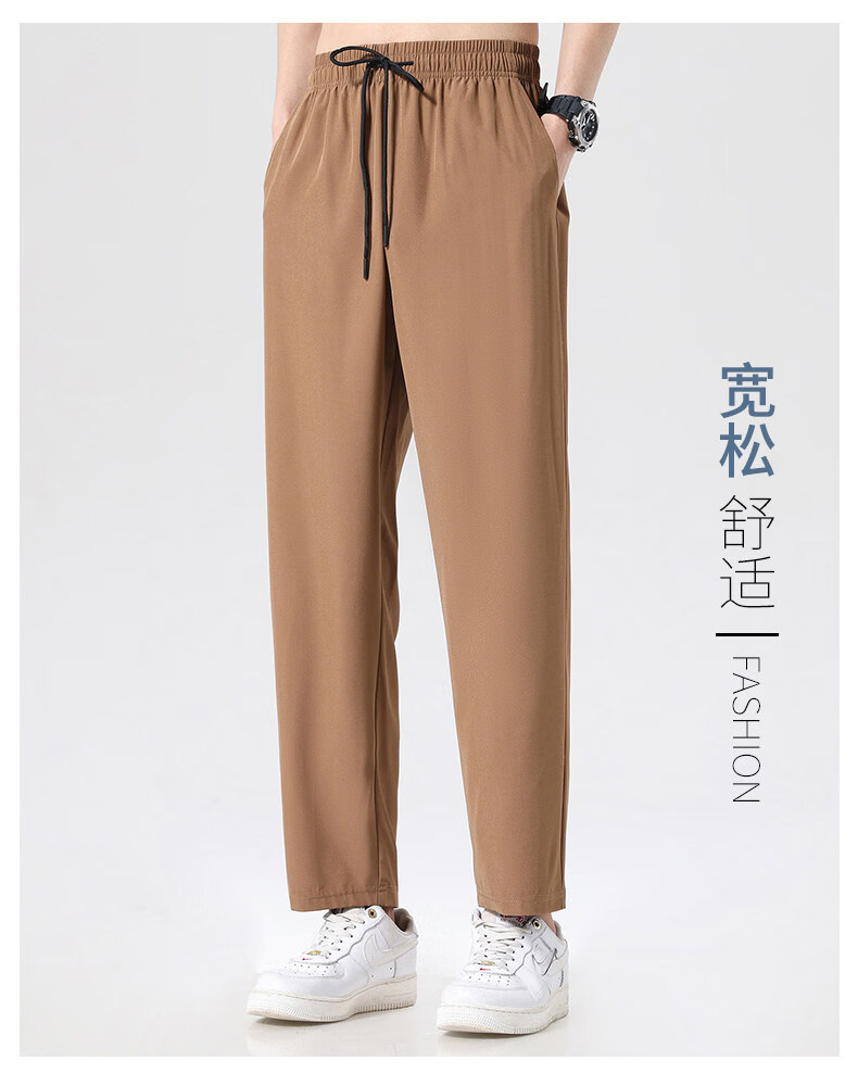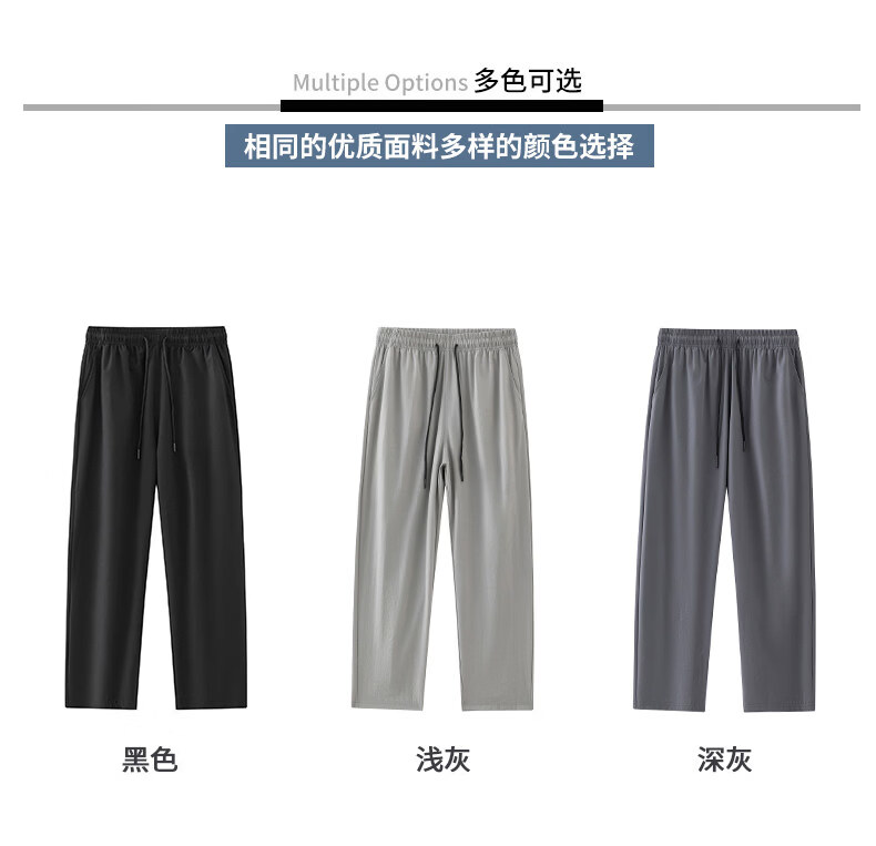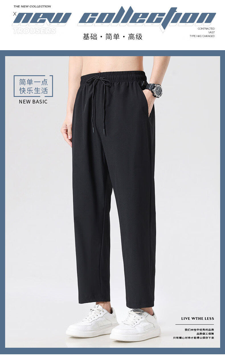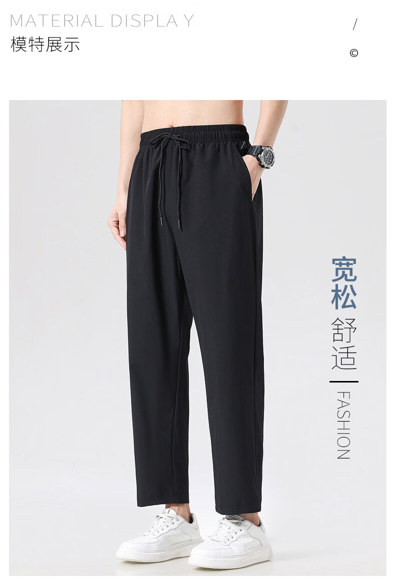 真维斯(Jeanswest)2026速干休闲裤男士夏季薄款宽松直筒长裤男生冰丝垂感运动长裤子 黑色 【冰丝薄款】 M 建议体重【90-105斤】