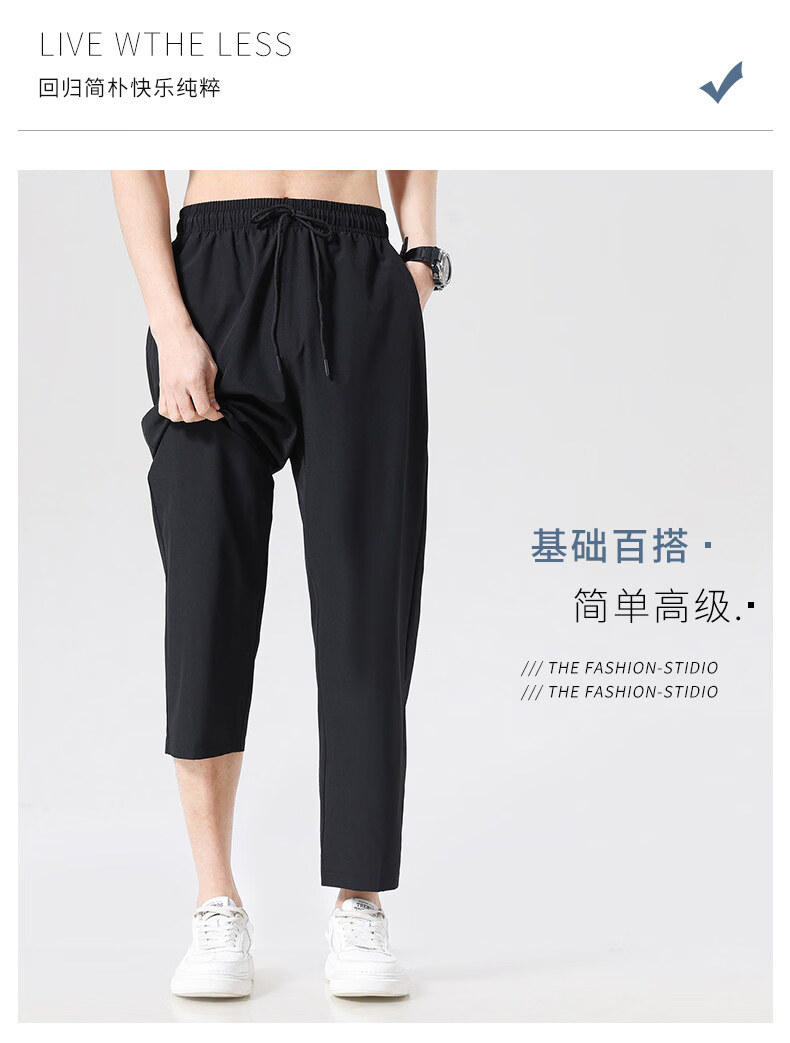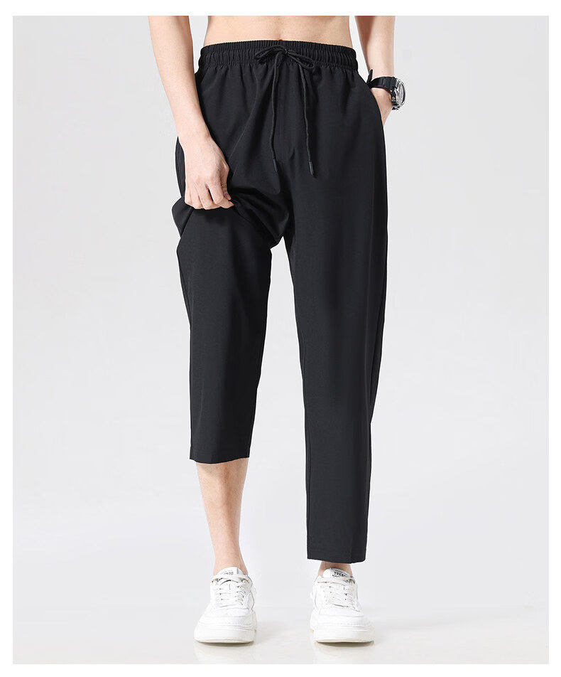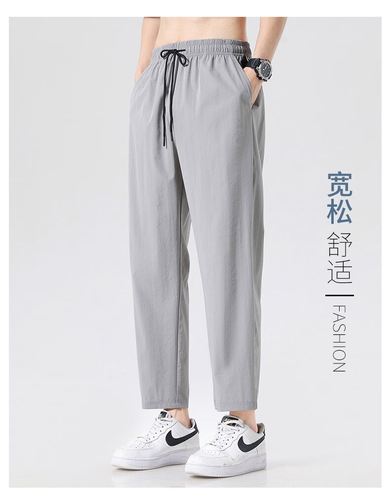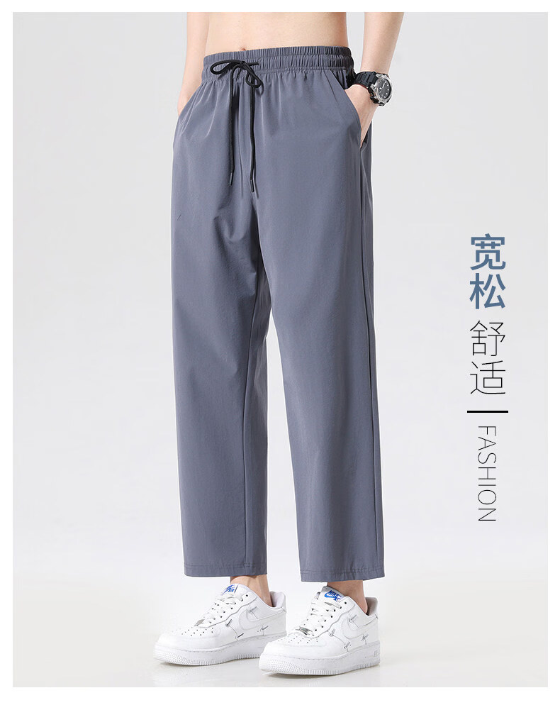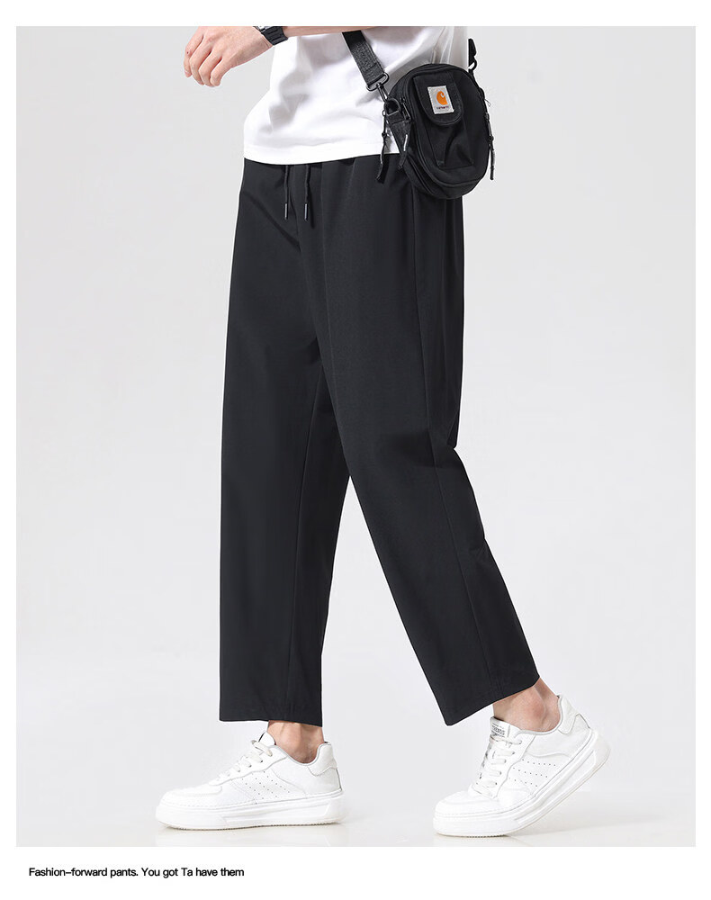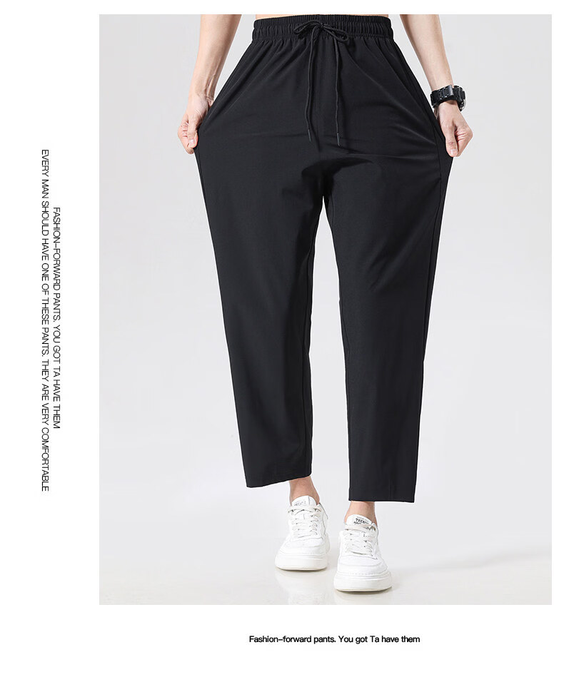 真维斯(Jeanswest)2026速干休闲裤男士夏季薄款宽松直筒长裤男生冰丝垂感运动长裤子 黑色 【冰丝薄款】 M 建议体重【90-105斤】