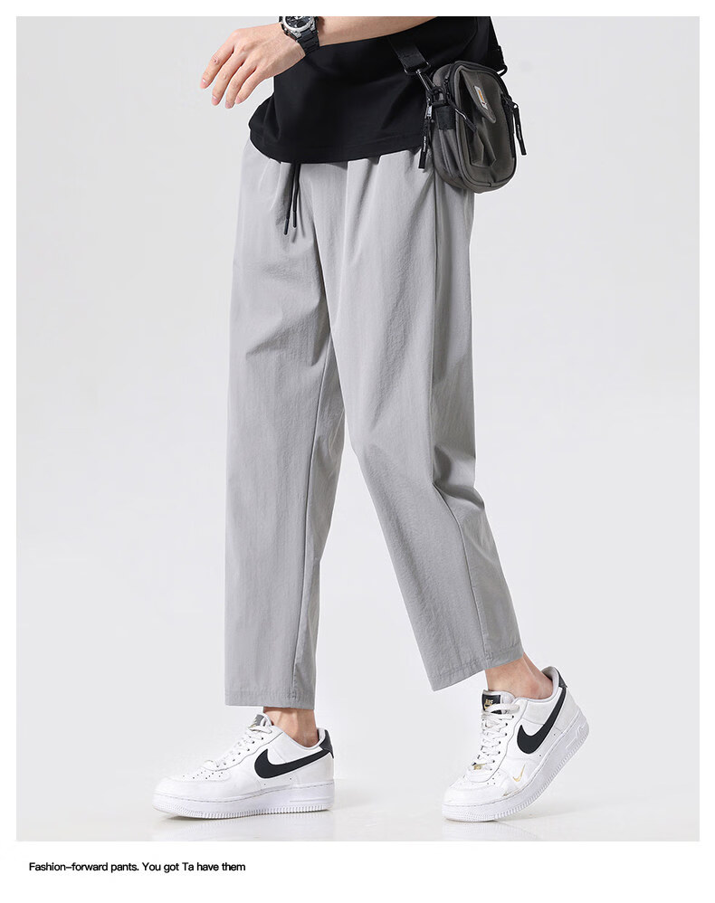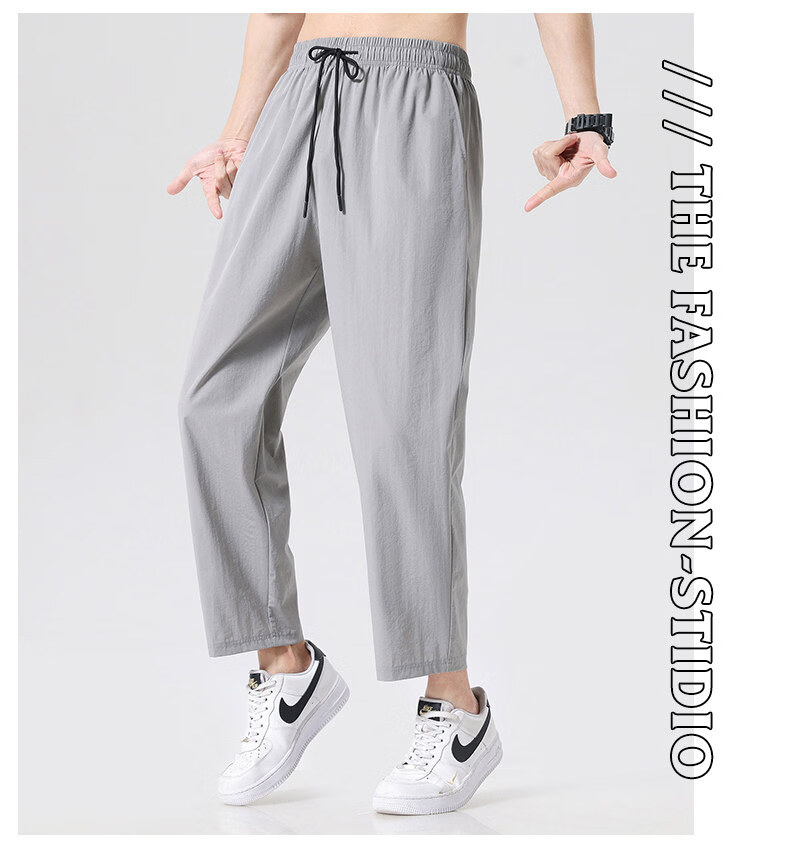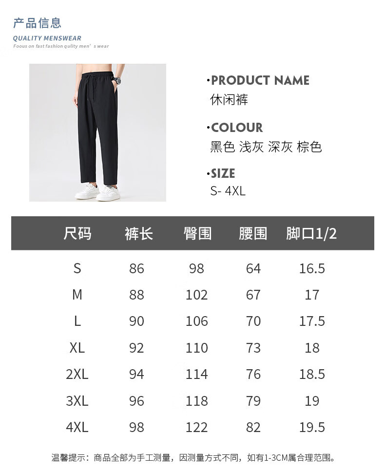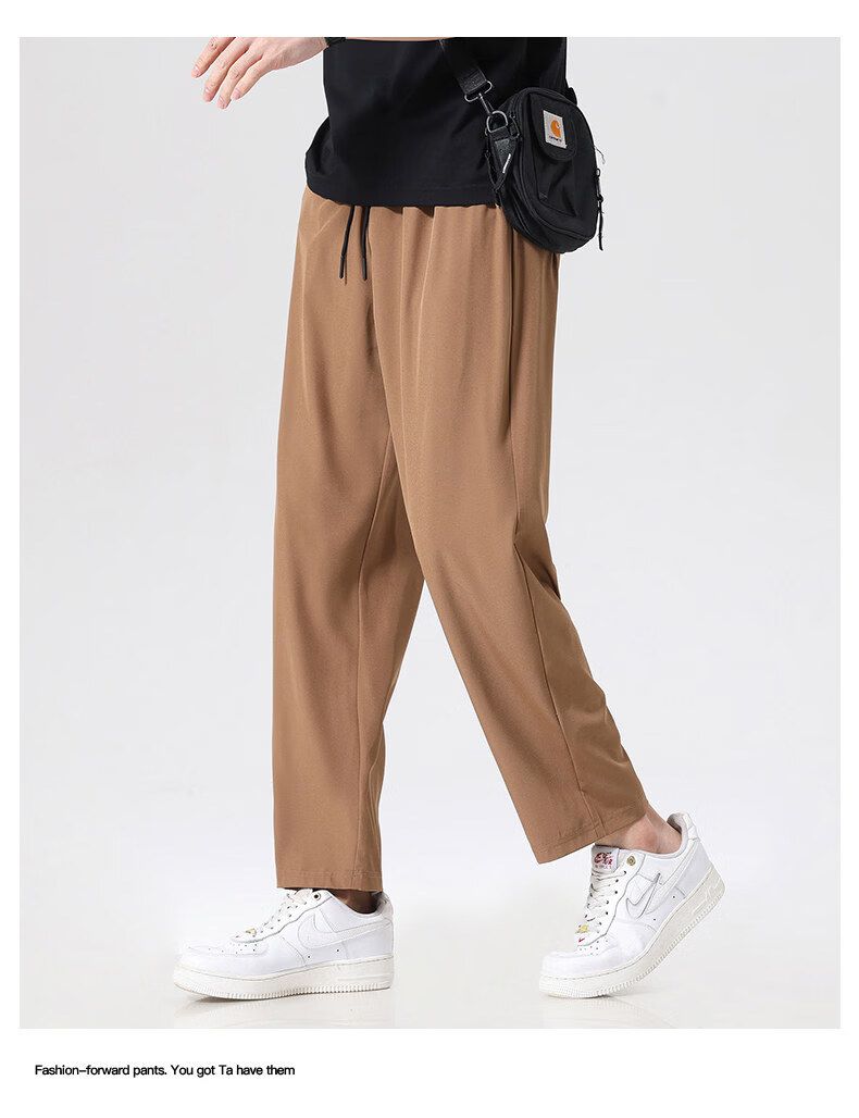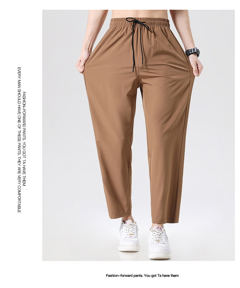 真维斯(Jeanswest)2026速干休闲裤男士夏季薄款宽松直筒长裤男生冰丝垂感运动长裤子 黑色 【冰丝薄款】 M 建议体重【90-105斤】