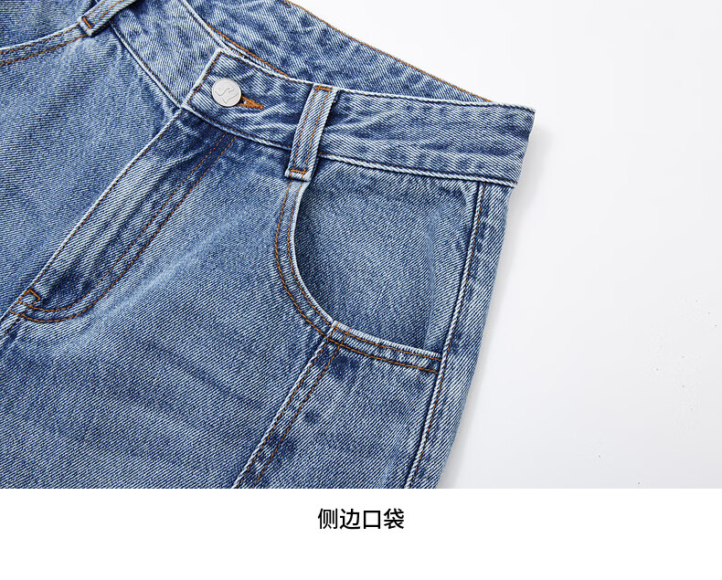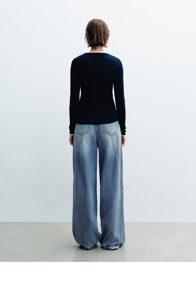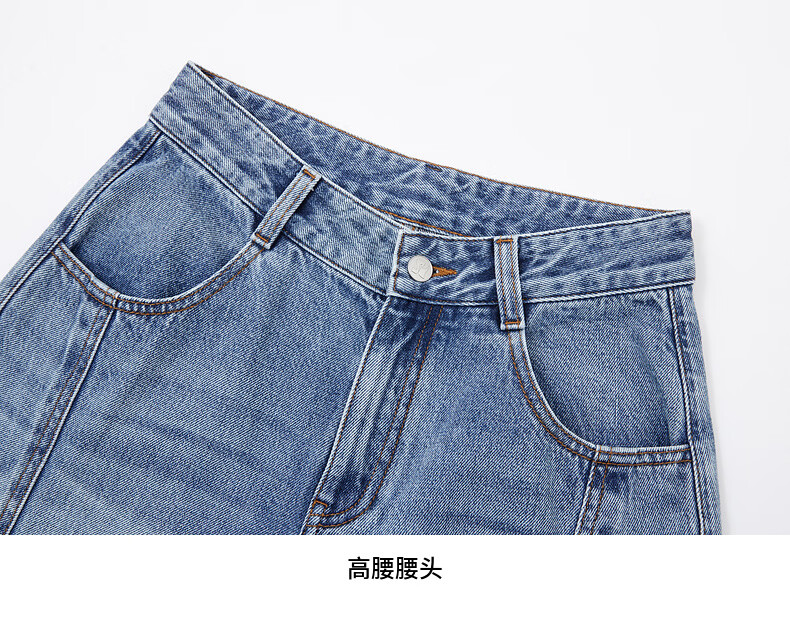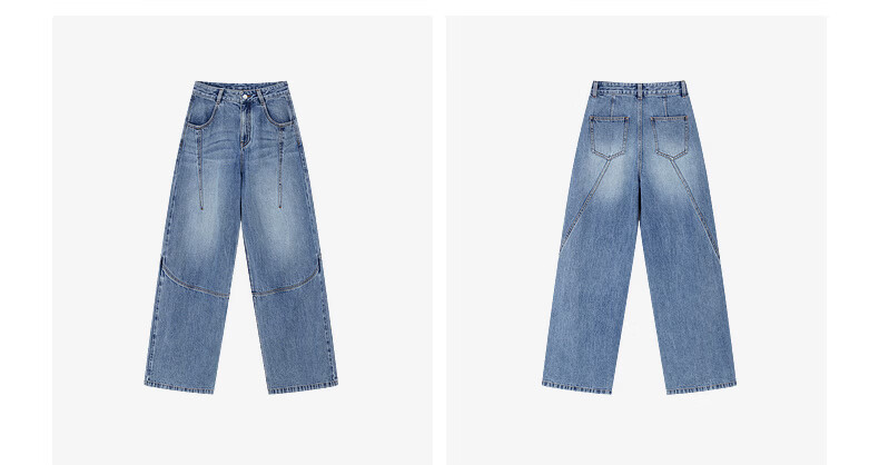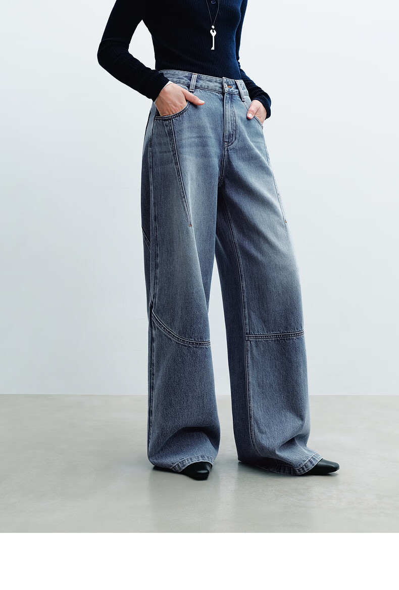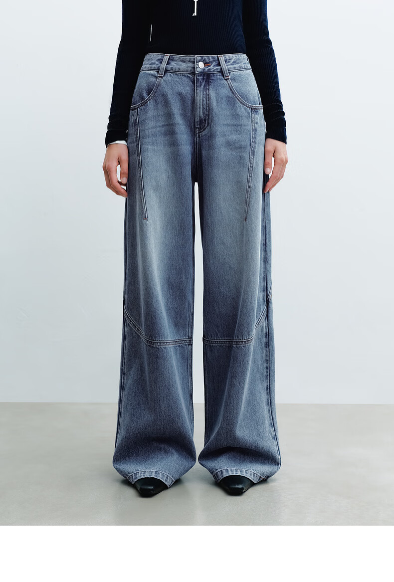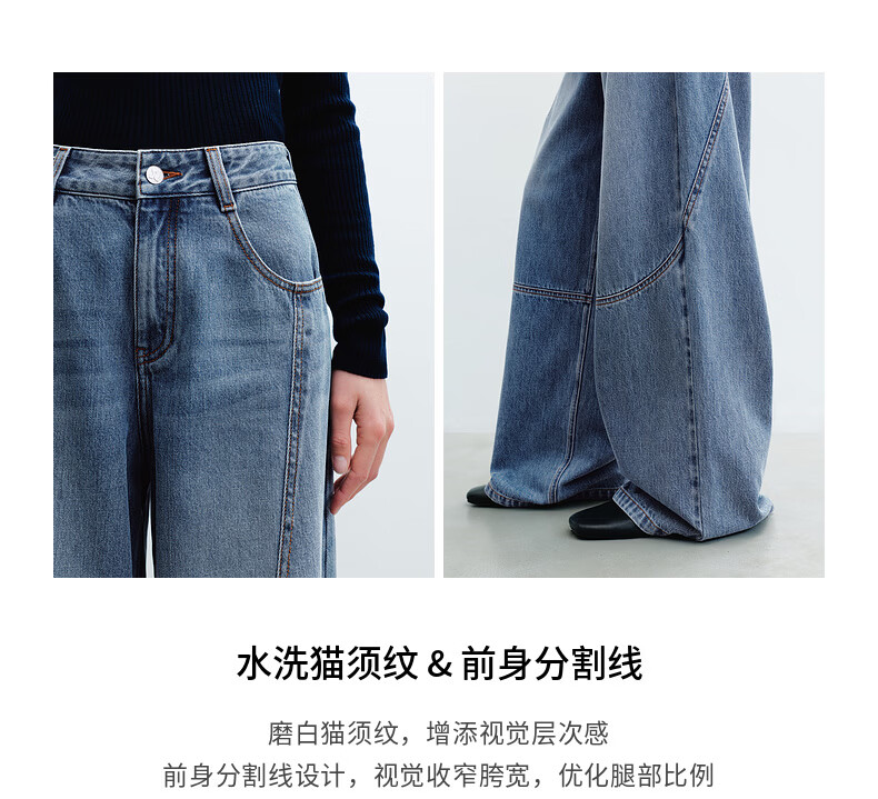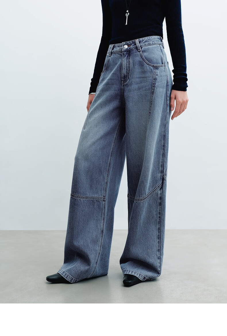 H's浅蓝色牛仔裤女26春季新款高级设计纹理感宽松显瘦直筒阔腿裤子 牛仔蓝 S