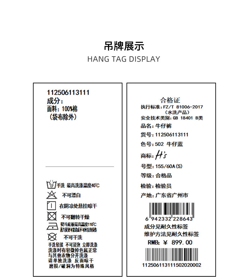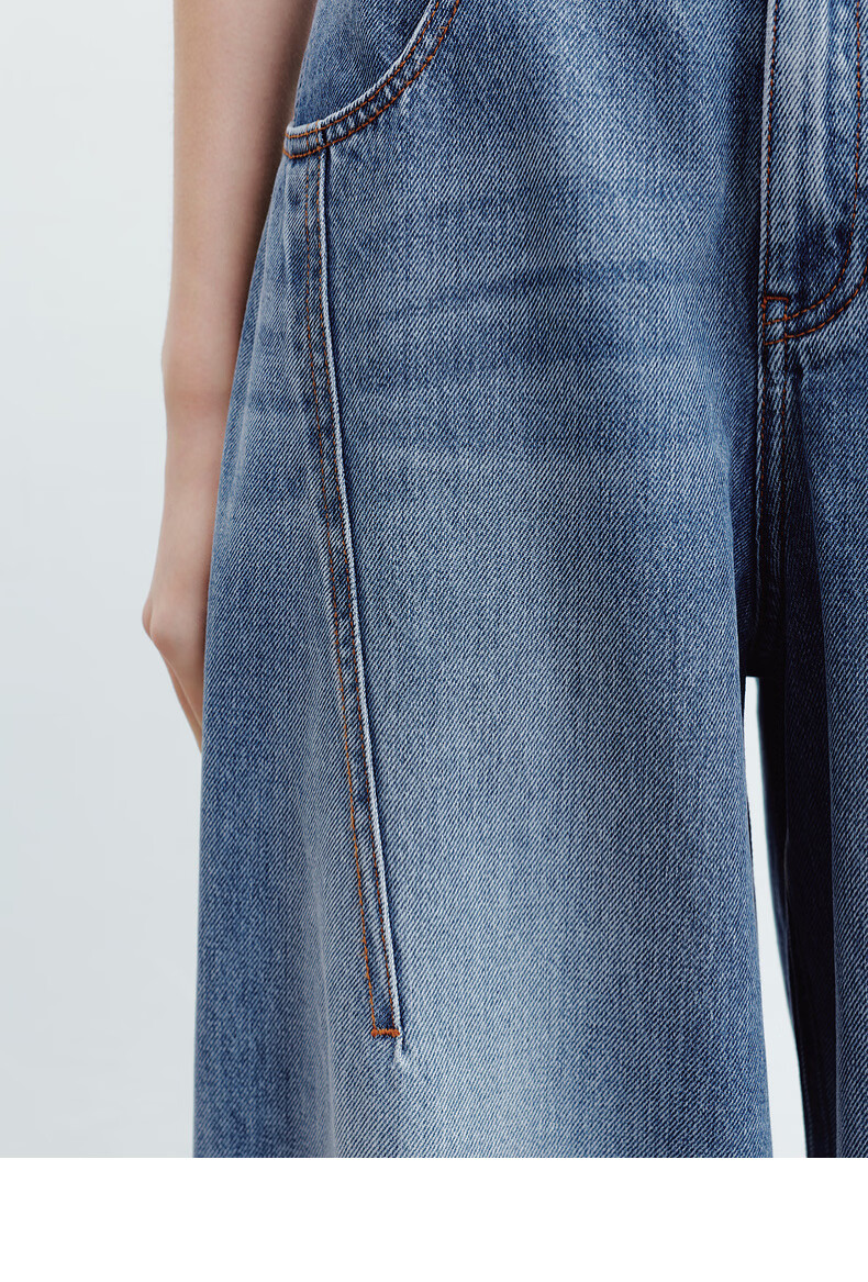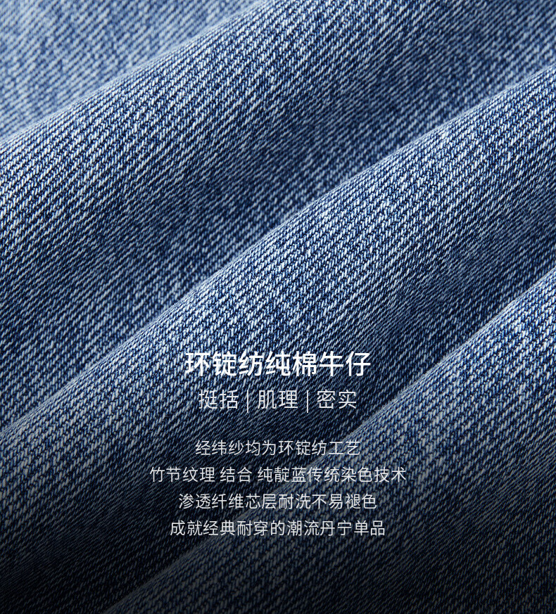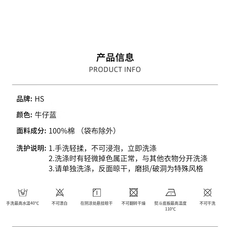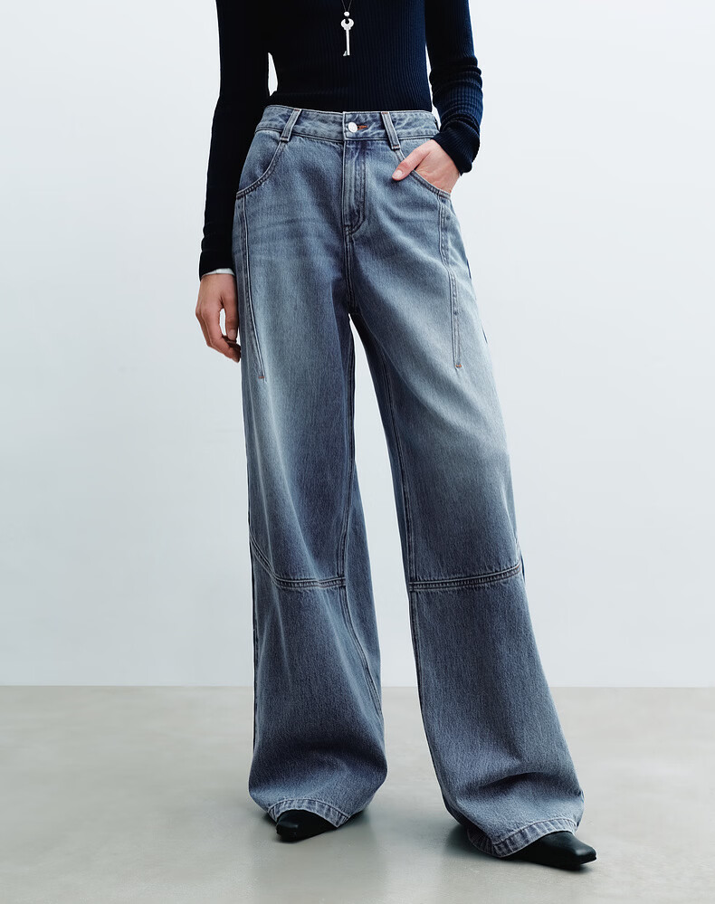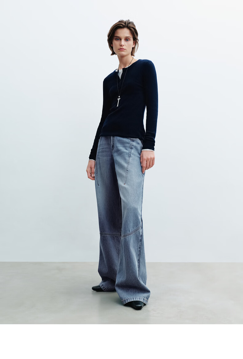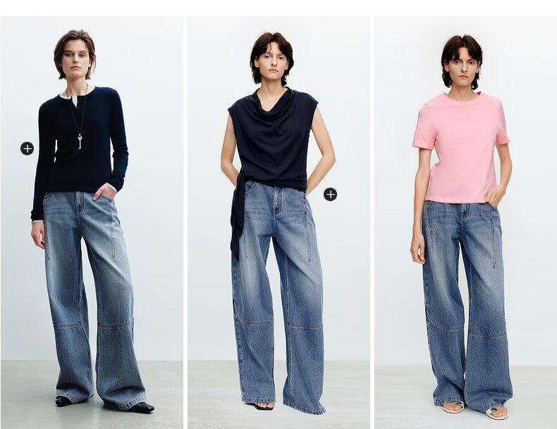 H's浅蓝色牛仔裤女26春季新款高级设计纹理感宽松显瘦直筒阔腿裤子 牛仔蓝 S