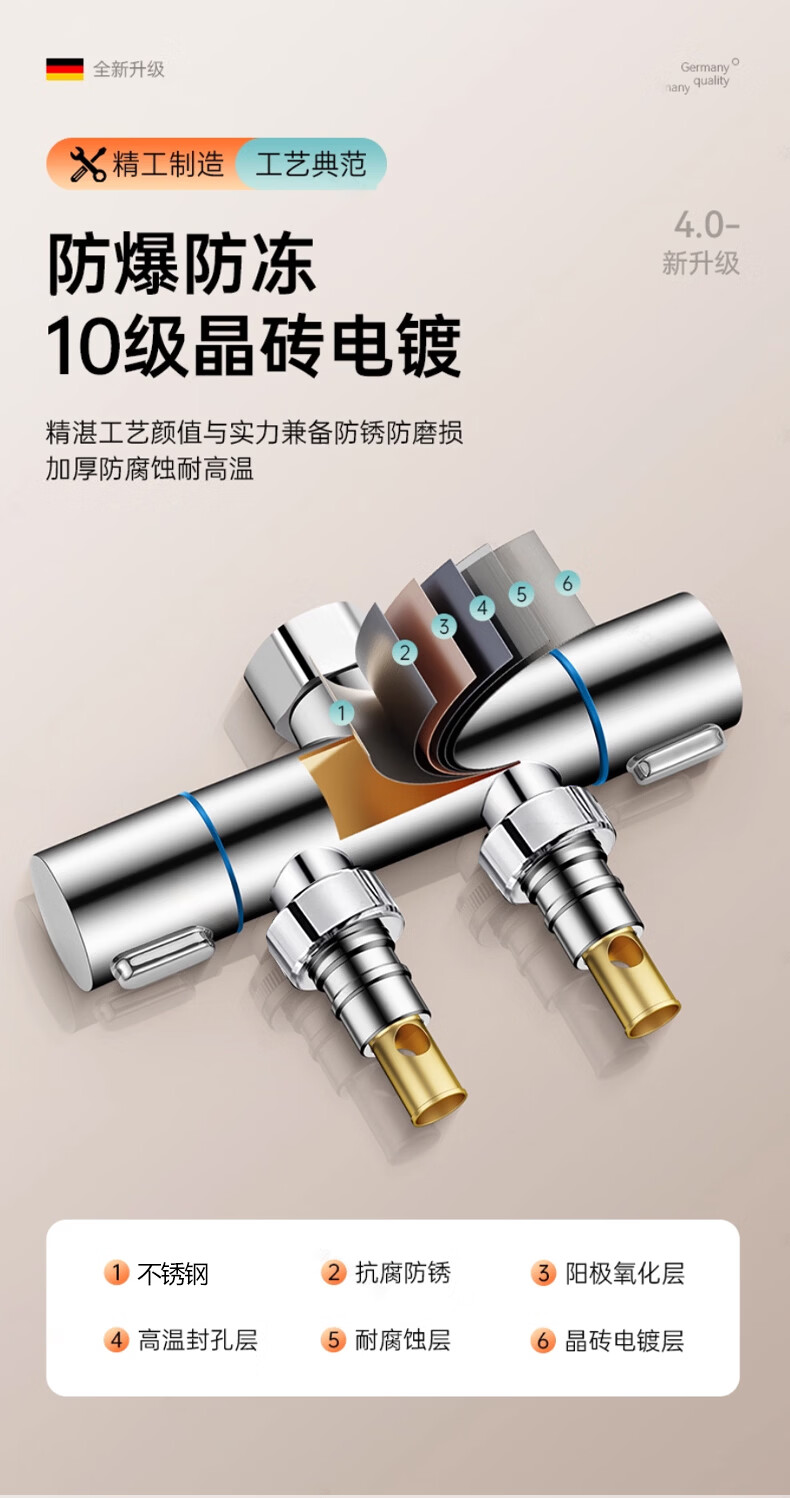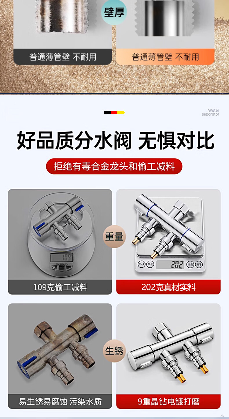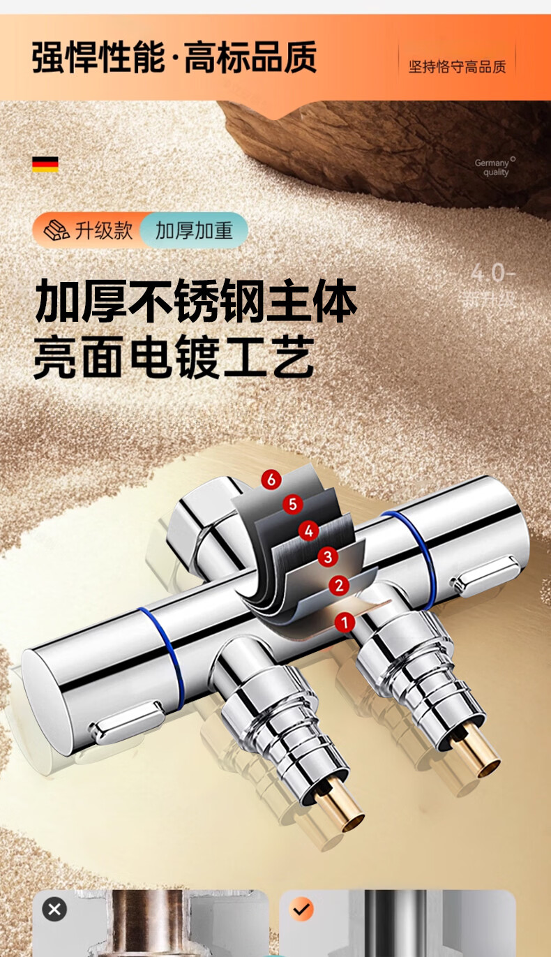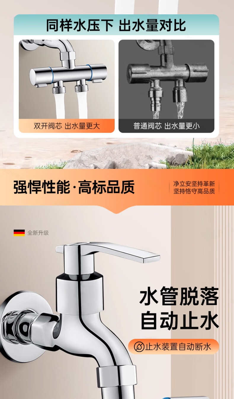 HOMK【德国】洗衣机水龙头专用一进二出角阀分水器三通接头脱落止水 【4分止水+4分止水】质感银 精铜止水杆丨漏水包退换