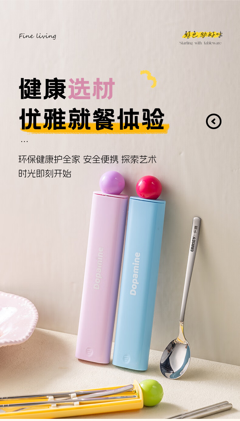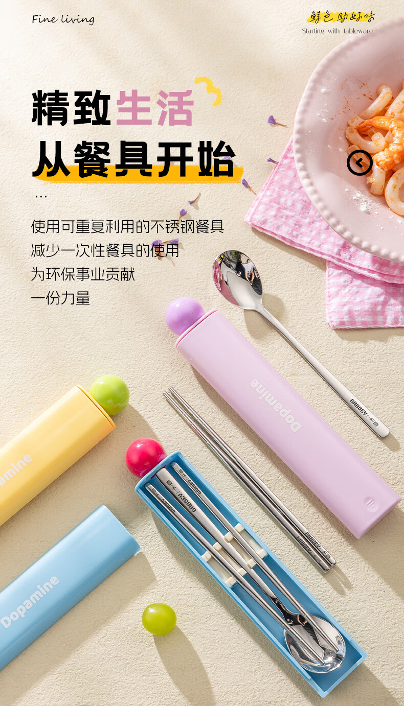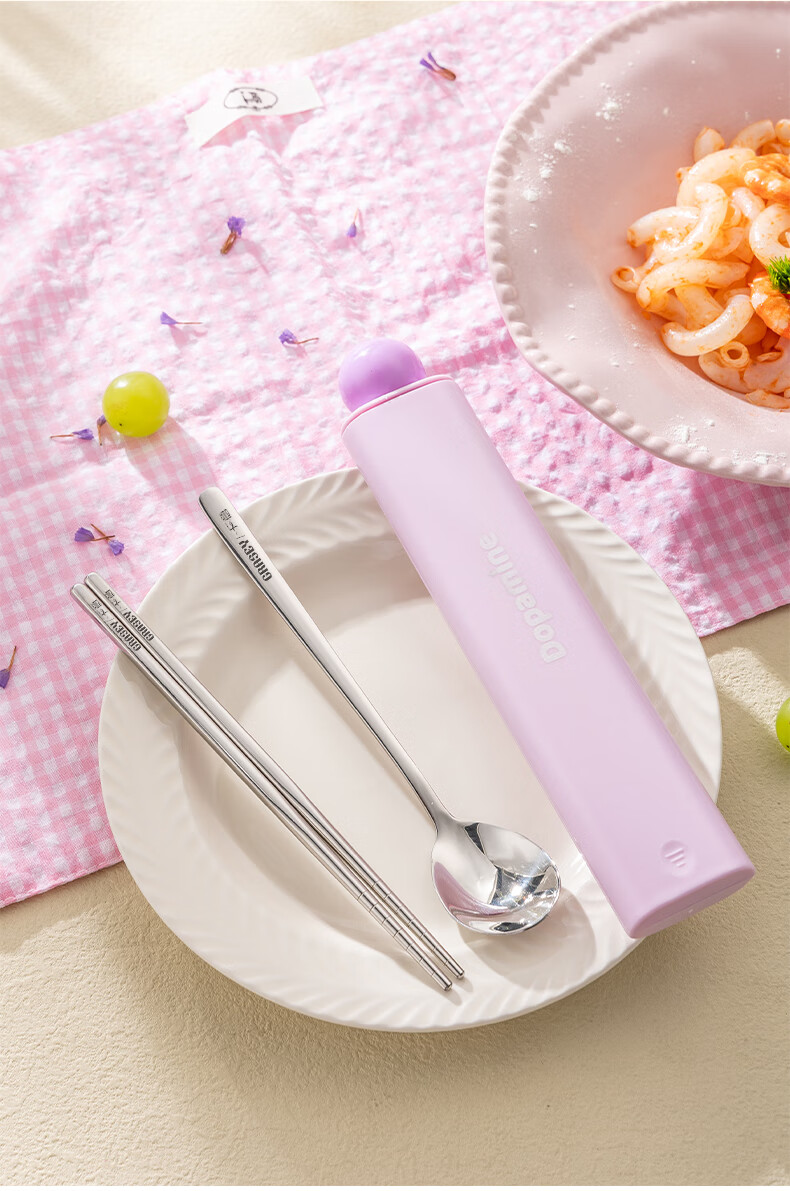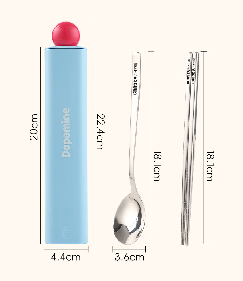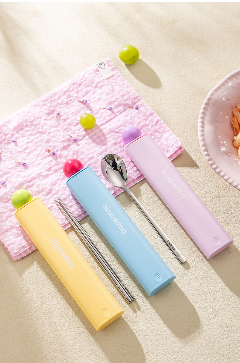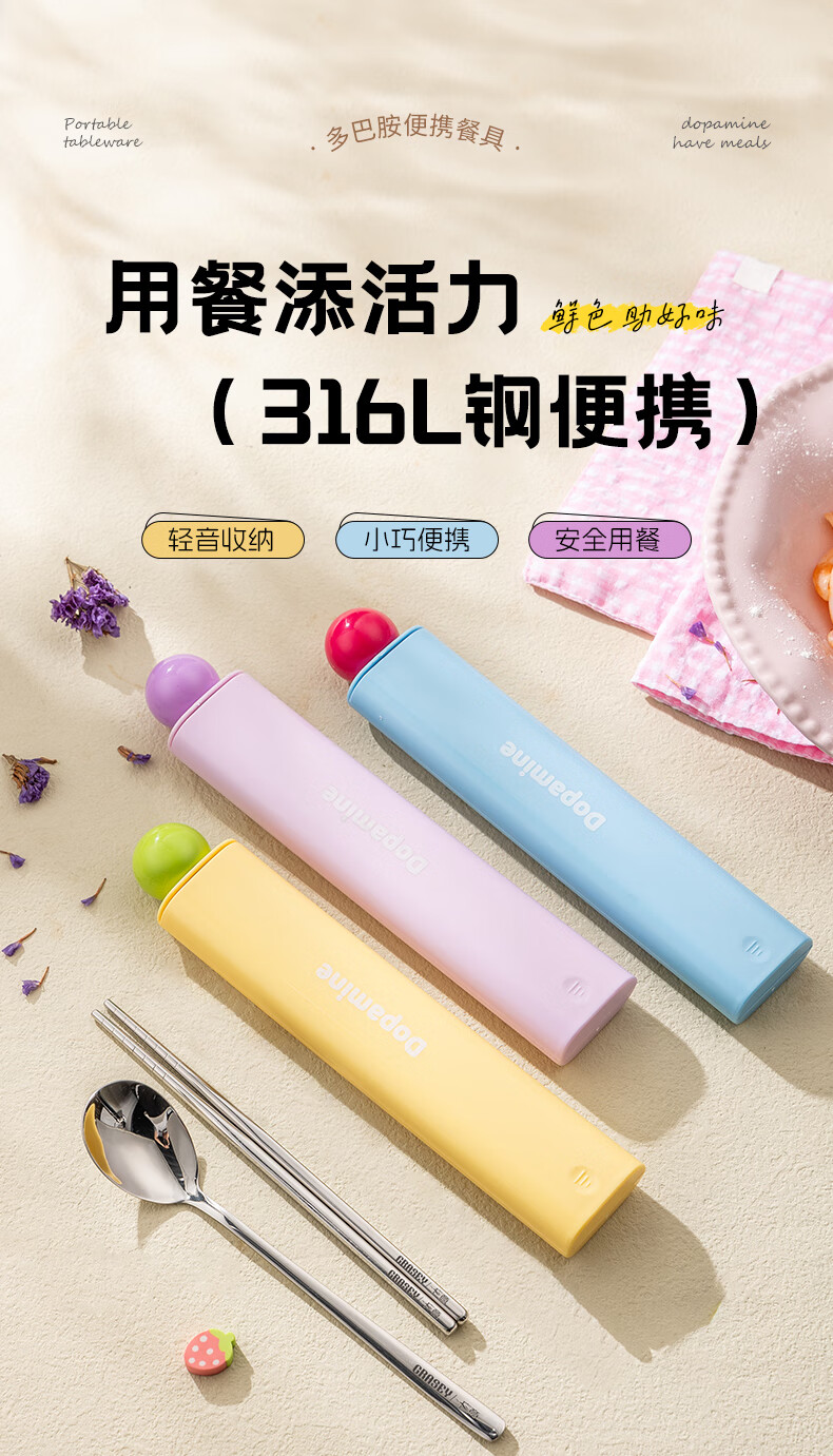广意316L不锈钢便携餐具高颜值上班专用筷子勺子套装学生便携餐具套盒 316L多巴胺勺筷套装【蓝色】