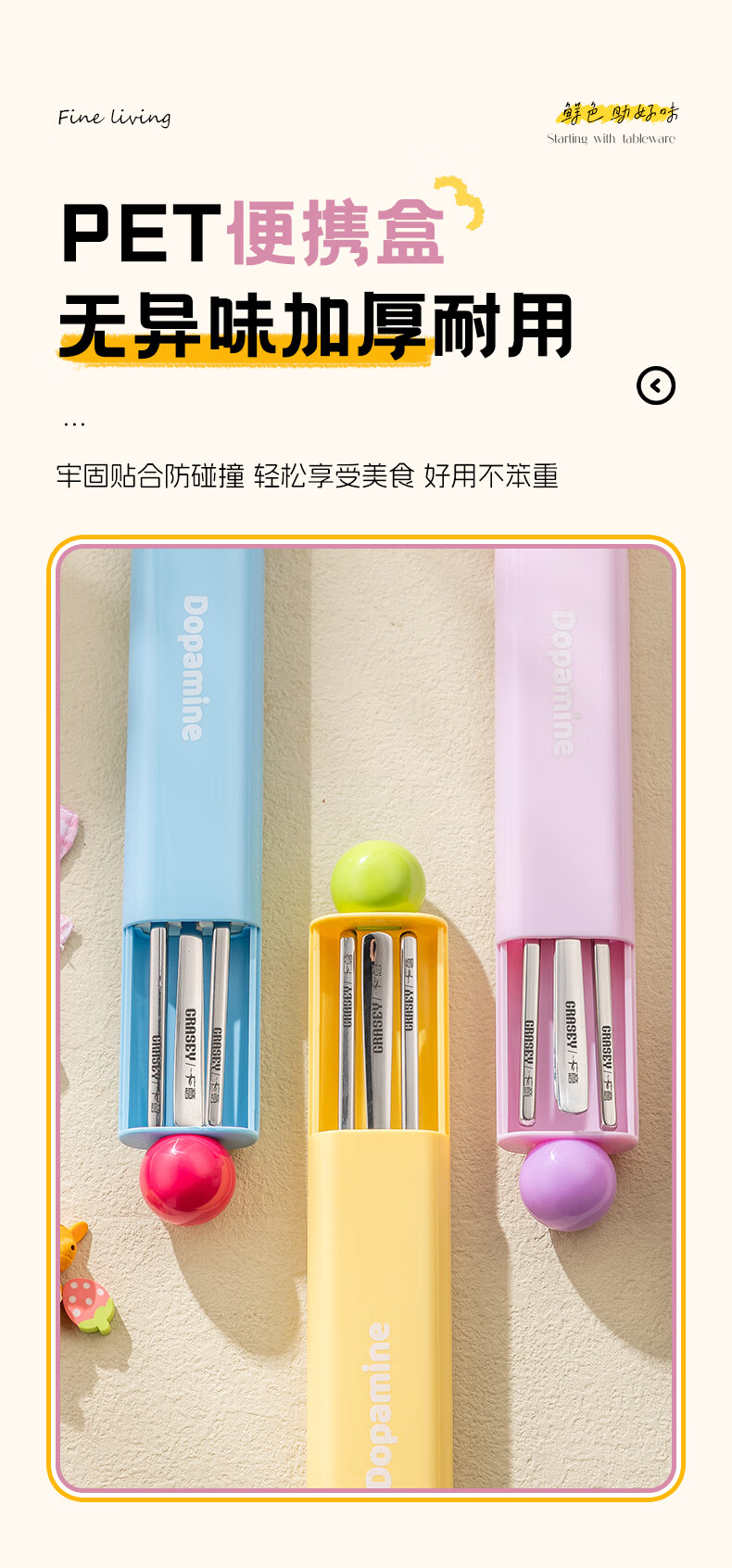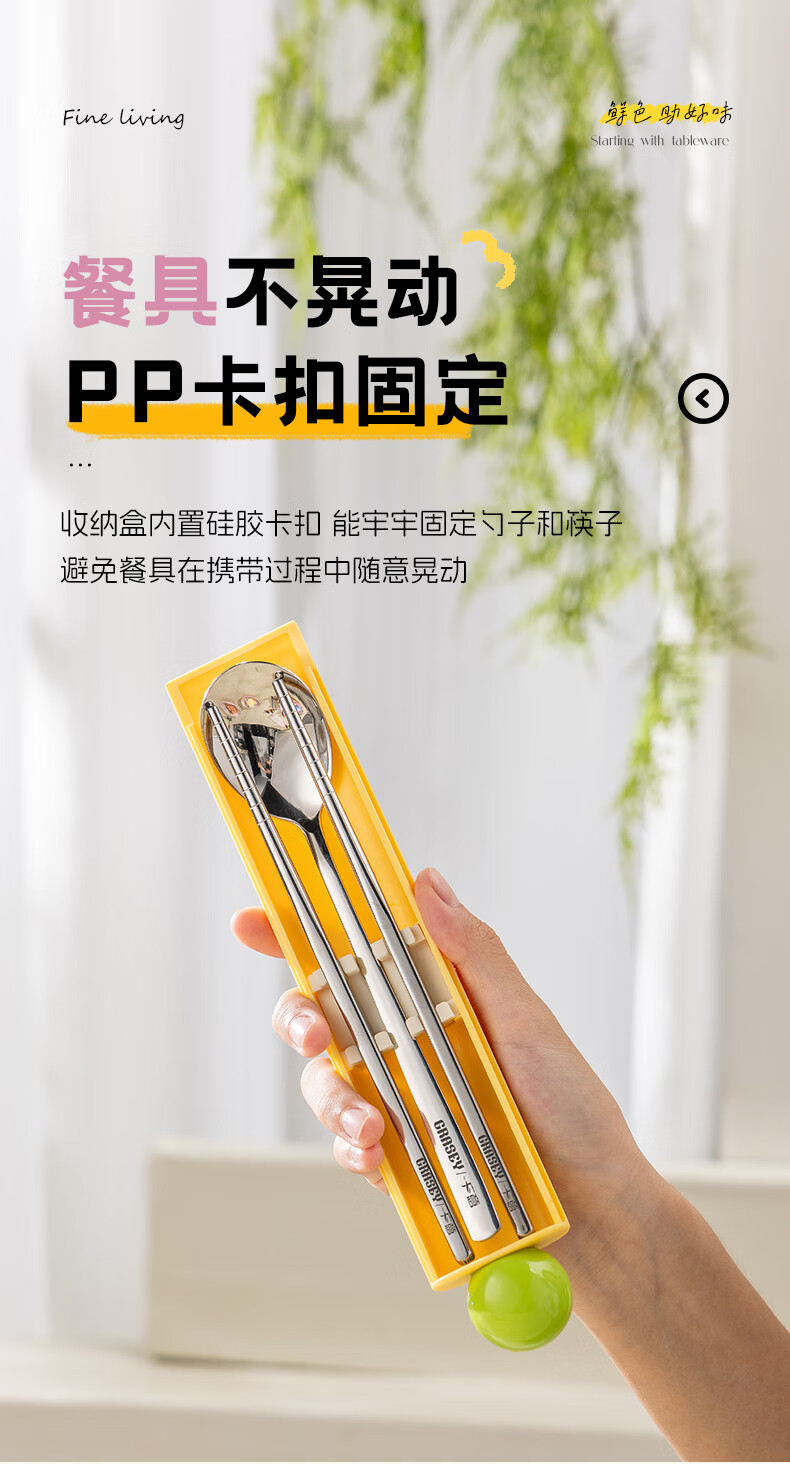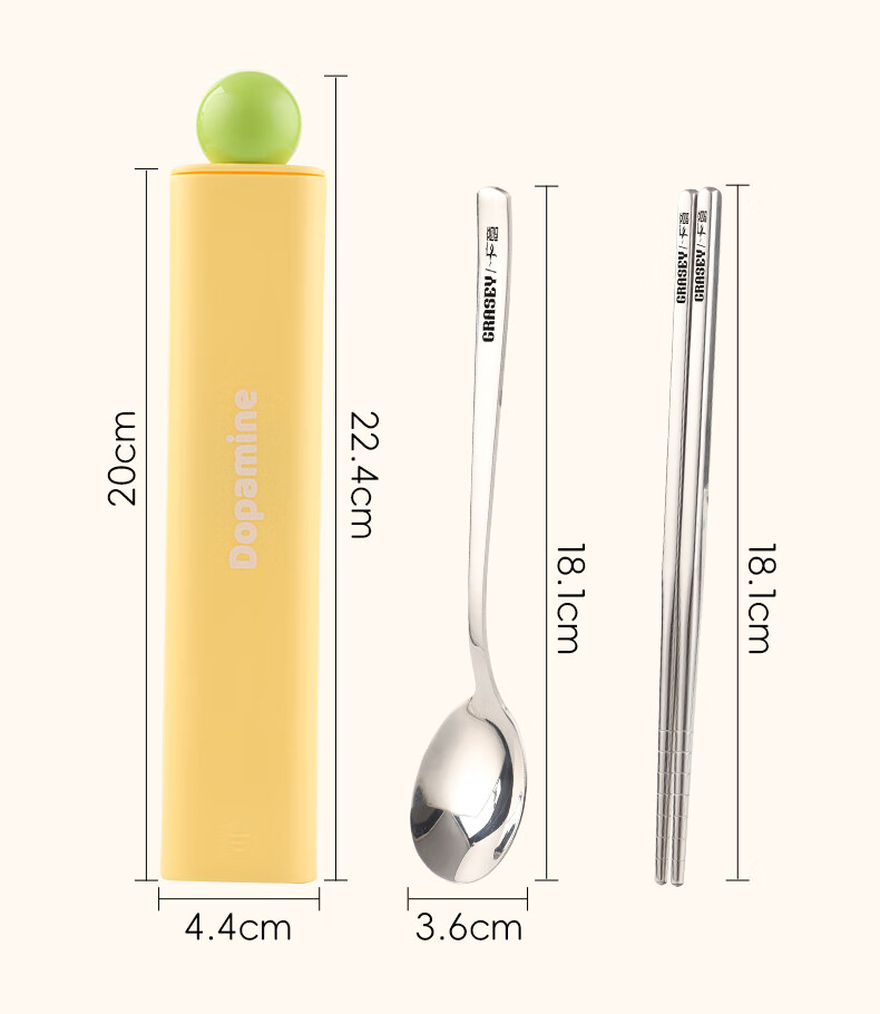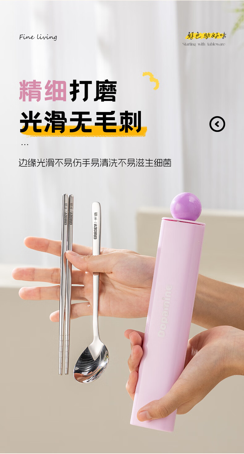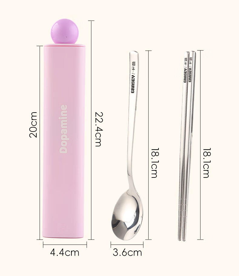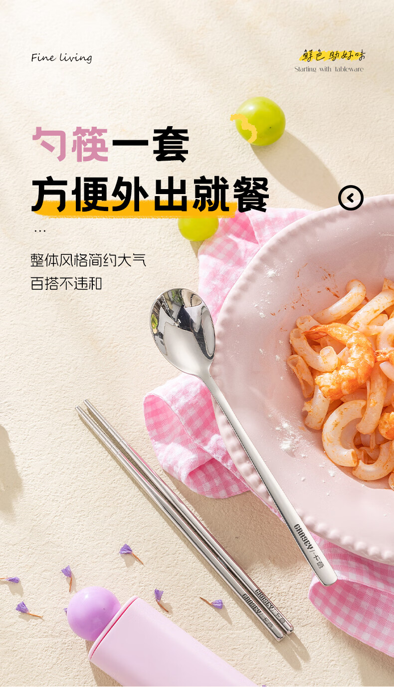 广意316L不锈钢便携餐具高颜值上班专用筷子勺子套装学生便携餐具套盒 316L多巴胺勺筷套装【蓝色】