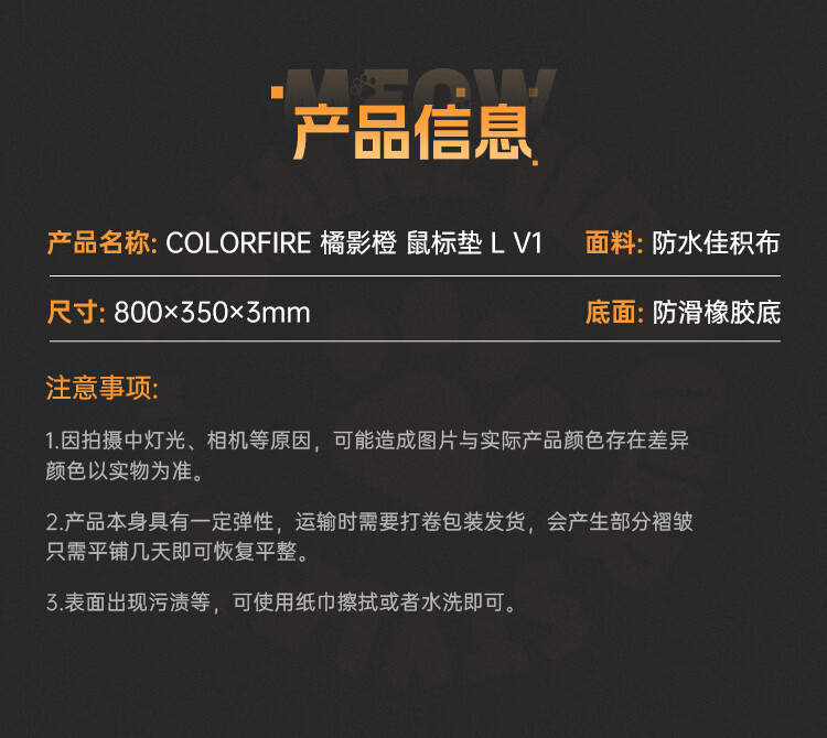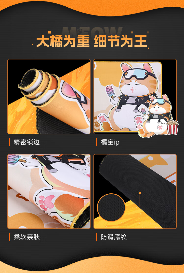 七彩虹(Colorful)橘宝游戏电竞鼠标垫 电脑办公学生超大号书桌垫子键盘垫 竞技fps专用加厚耐磨防水防滑精密锁边 橘宝 800*350*3mm