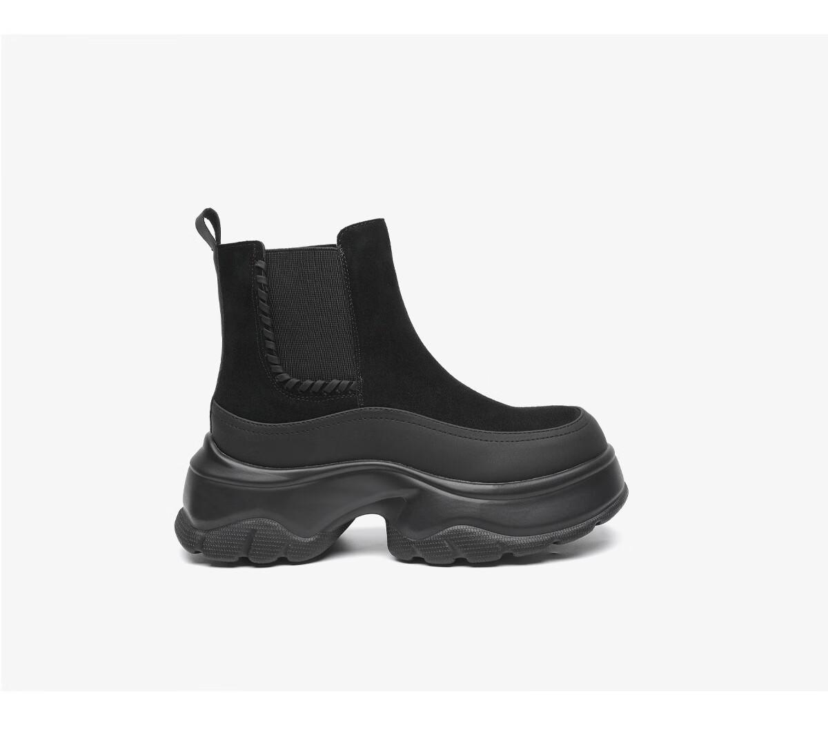 莱尔斯丹2025秋冬新款粗跟舒适高级感脚踝短靴子女靴54702 黑色BKK 36