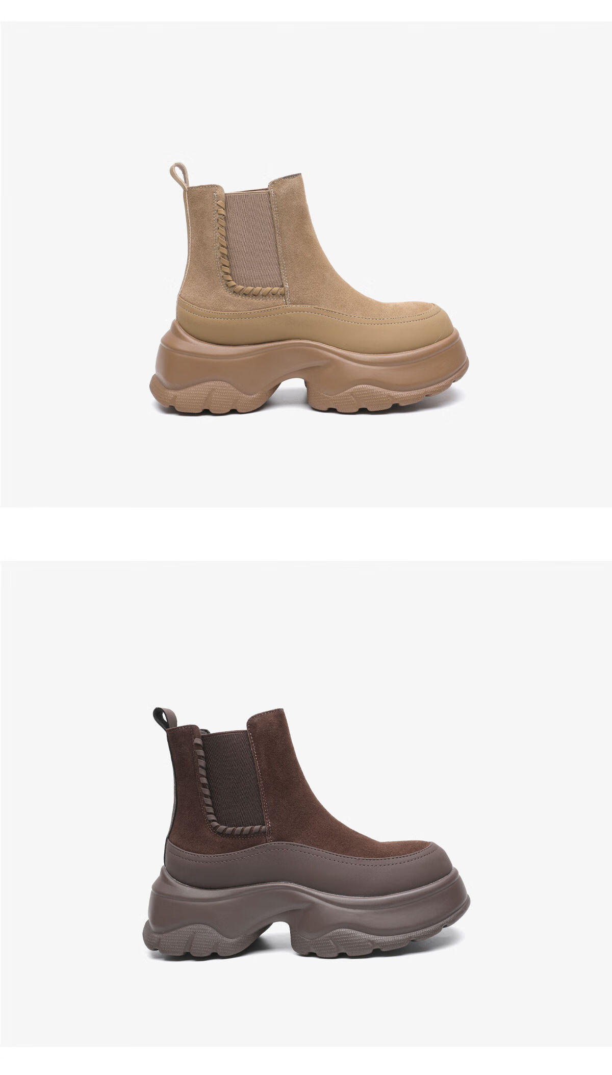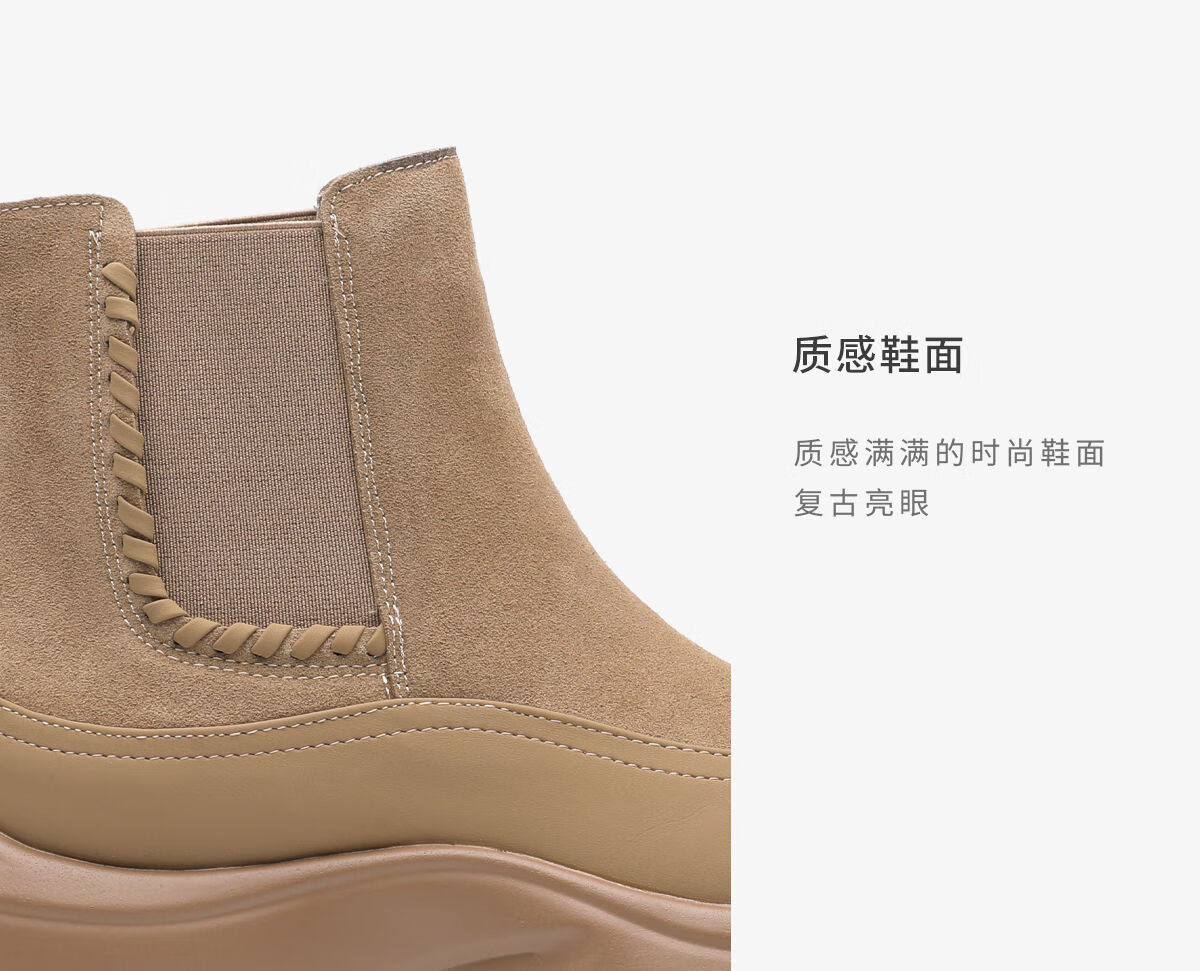 百思图26春厚底勃肯鞋休闲一脚蹬女懒人单鞋D3787AM6 杏色绒里 39