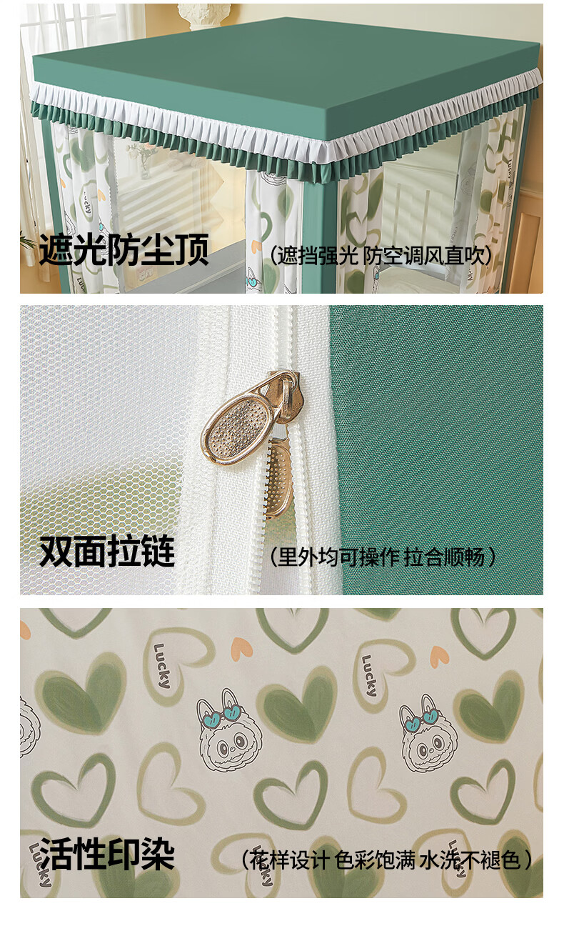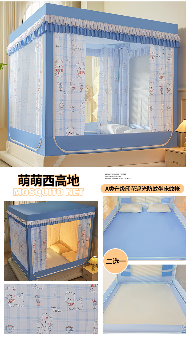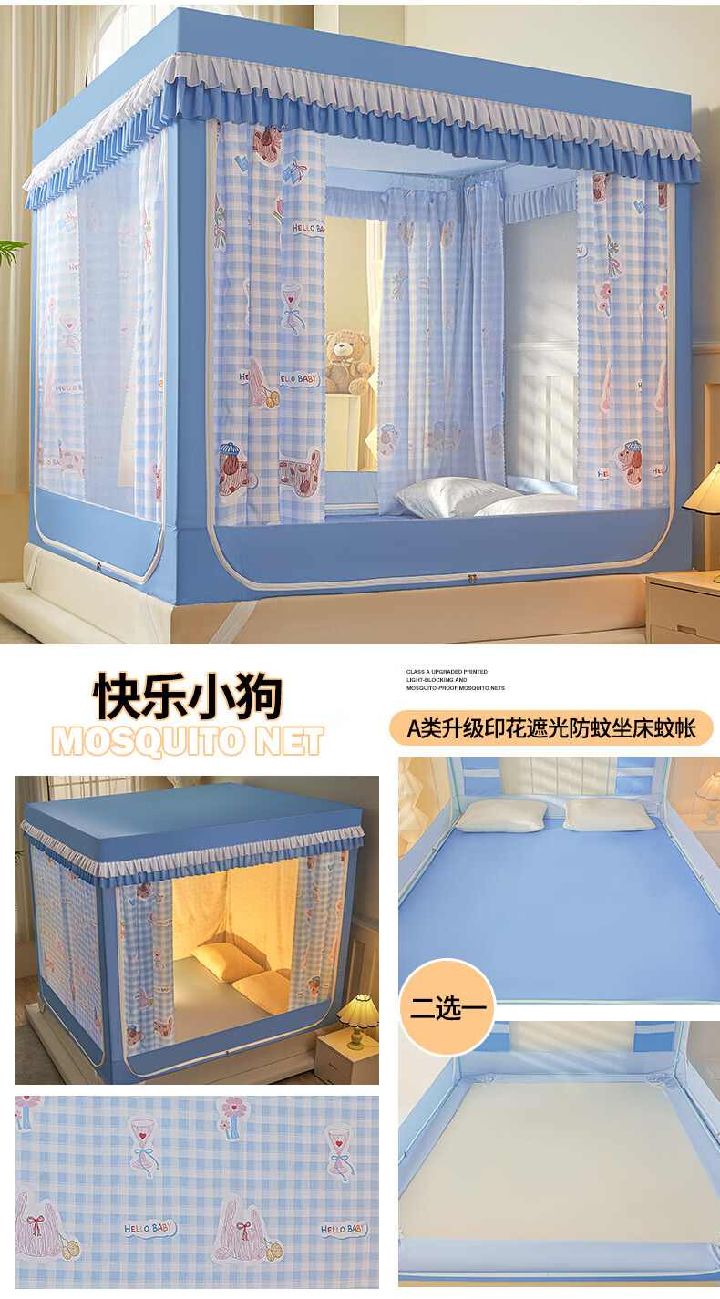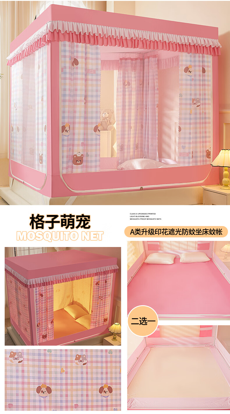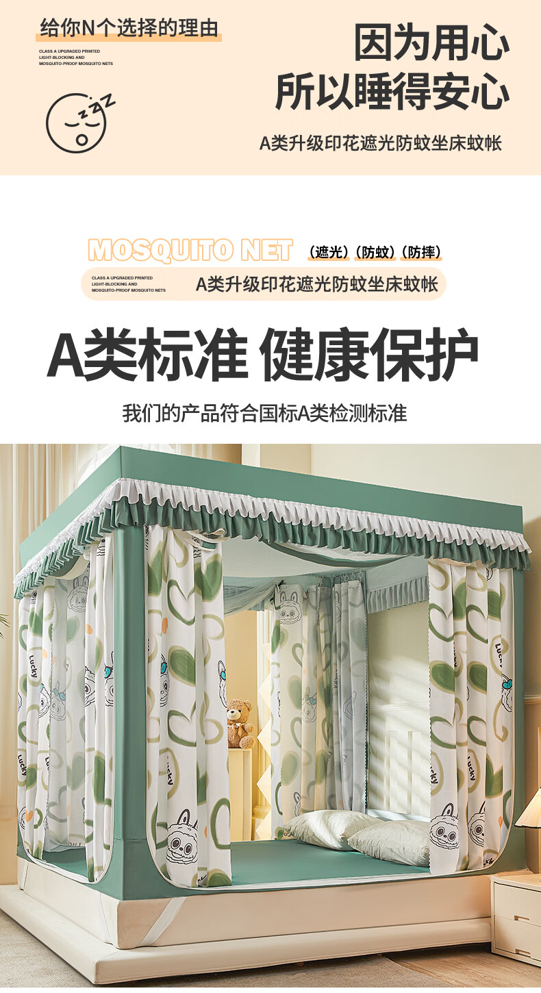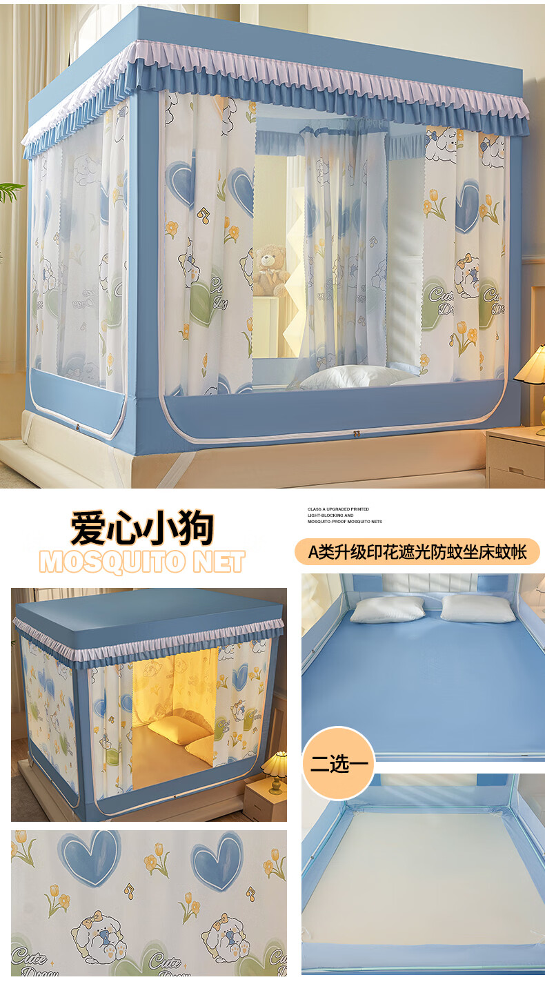 无印良品A类儿童防摔蚊帐1.8x2米家用卧室全遮光蚊帐防摔婴儿床围栏一体式 【回底款】爱心酷布布-带床帘 180cm*200cm*170cm 【加厚自连接支架】