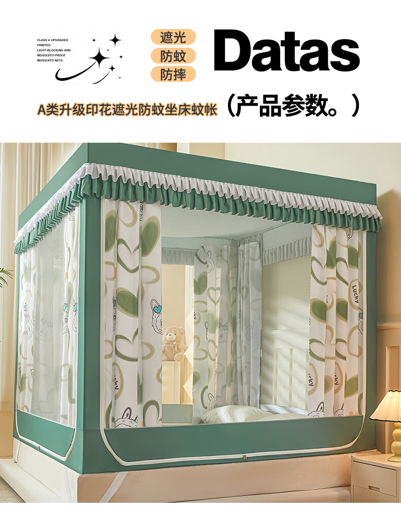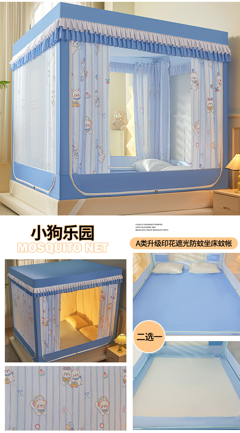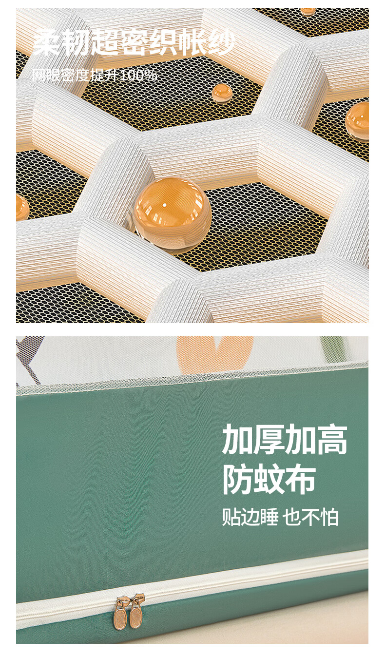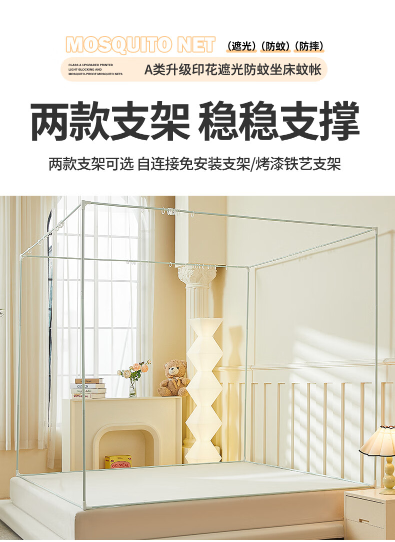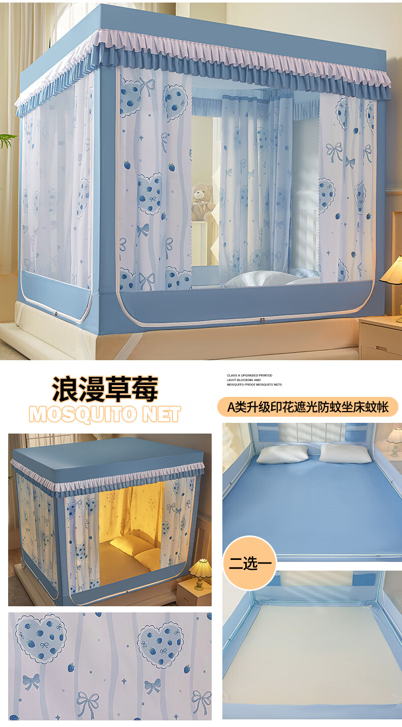 无印良品A类儿童防摔蚊帐1.8x2米家用卧室全遮光蚊帐防摔婴儿床围栏一体式 【回底款】爱心酷布布-带床帘 180cm*200cm*170cm 【加厚自连接支架】