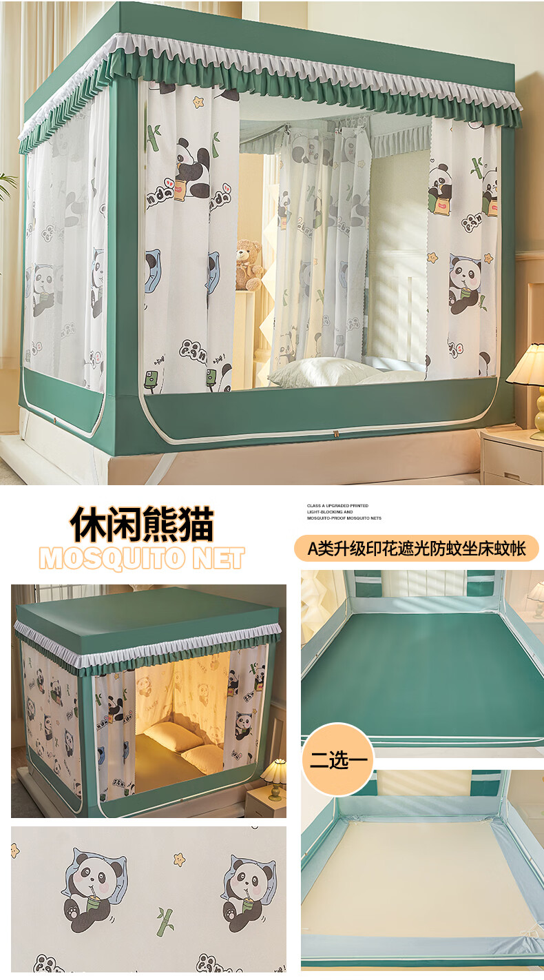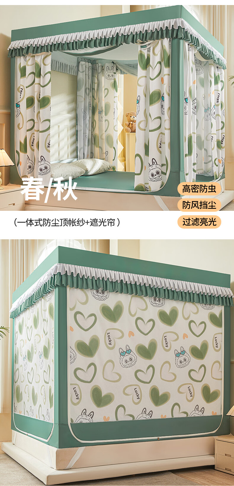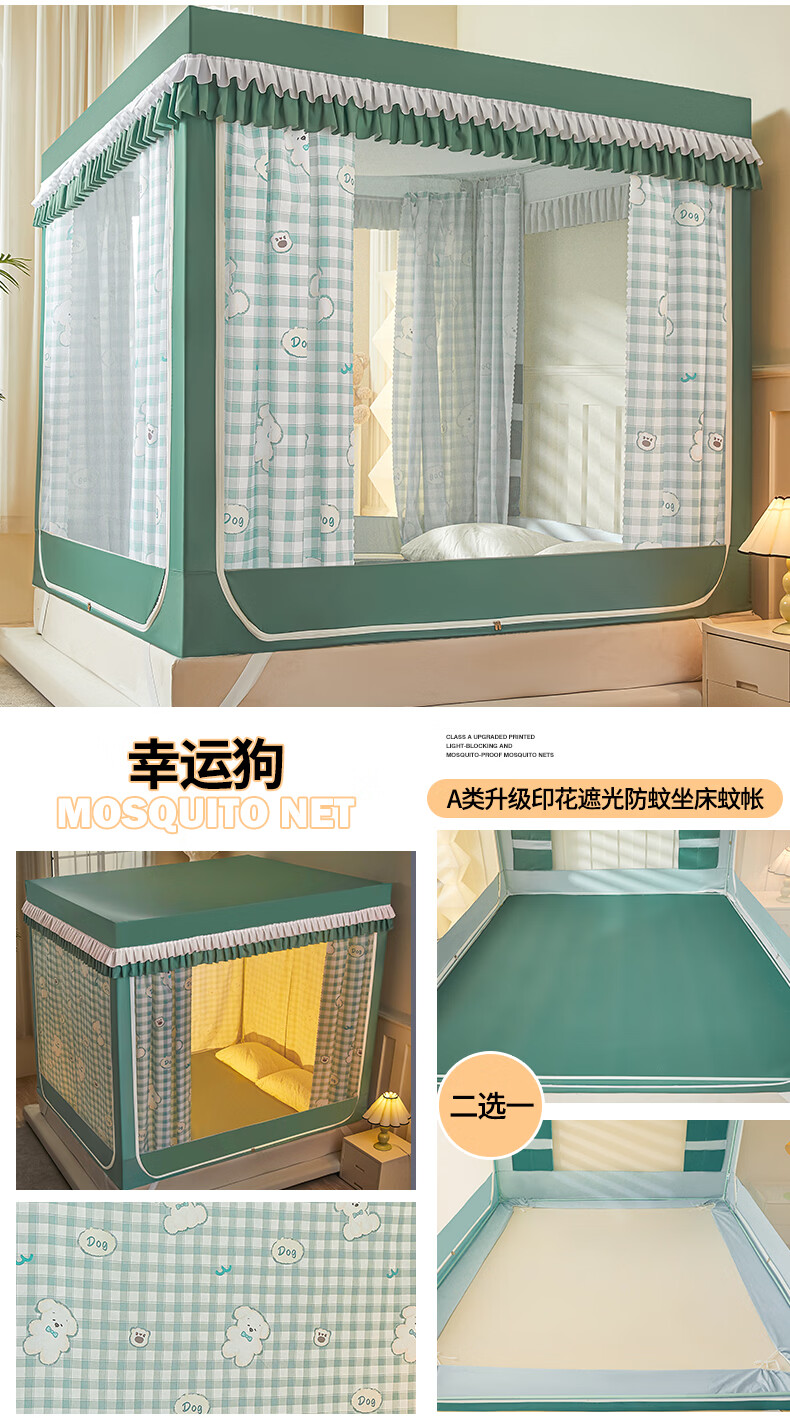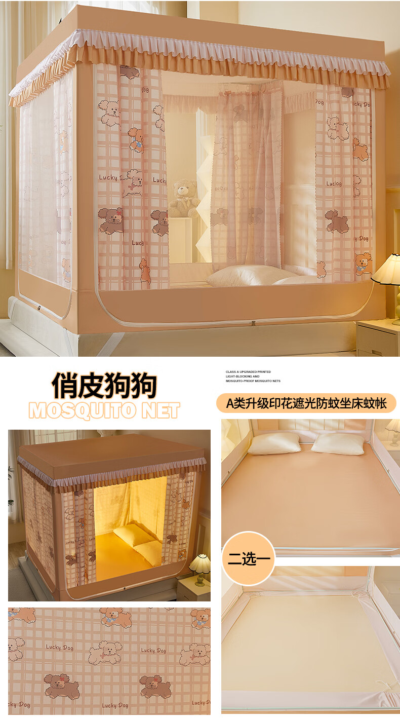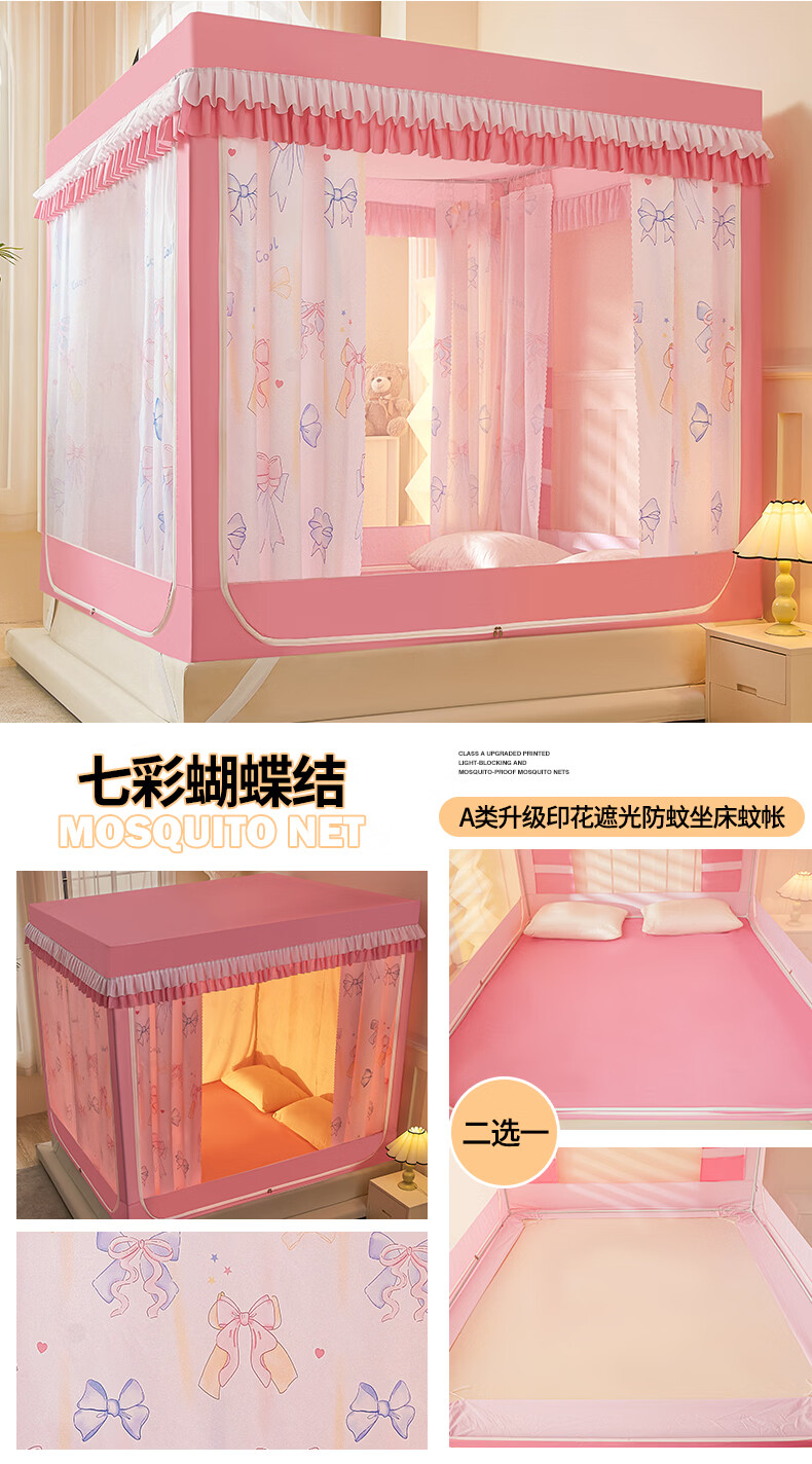 无印良品A类儿童防摔蚊帐1.8x2米家用卧室全遮光蚊帐防摔婴儿床围栏一体式 【回底款】爱心酷布布-带床帘 180cm*200cm*170cm 【加厚自连接支架】