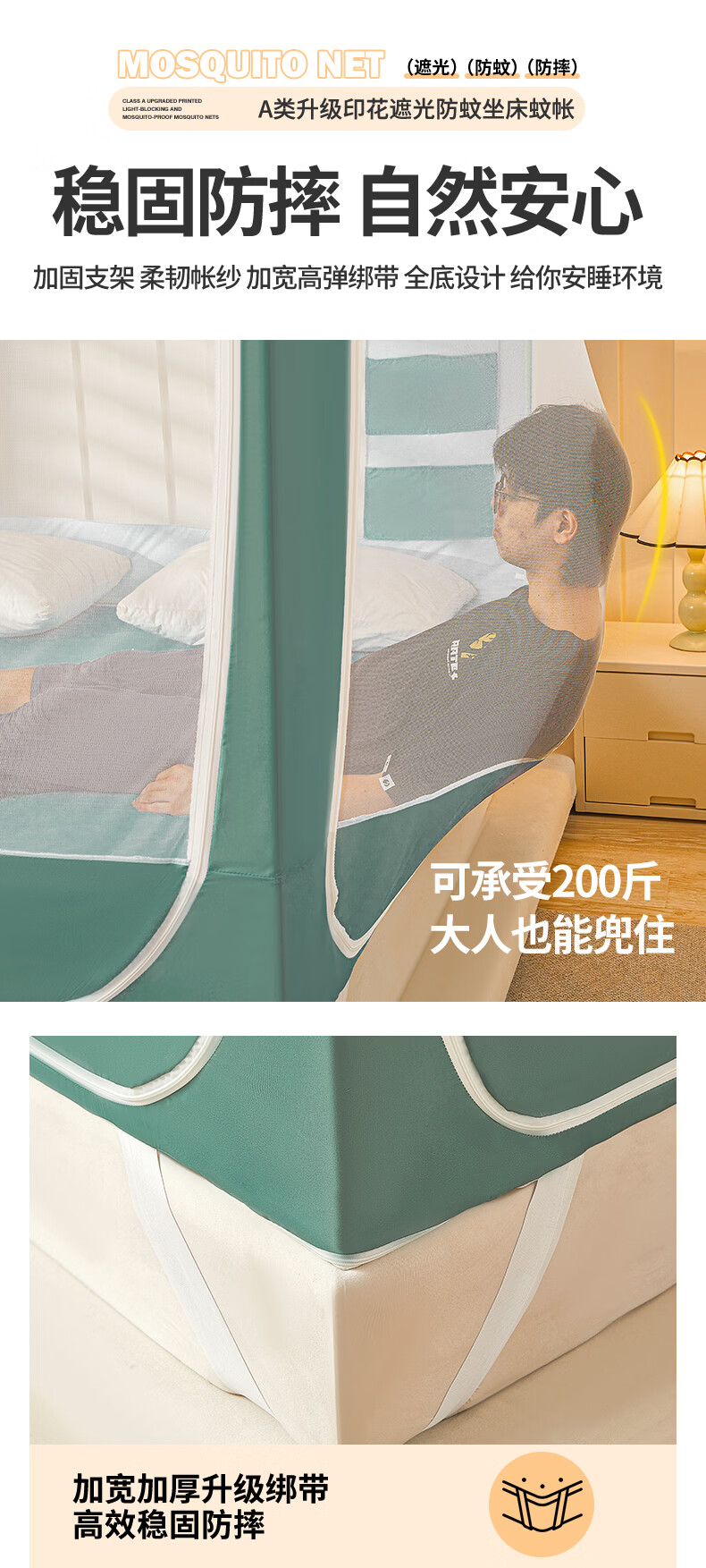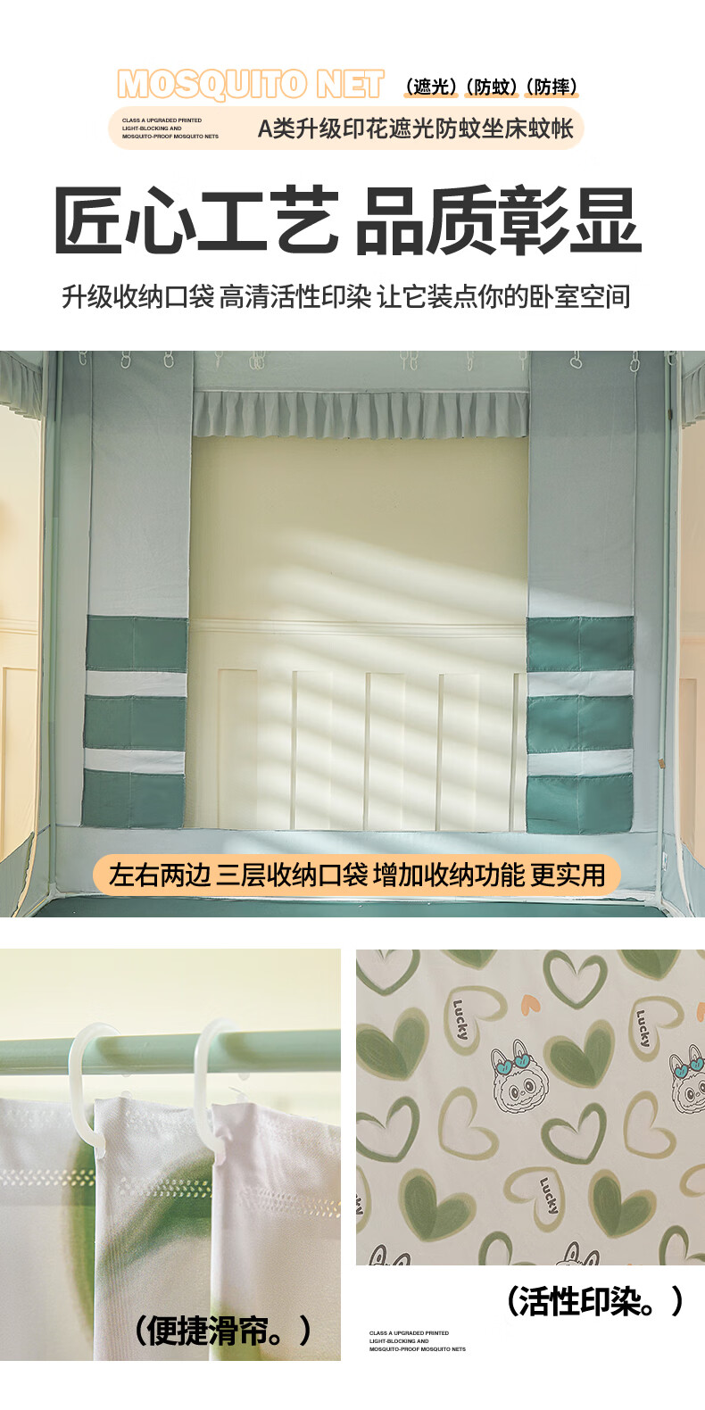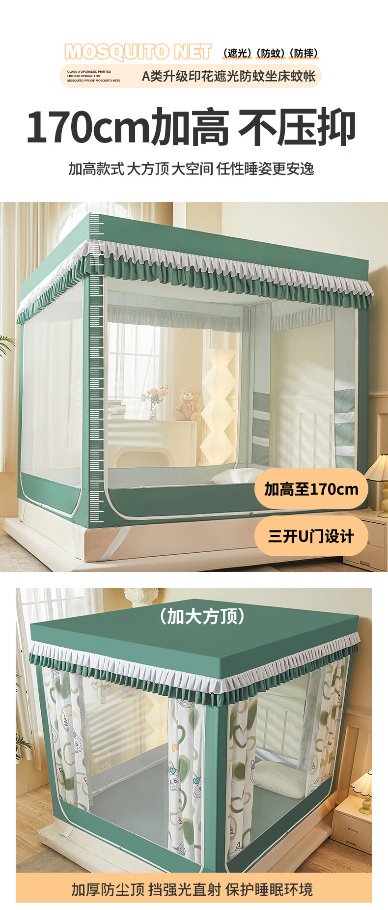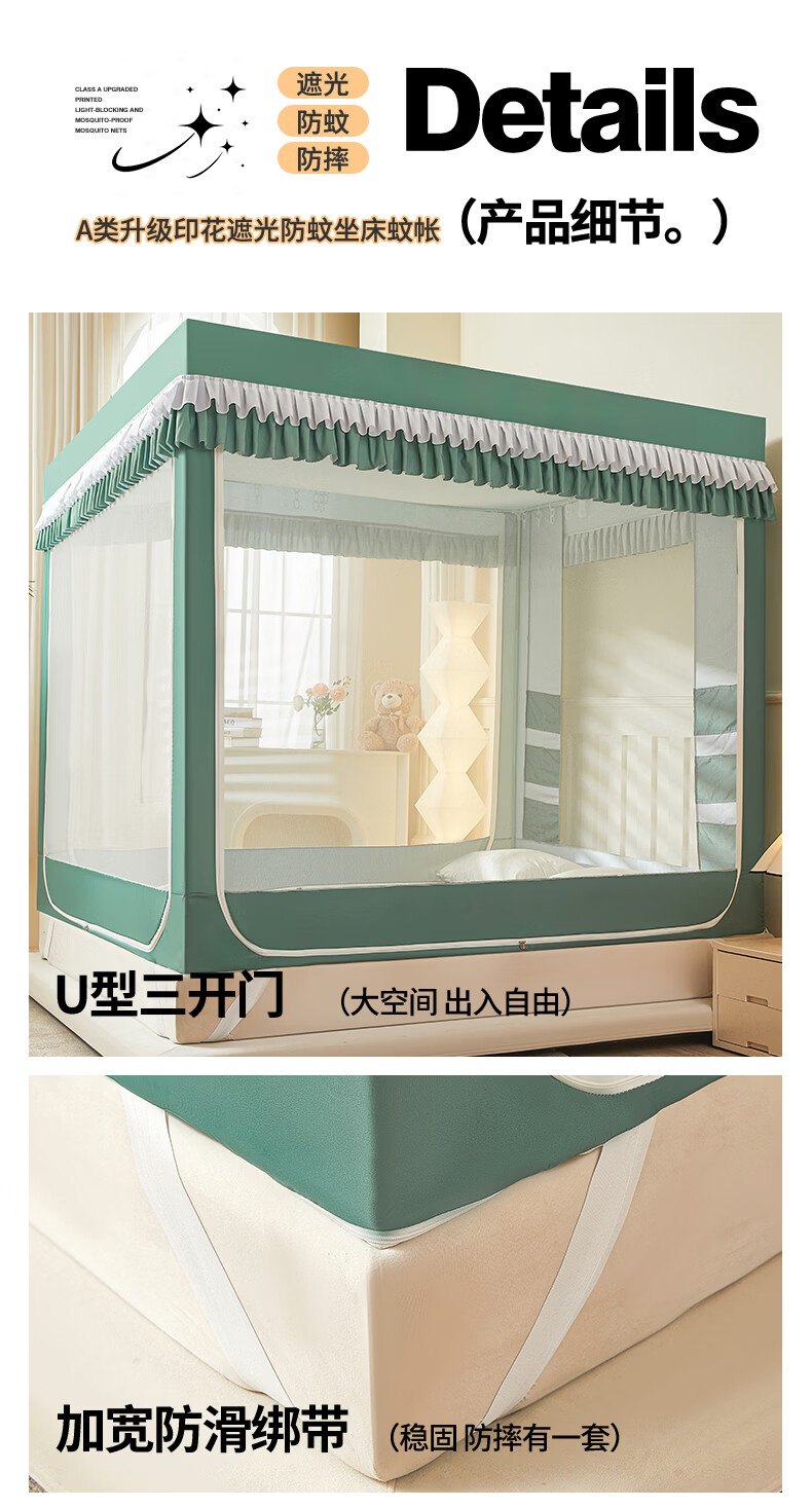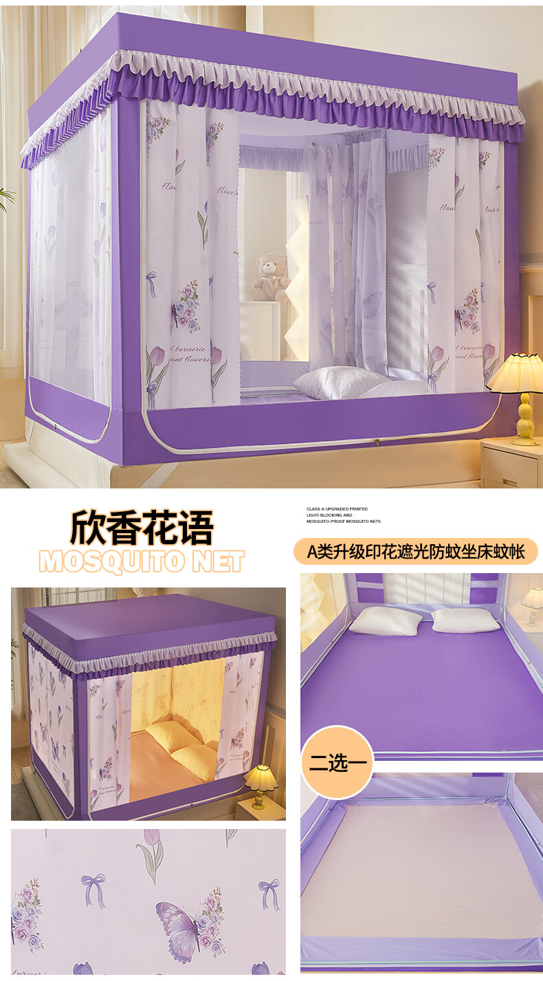 无印良品A类儿童防摔蚊帐1.8x2米家用卧室全遮光蚊帐防摔婴儿床围栏一体式 【回底款】爱心酷布布-带床帘 180cm*200cm*170cm 【加厚自连接支架】