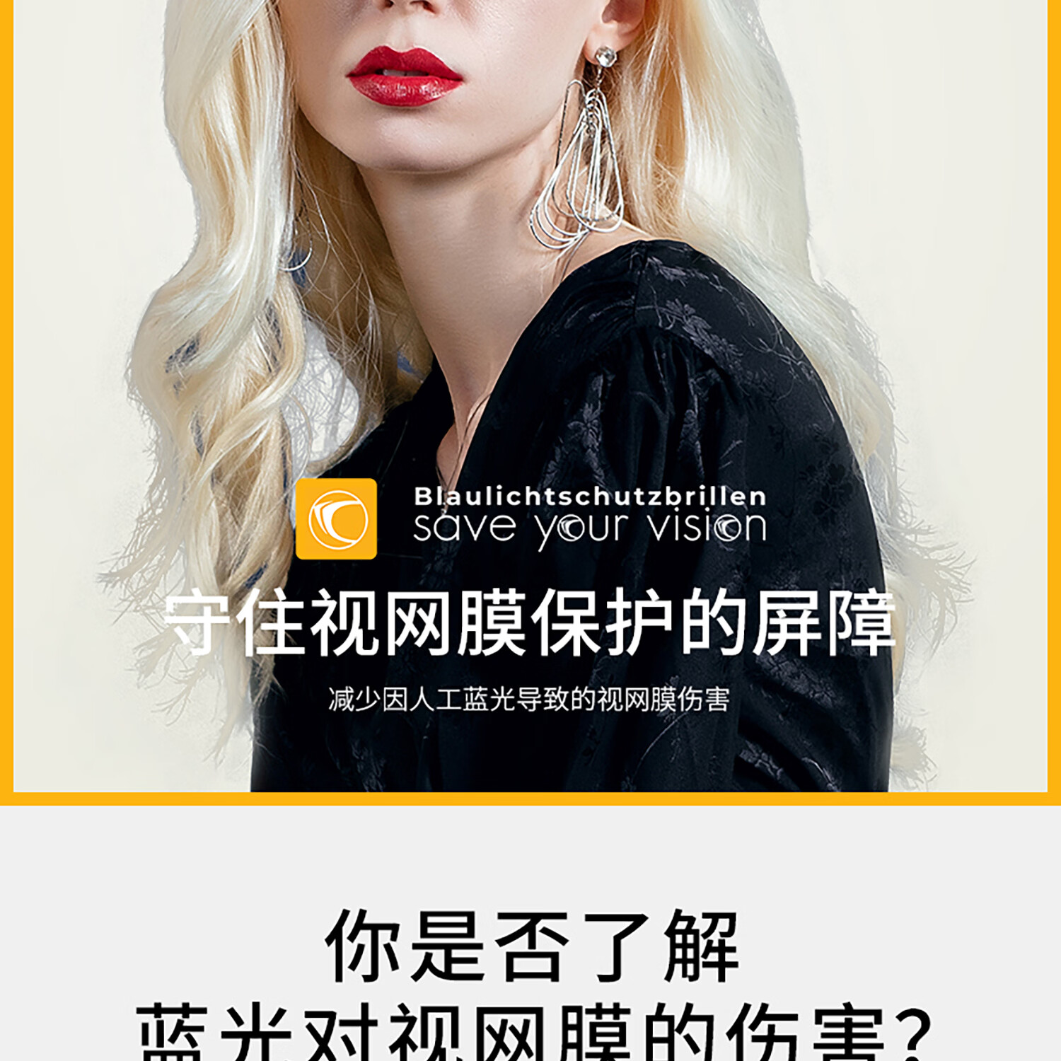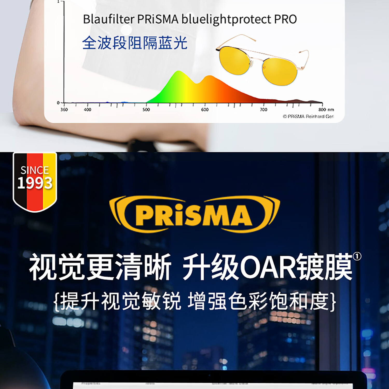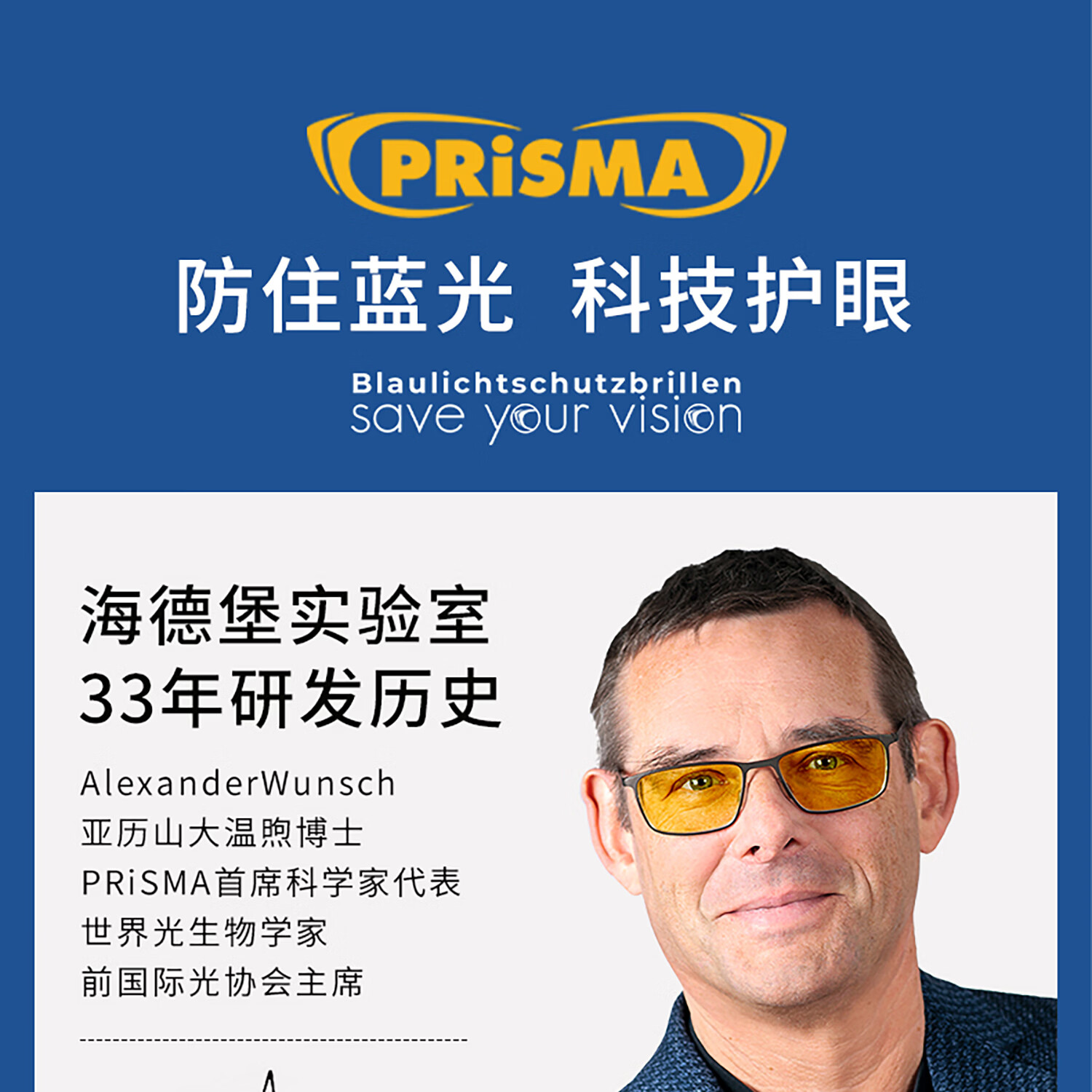prisma普利索德国品牌防蓝光抗辐射手机电脑护目镜时尚女小黄镜圆框眼镜 AL640【40%防护】日常/轻度防护