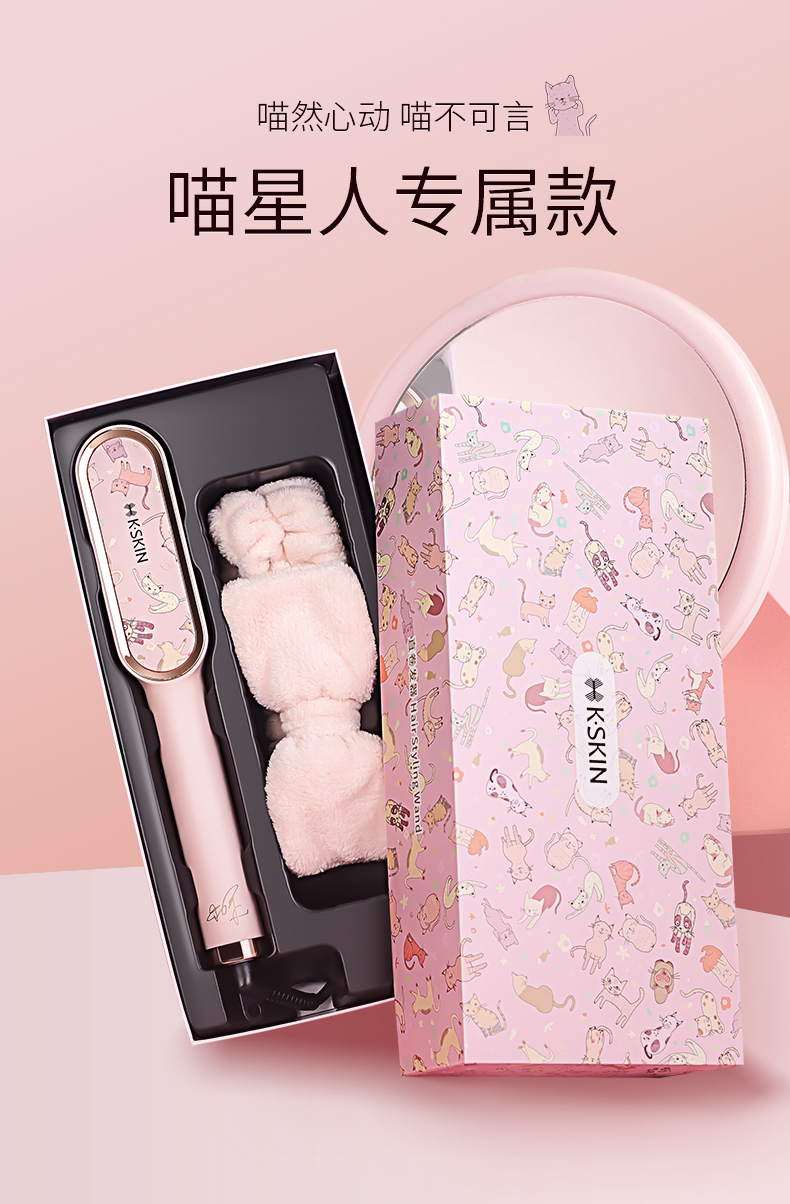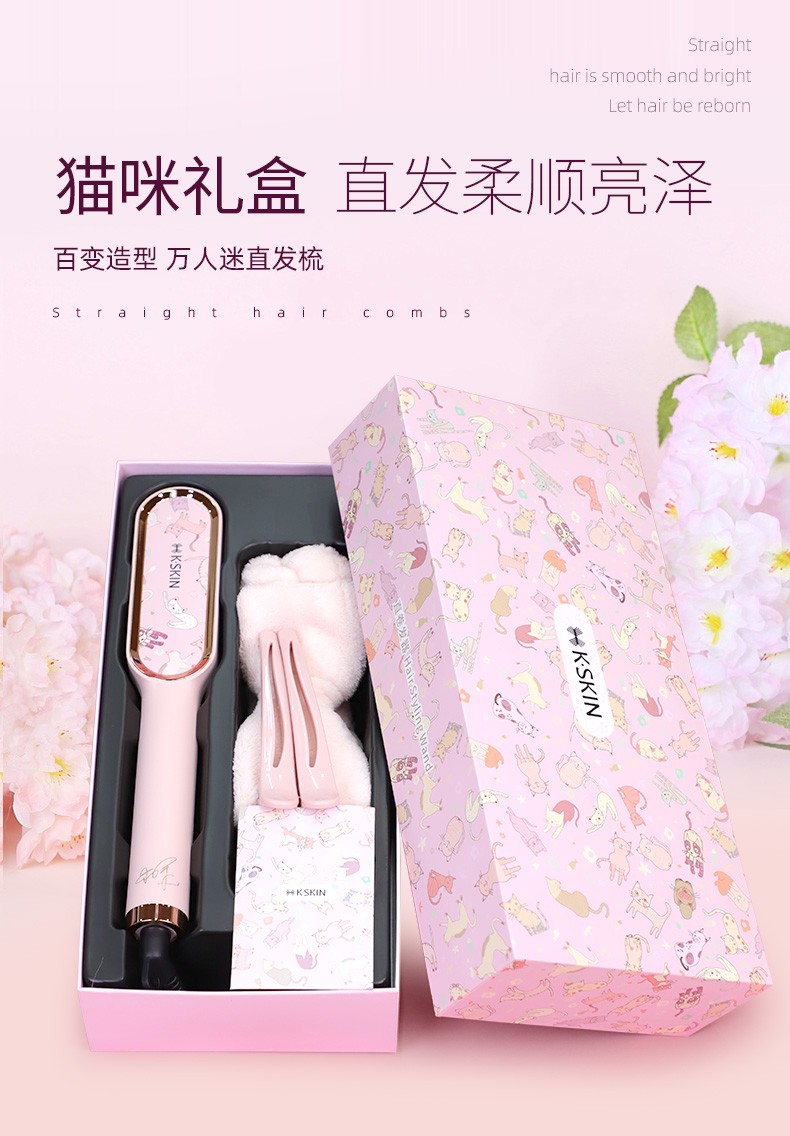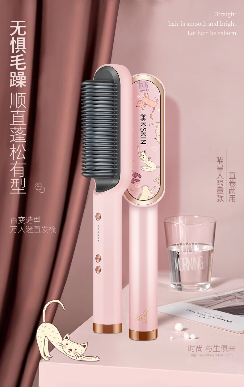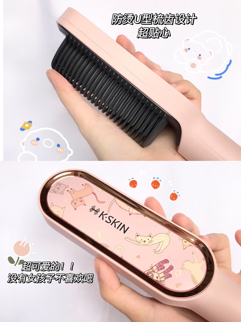 金稻直发梳神器直发棒直发器梳子卷直两用蓬松顺发卷发梳头发定造型美发梳 送女友生日礼物 KD380猫咪单品 30mm