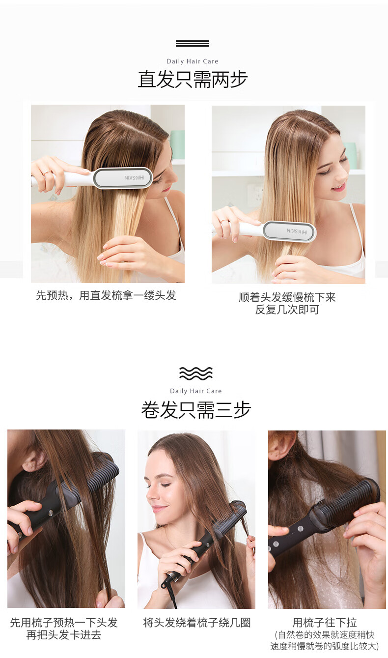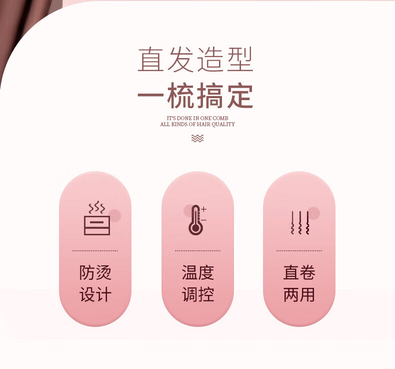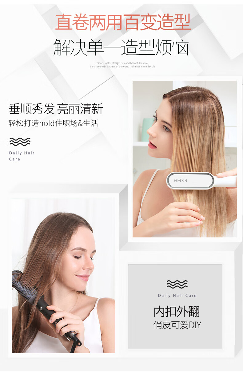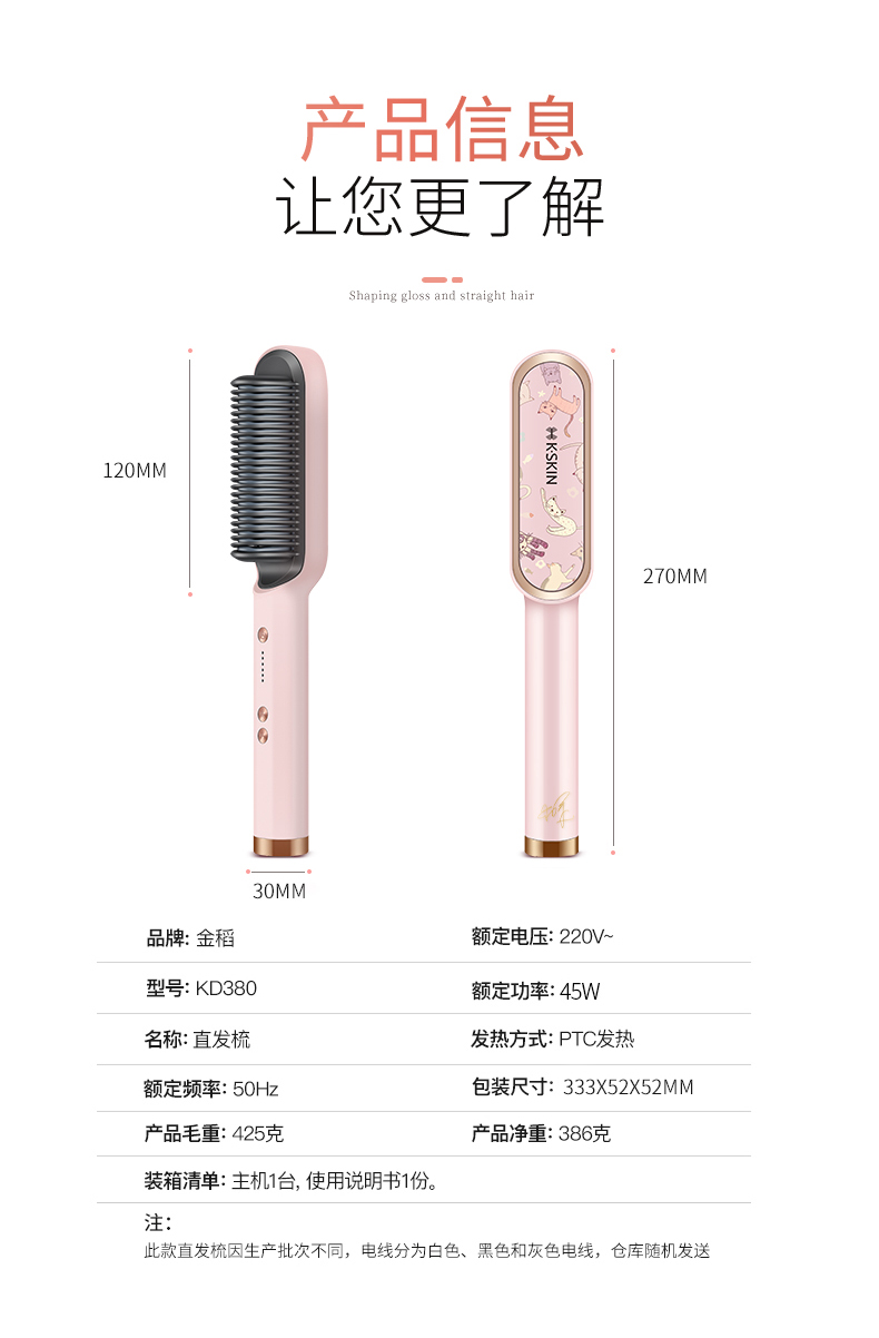 金稻直发梳神器直发棒直发器梳子卷直两用蓬松顺发卷发梳头发定造型美发梳 送女友生日礼物 KD380猫咪单品 30mm