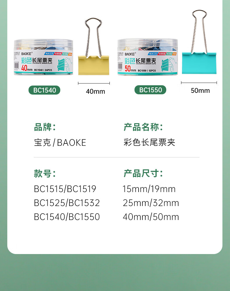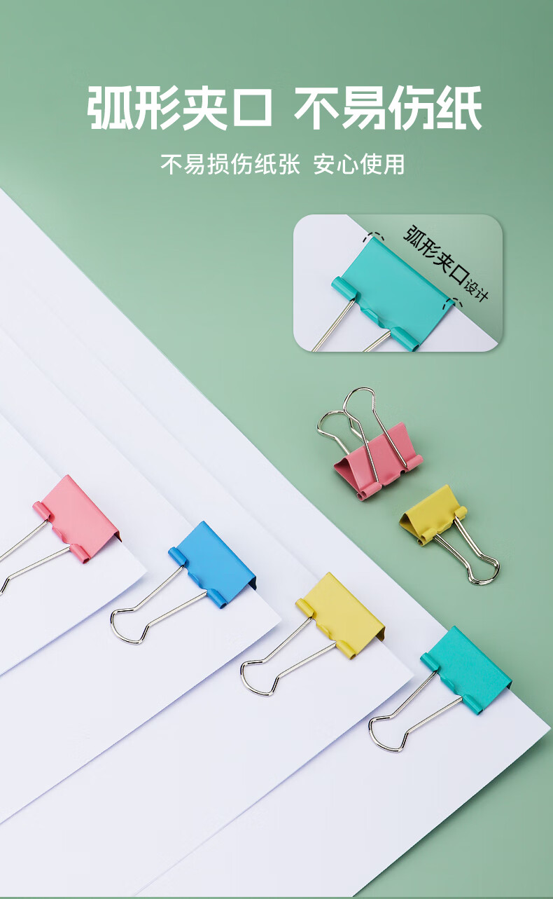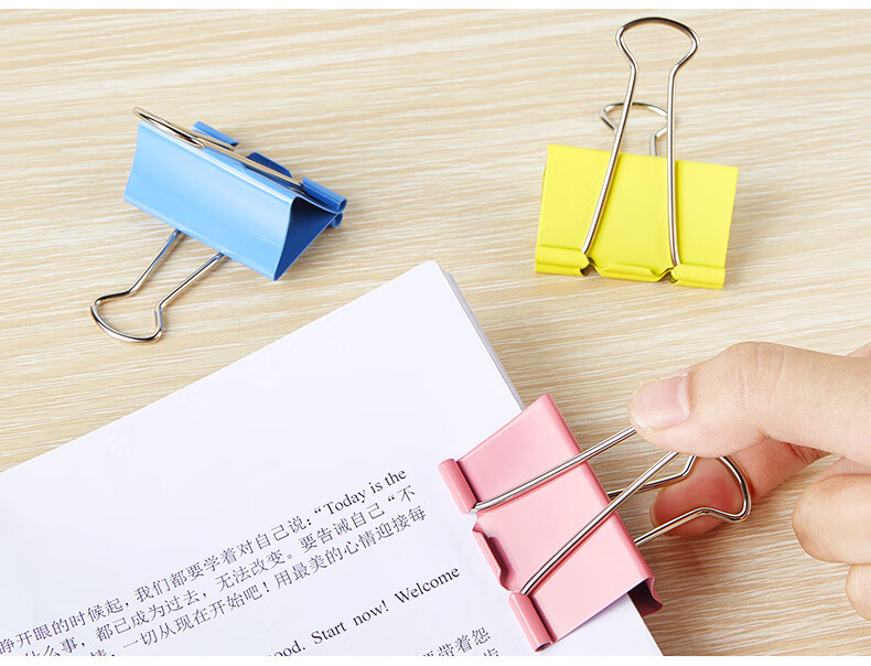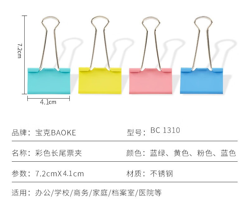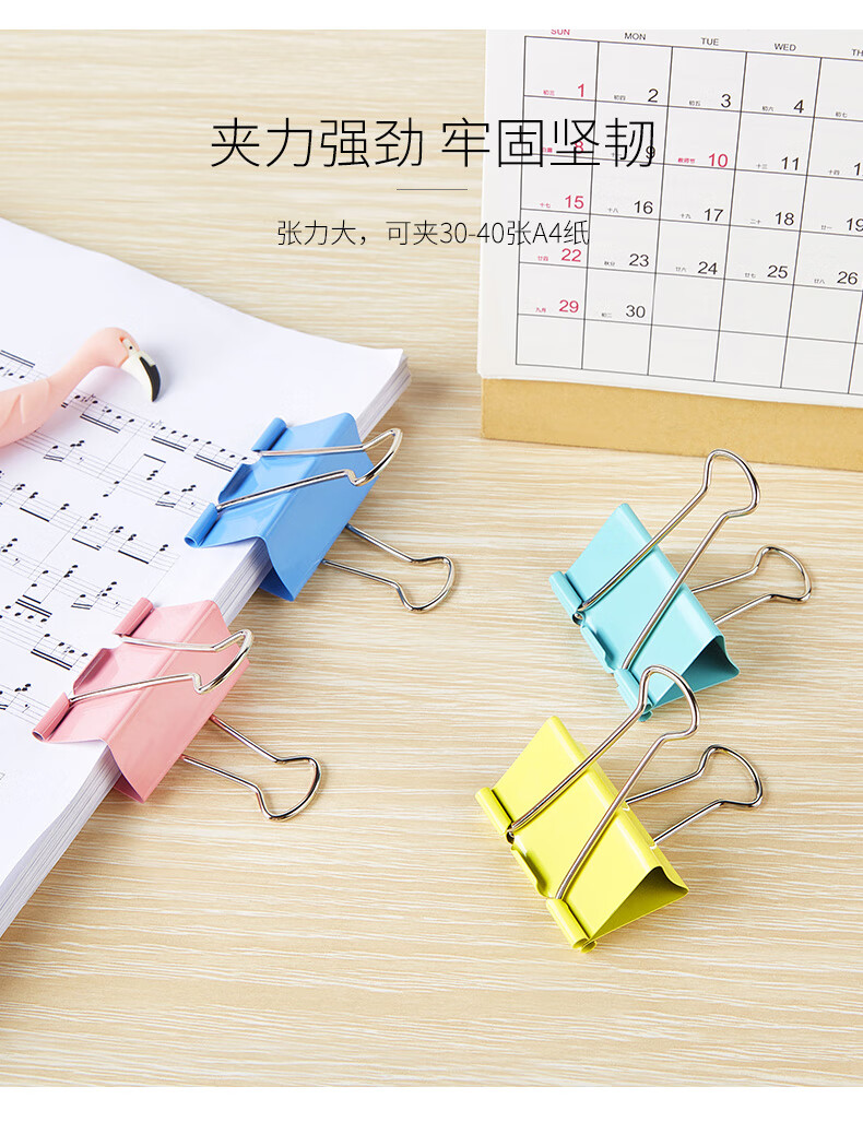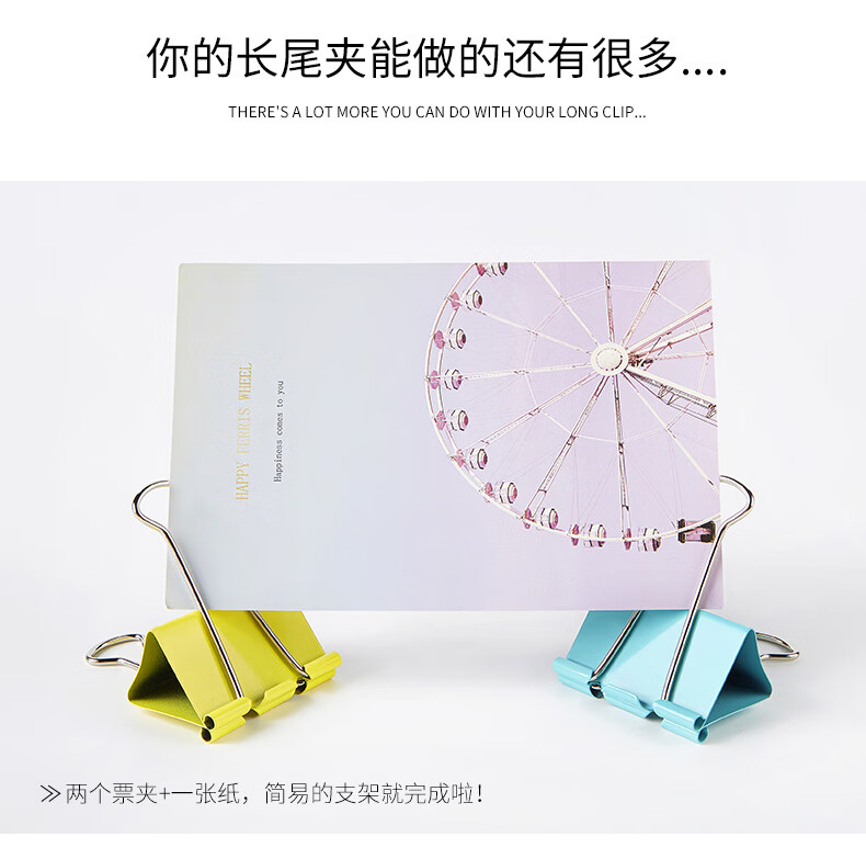 宝克(BAOKE)彩色长尾夹 金属文件夹 大中小号燕尾夹 票据夹子 学生试卷夹 办公用品 文具 【电泳工艺】彩色套装/15mm+19mm+25mm