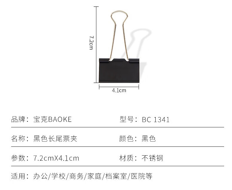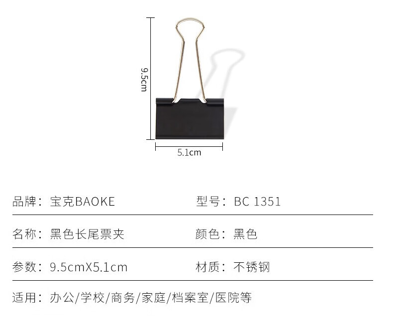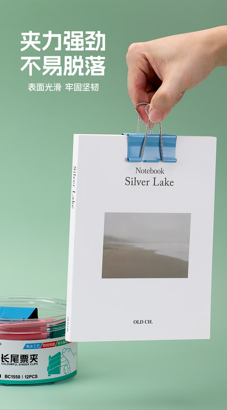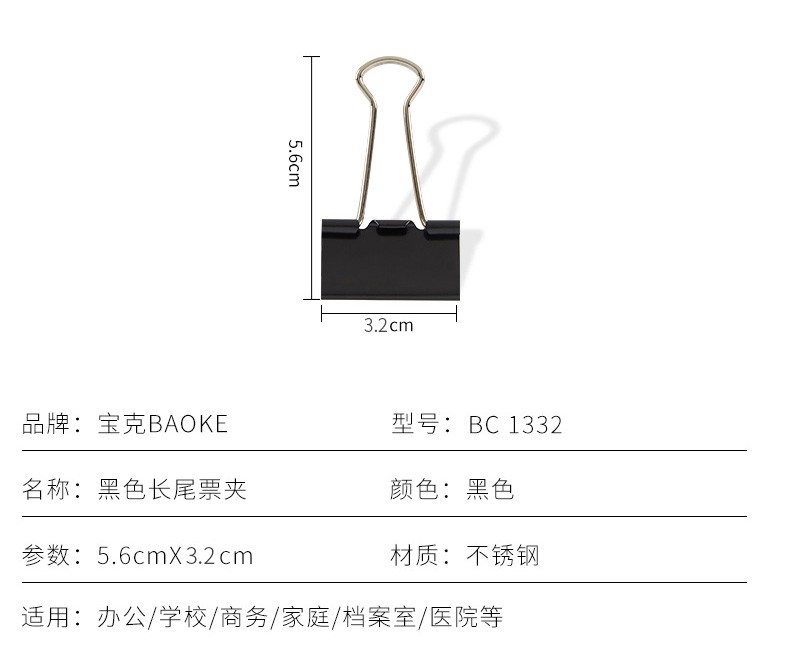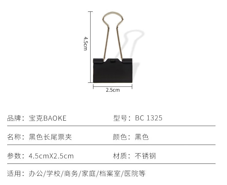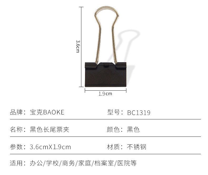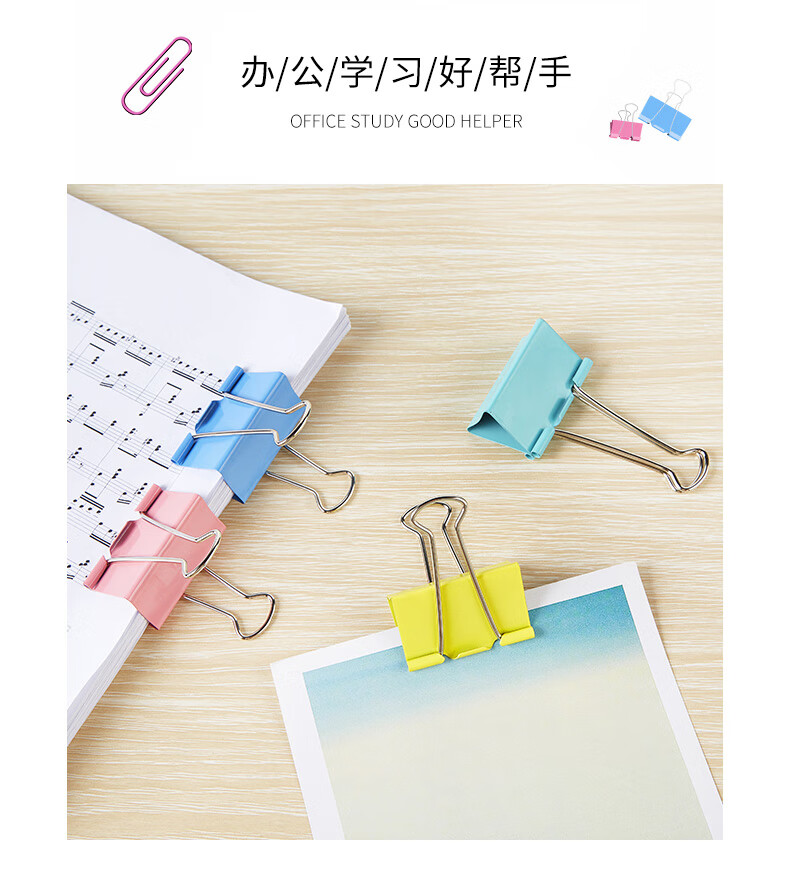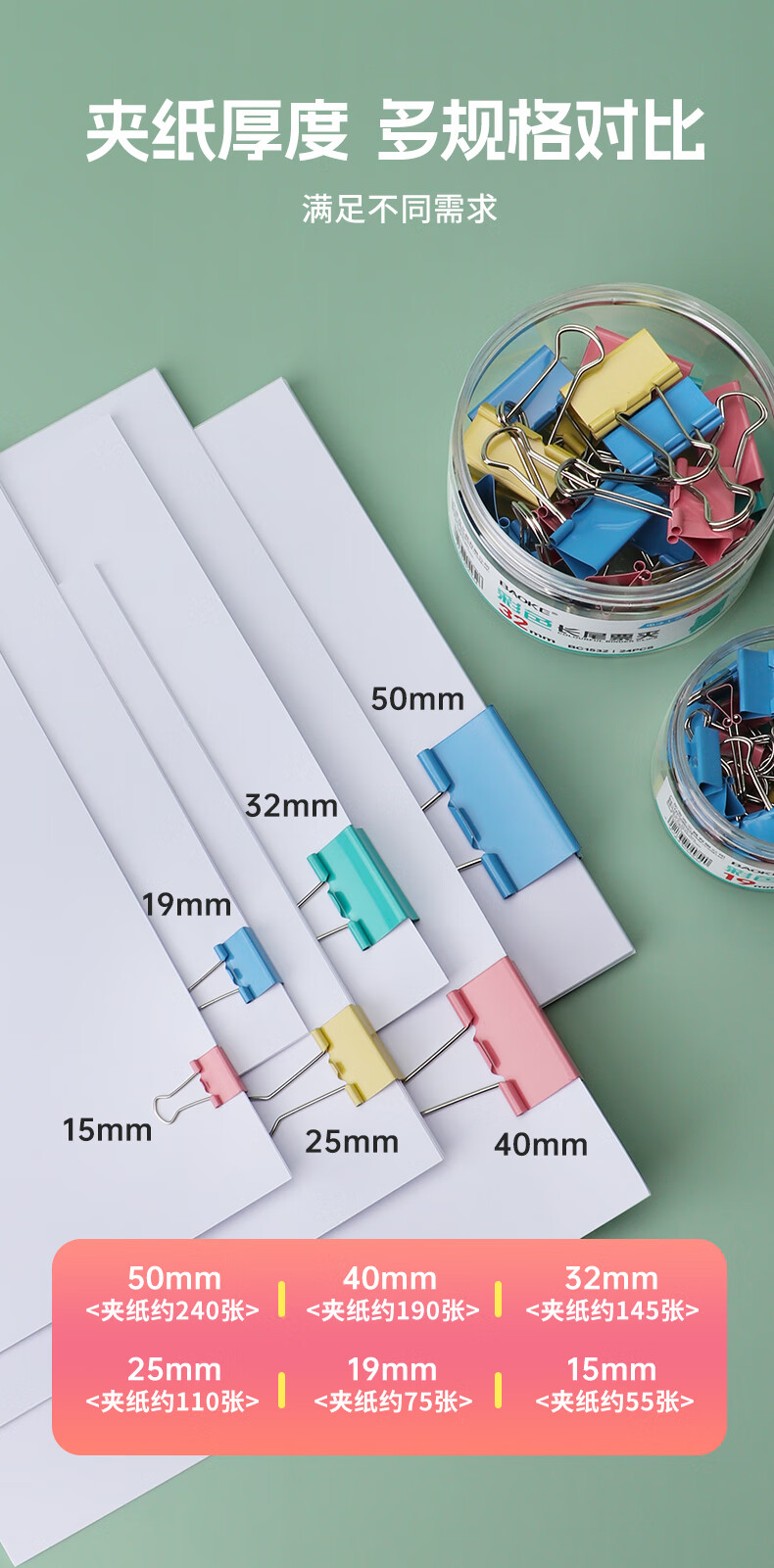 宝克(BAOKE)彩色长尾夹 金属文件夹 大中小号燕尾夹 票据夹子 学生试卷夹 办公用品 文具 【电泳工艺】彩色套装/15mm+19mm+25mm