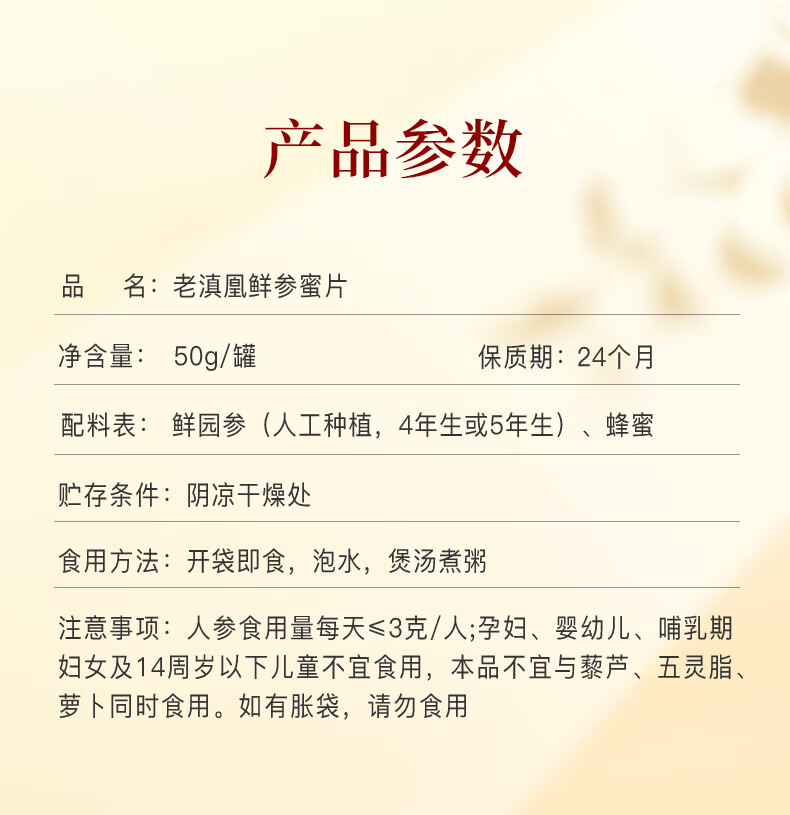老滇凰鲜参蜜片即食人参片切片长白山人参蜜片泡水蜂蜜 50g*1罐