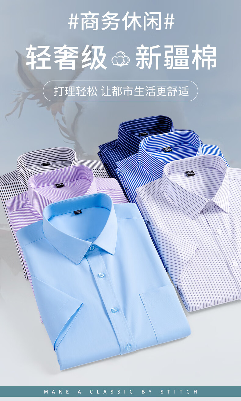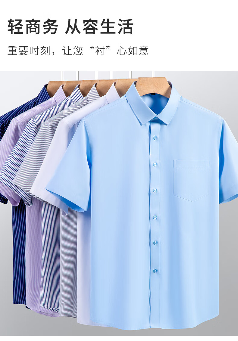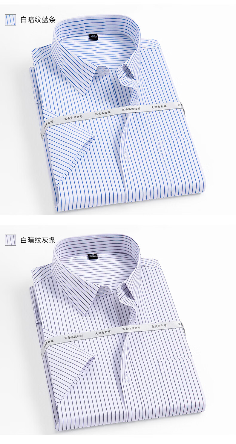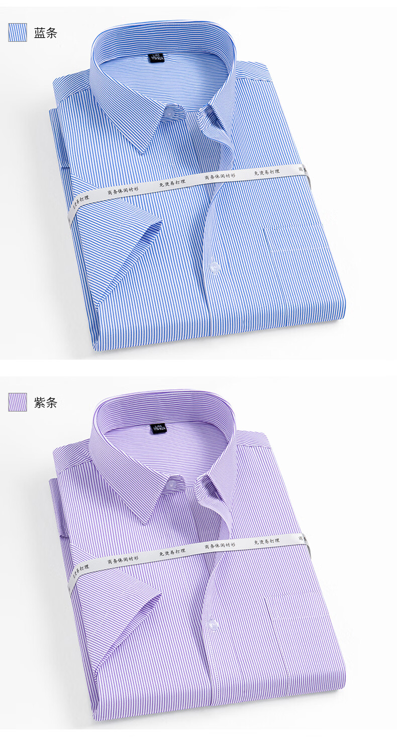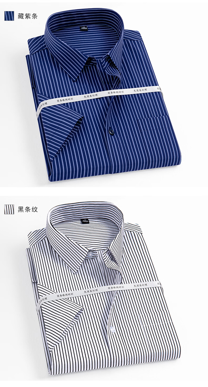 罗蒙(ROMON)短袖衬衫男士商务休闲2026夏季新款工装免烫抗皱衬衣工装衬衫 藏紫条 43 (建议体重170-185斤)