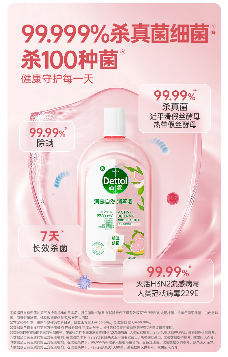滴露消毒液消毒水衣物除菌液洗衣服地板杀菌除螨消毒喷雾片非84次氯酸 滴露消毒液1.8L*2瓶