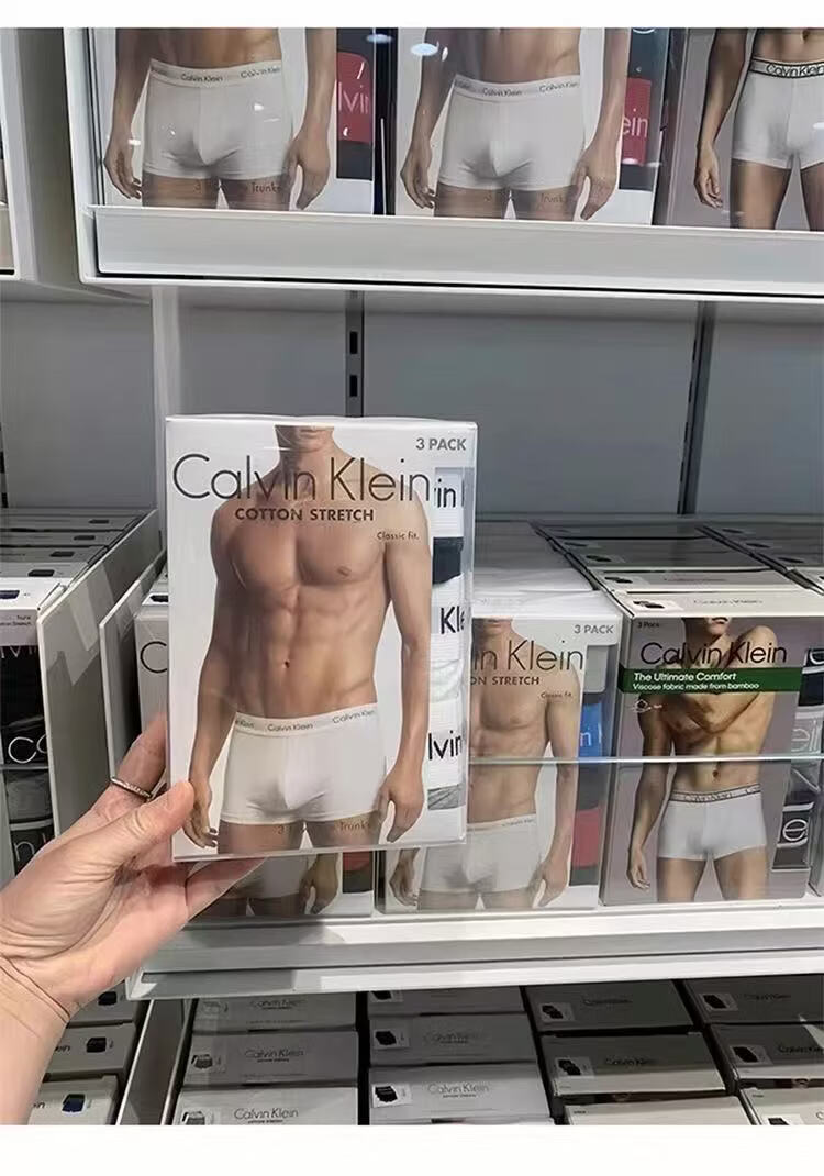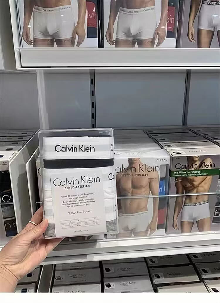 CALVIN KLEIN UNDERWEAR男士CK内裤莫代尔中腰运动透气平四角短裤防夹臀红色本命年礼盒装 黑灰蓝 棉 3条 XL 160-190斤