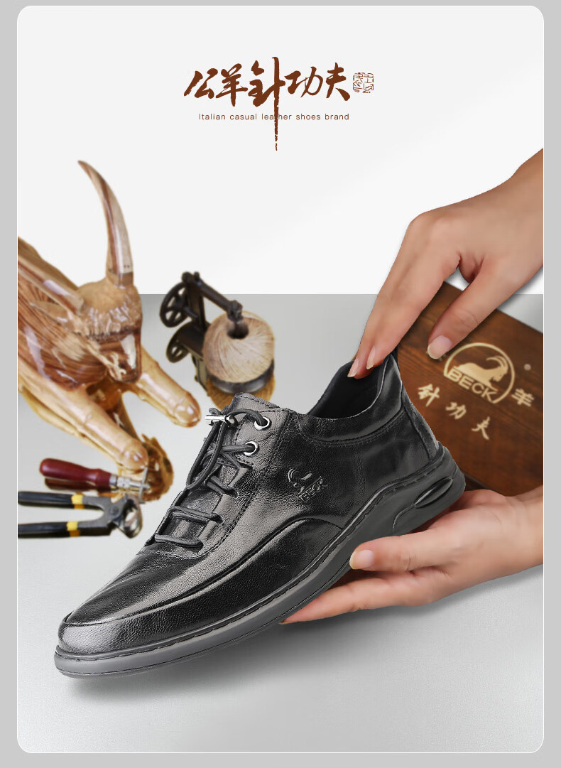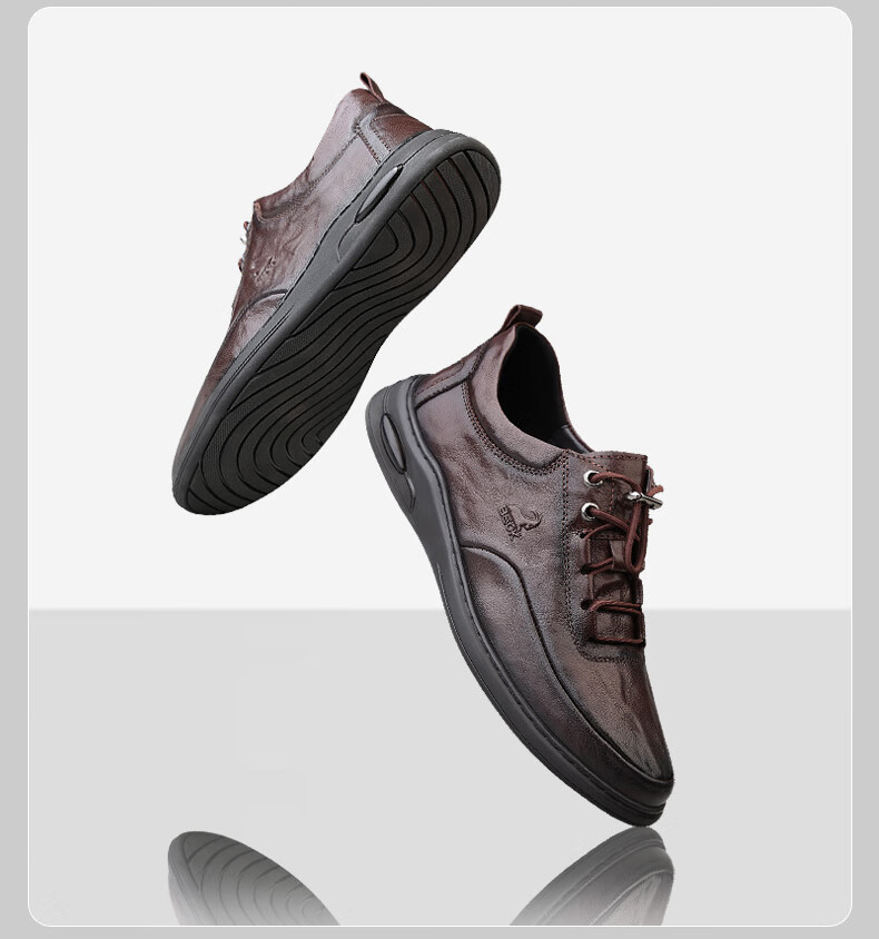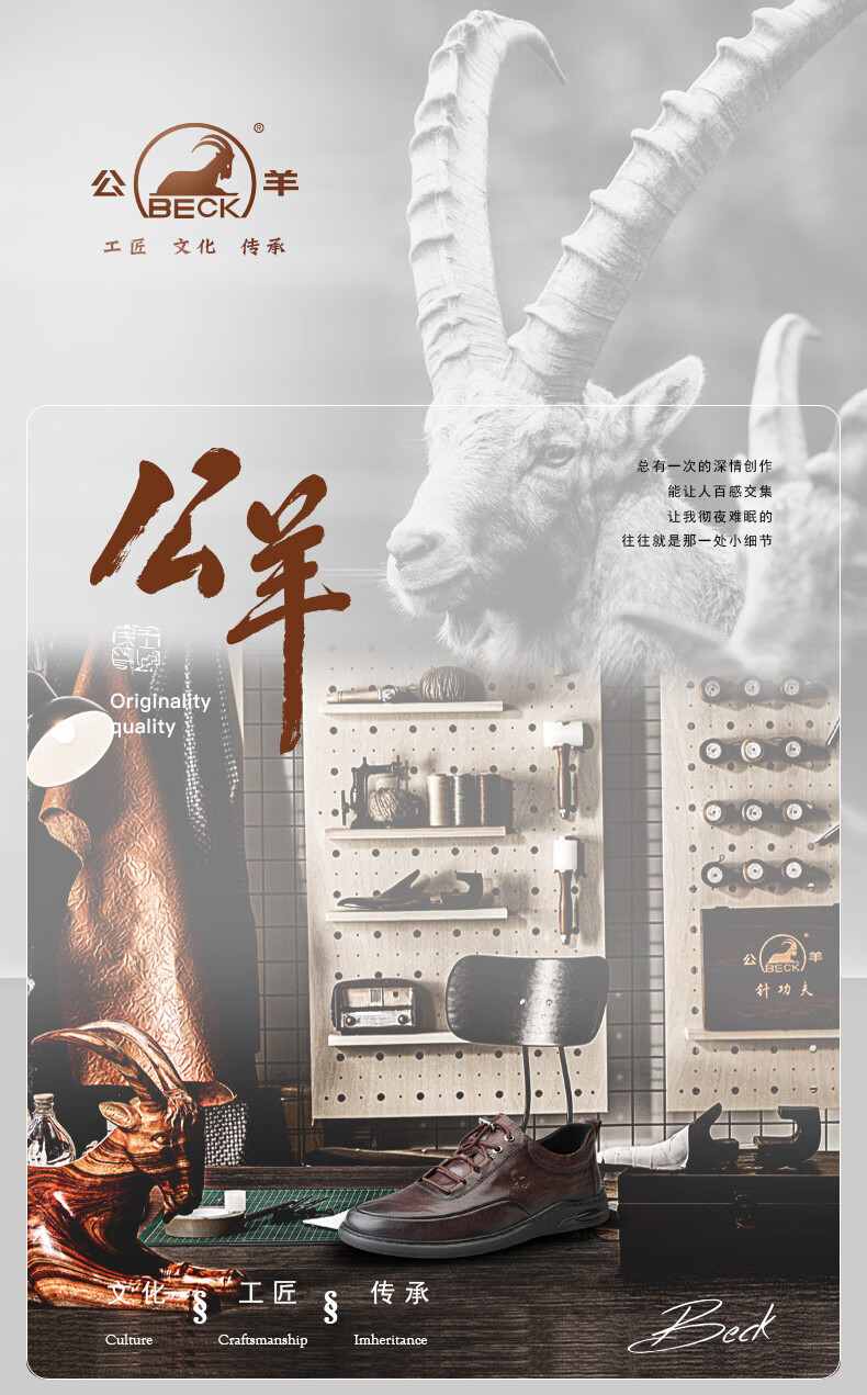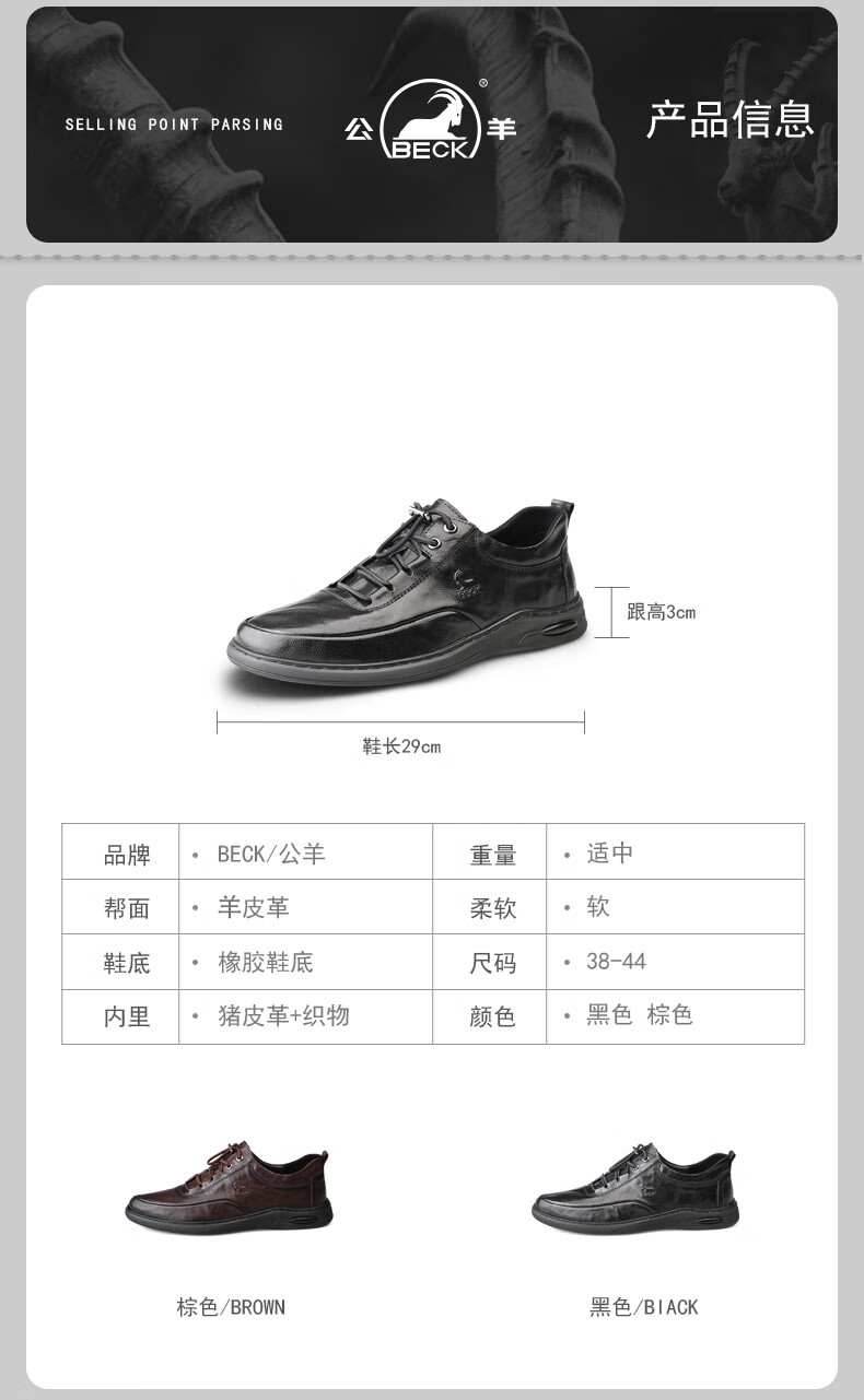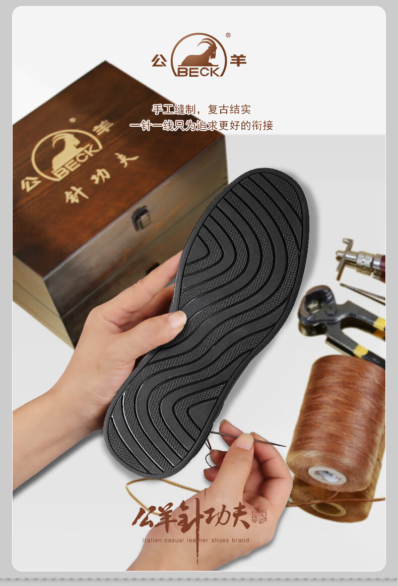 公羊世家男士商务皮鞋男羊皮革休闲皮鞋男鞋子一脚蹬驾车鞋男中老年爸爸鞋 棕色 43