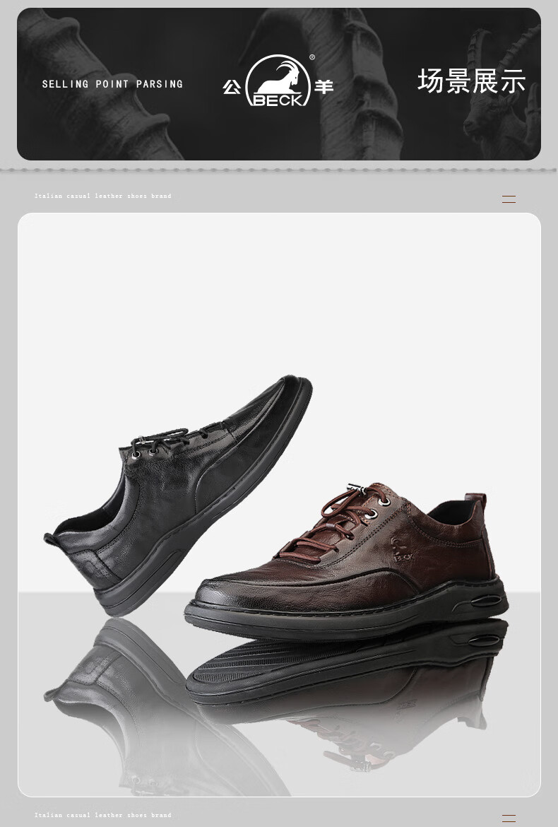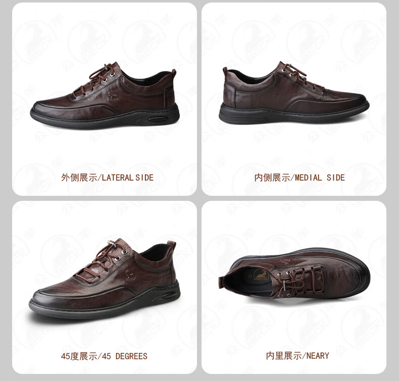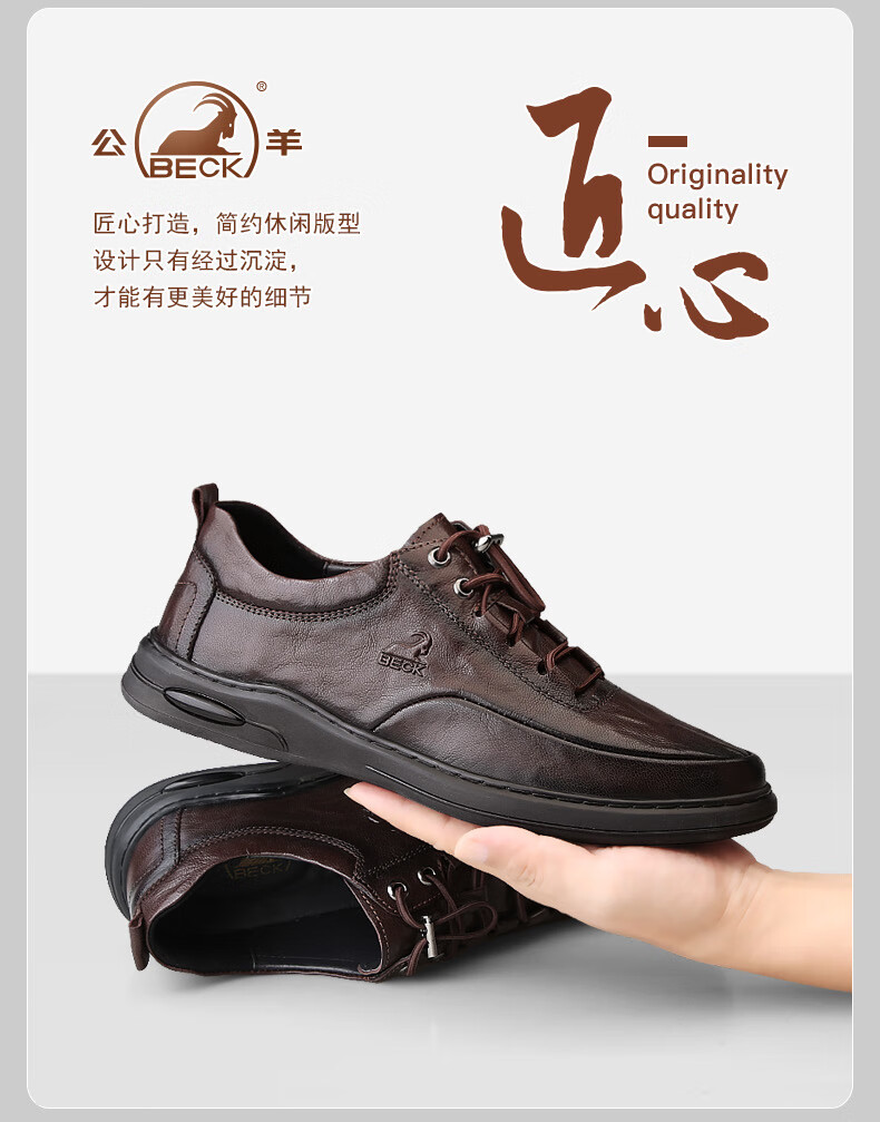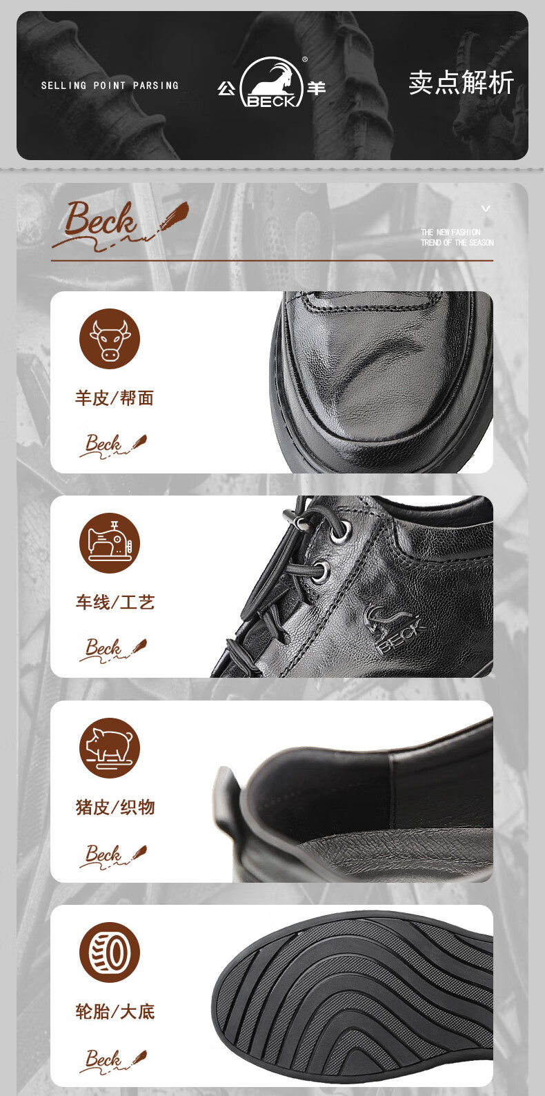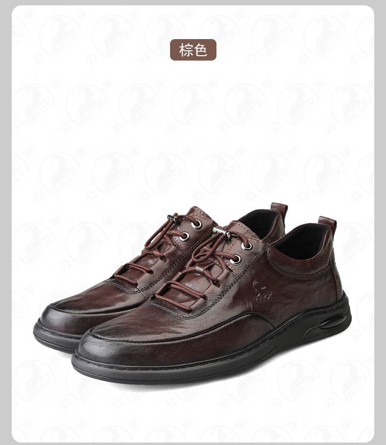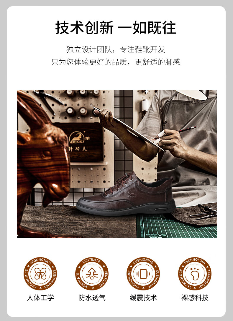 公羊世家男士商务皮鞋男羊皮革休闲皮鞋男鞋子一脚蹬驾车鞋男中老年爸爸鞋 棕色 43