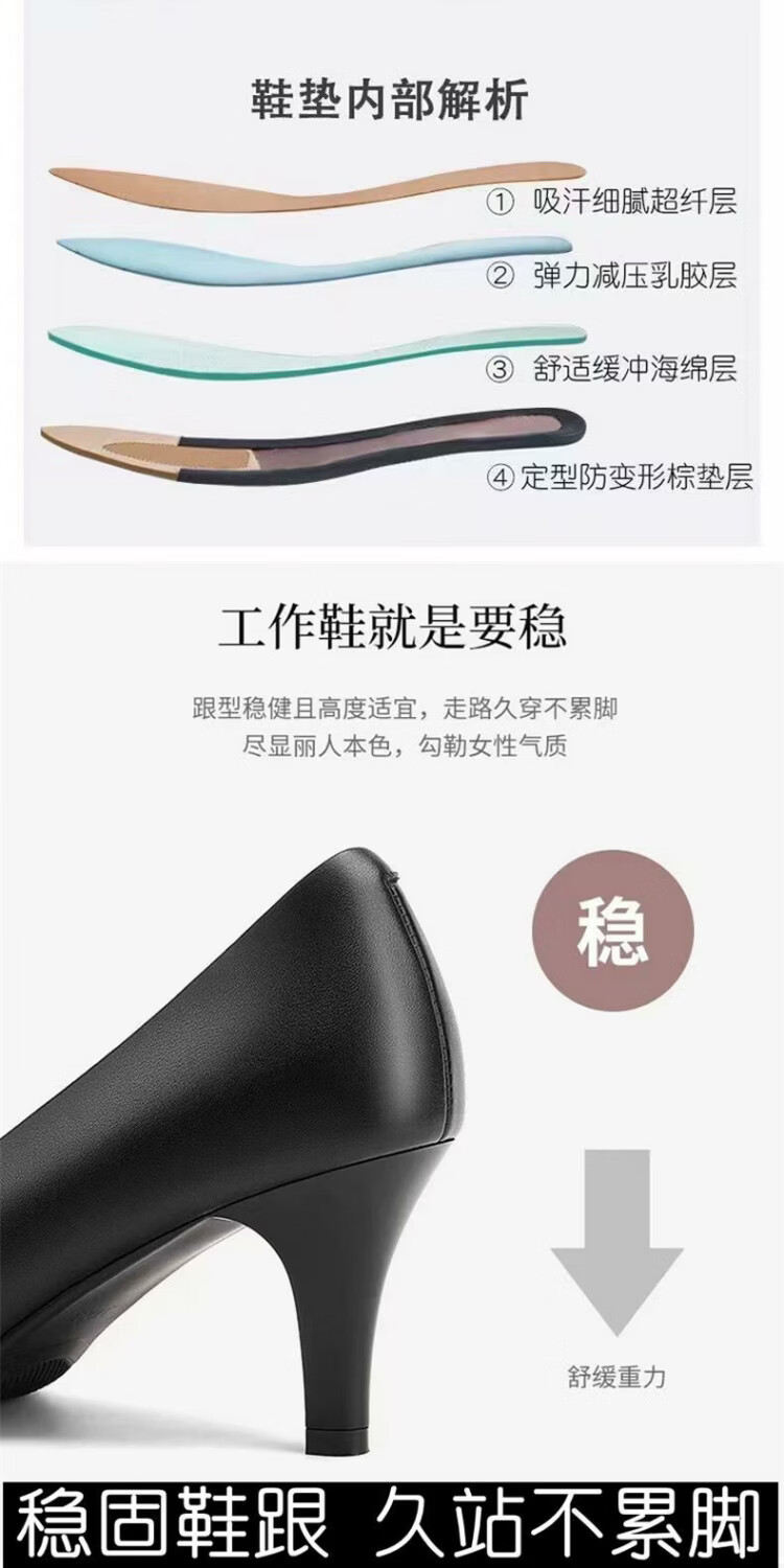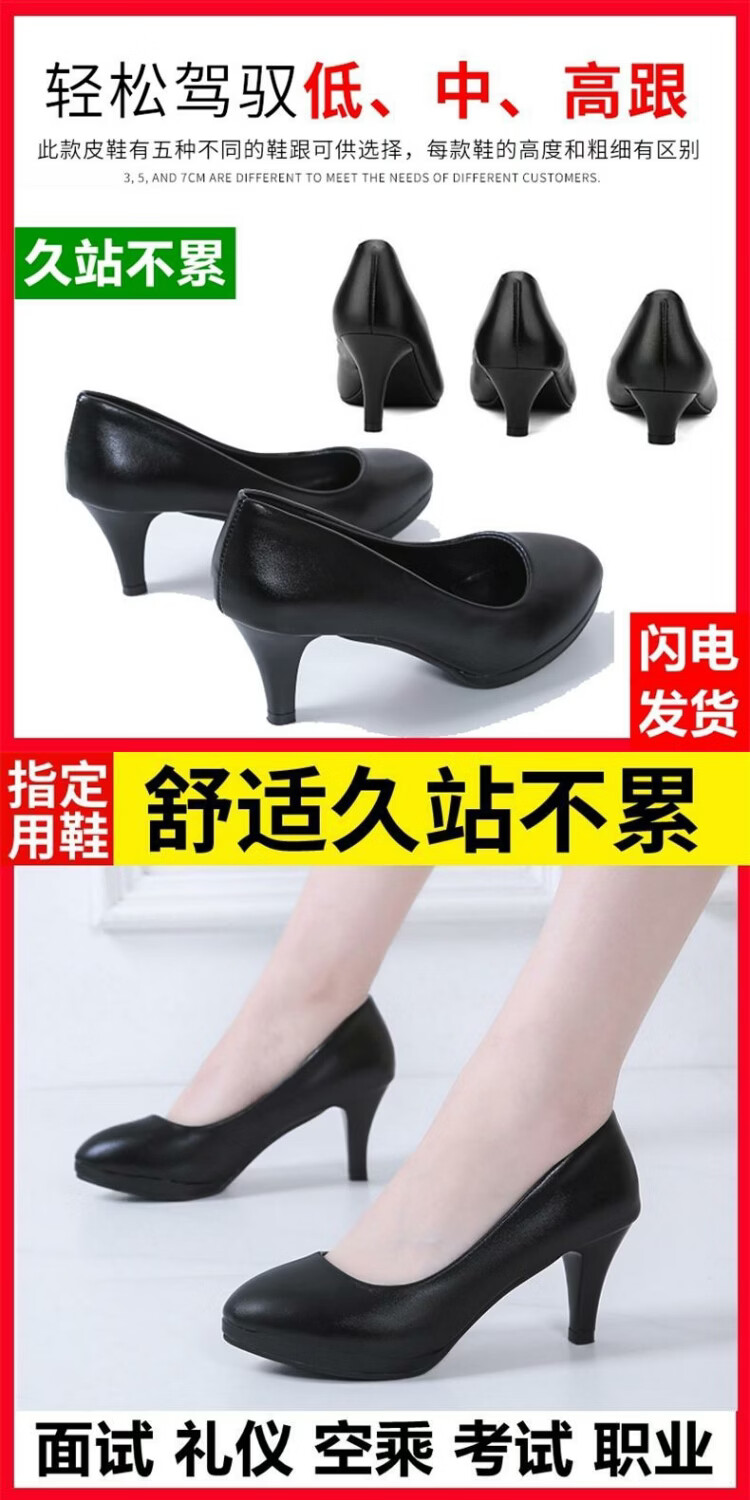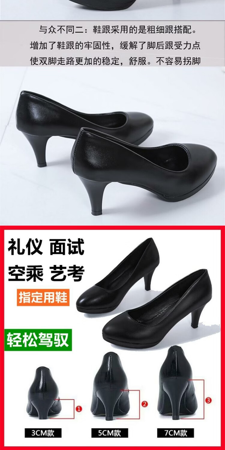 恒狮黑色高跟鞋女空乘面试空姐正装学生礼仪大码职业工作细跟圆头单鞋 太空灰 38